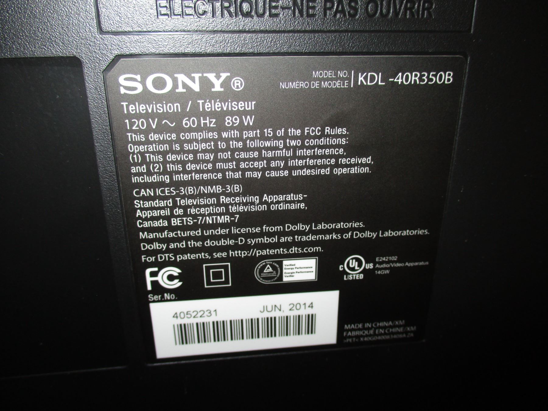 40" Sony BRAVIA LED Flatscreen TV w/Remote (Model # KDL-40R350B)