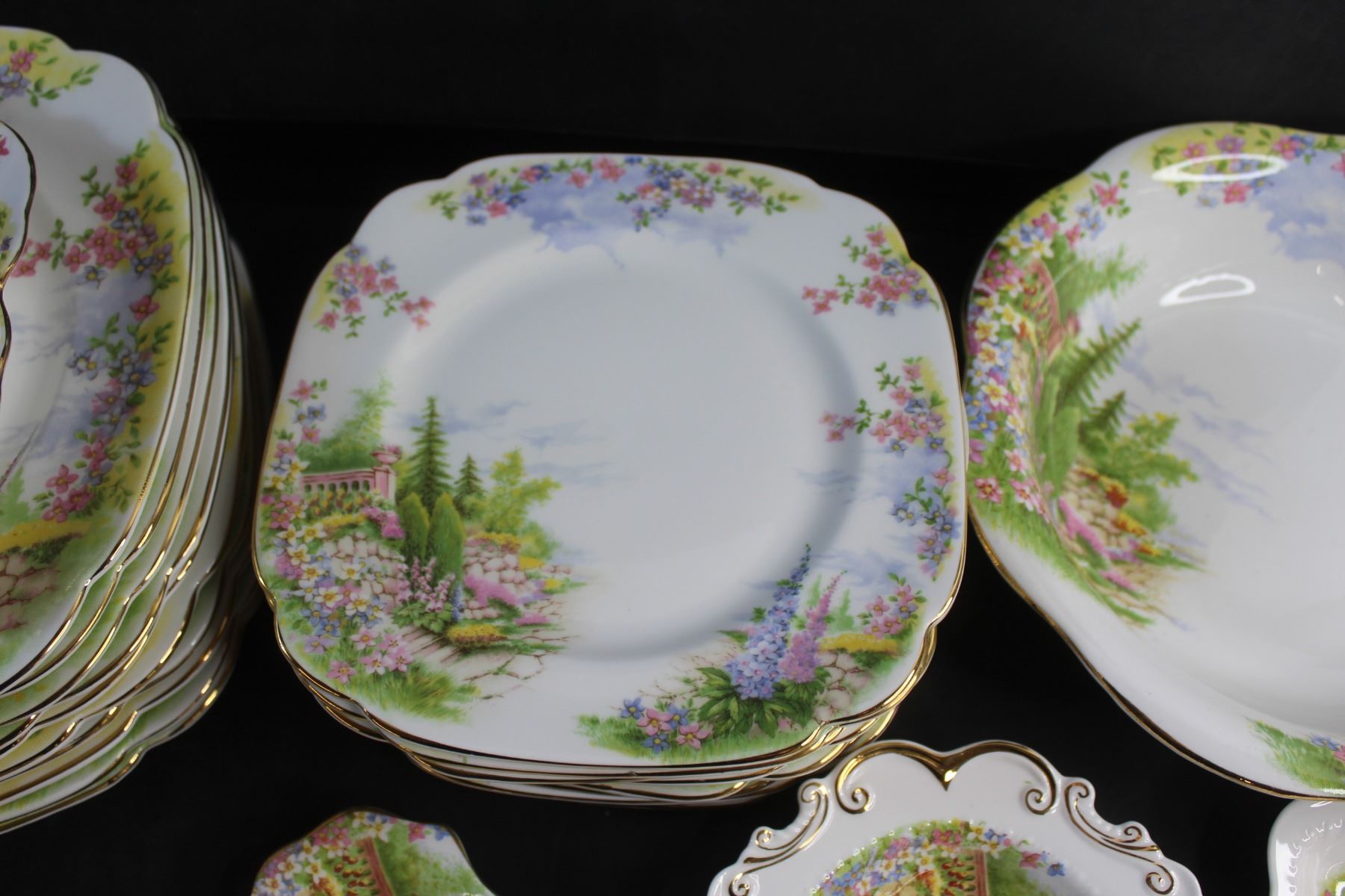 40+ piece Royal Albert Crown China Dish Set - Dining Plates, Bowl, Coasters and Trays