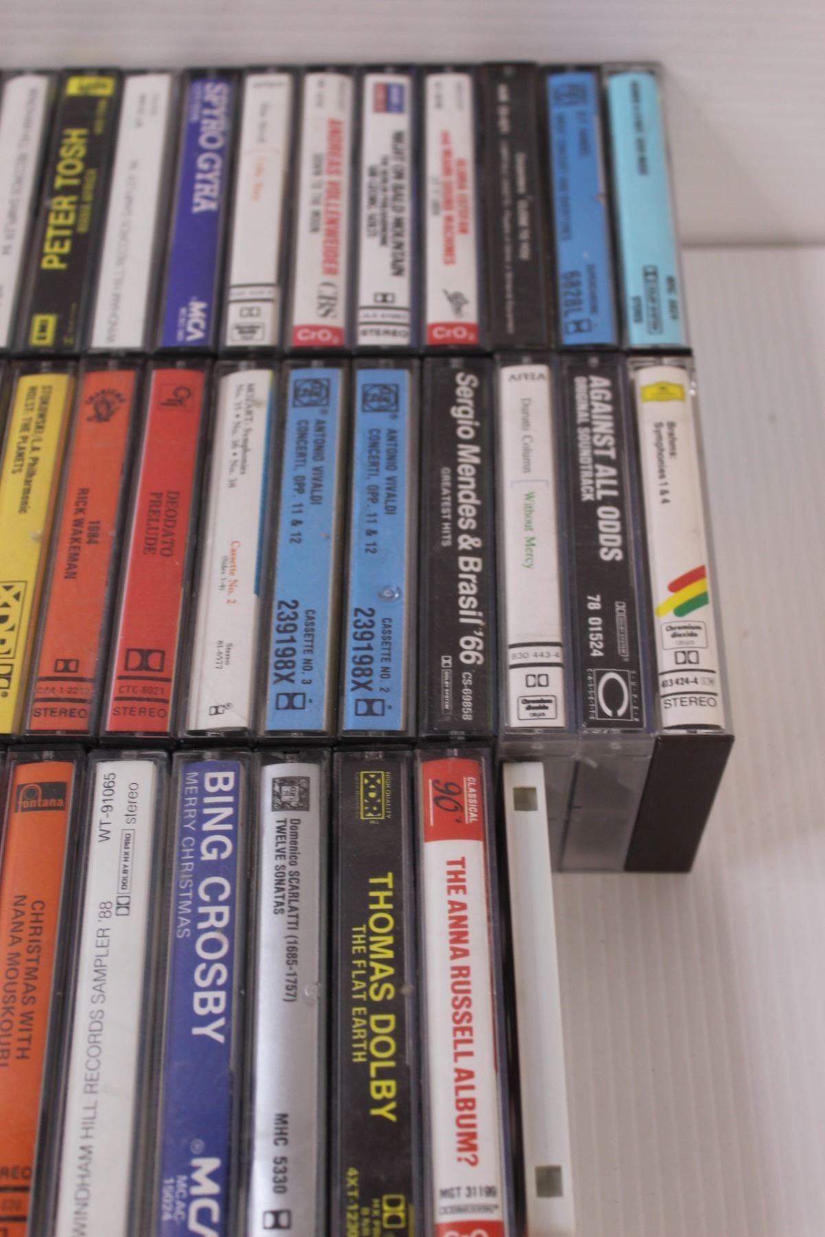 (43) Cassette Tapes: Bing Crosby, Taco, Peter Tosh, Classical, Misc.