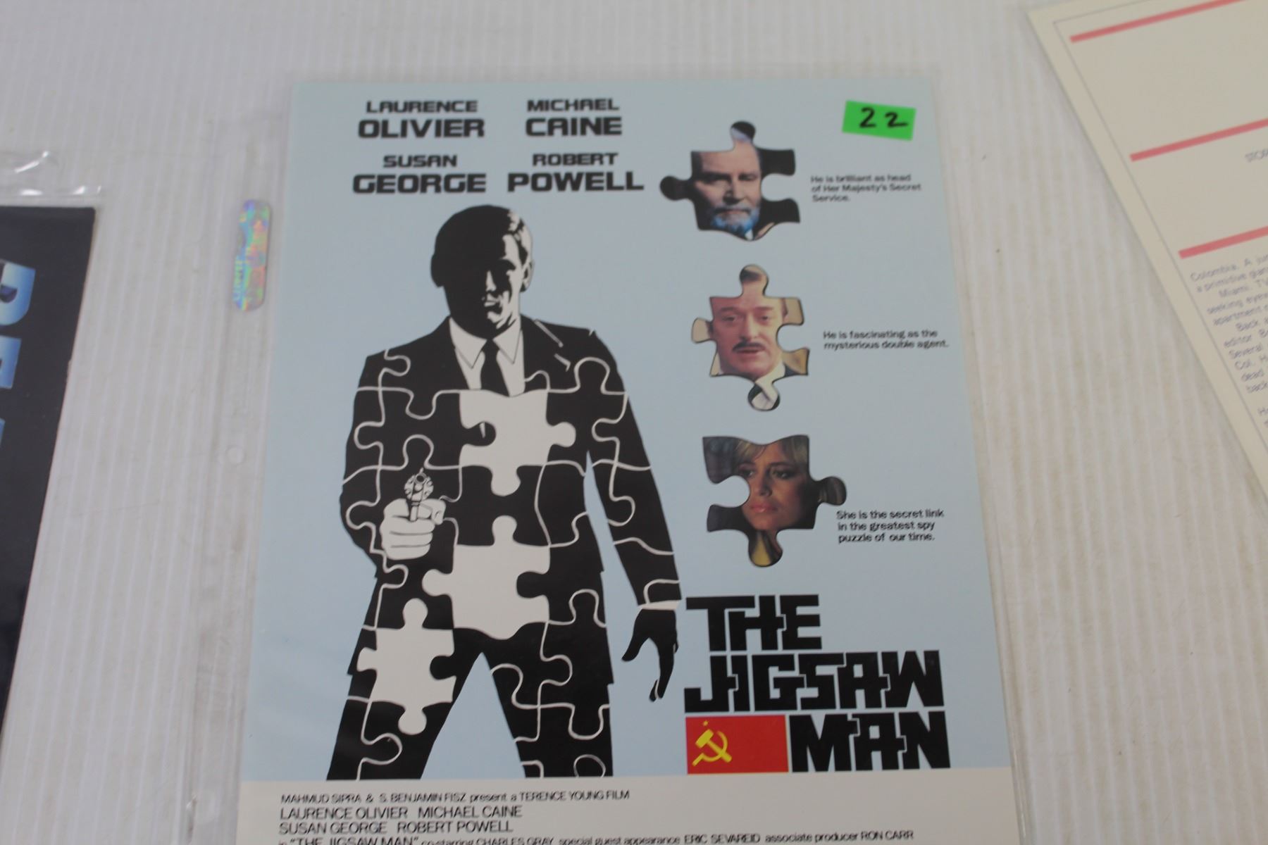 (5) 1970's & 1980's Movie Synopsis Sheet - The Drowning Pool, Cut & Run, The Act, The Jigsaw Man, Reactor