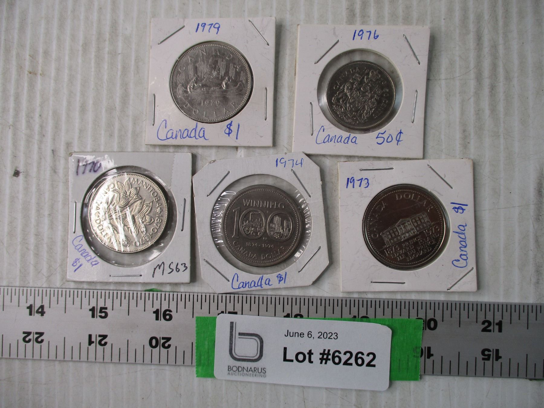 (5) 1970's Coins (50c, 1 Dollar Coins)