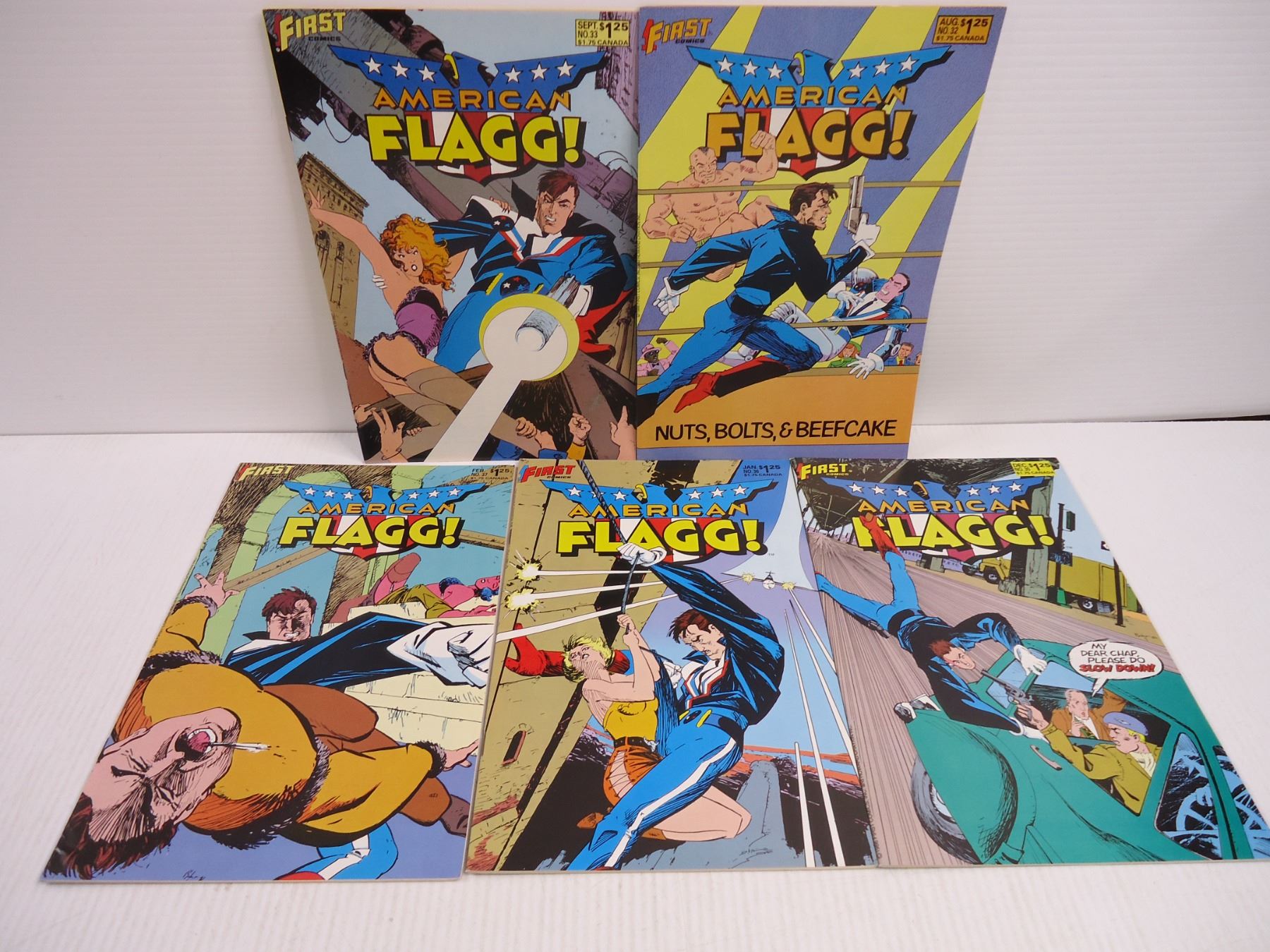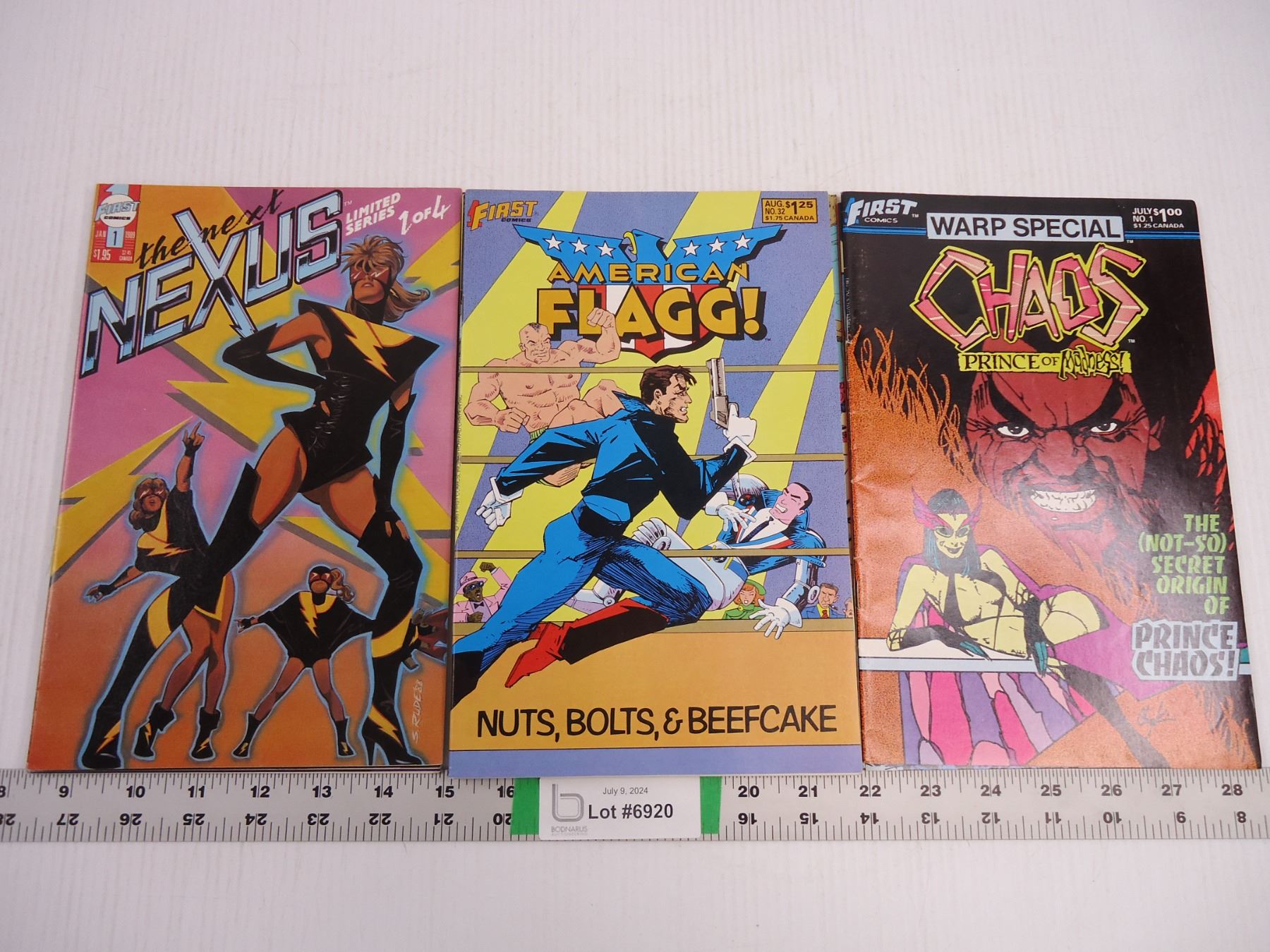 (5) American Flagg,(3) Nexus and (2) Chaos Comic Books