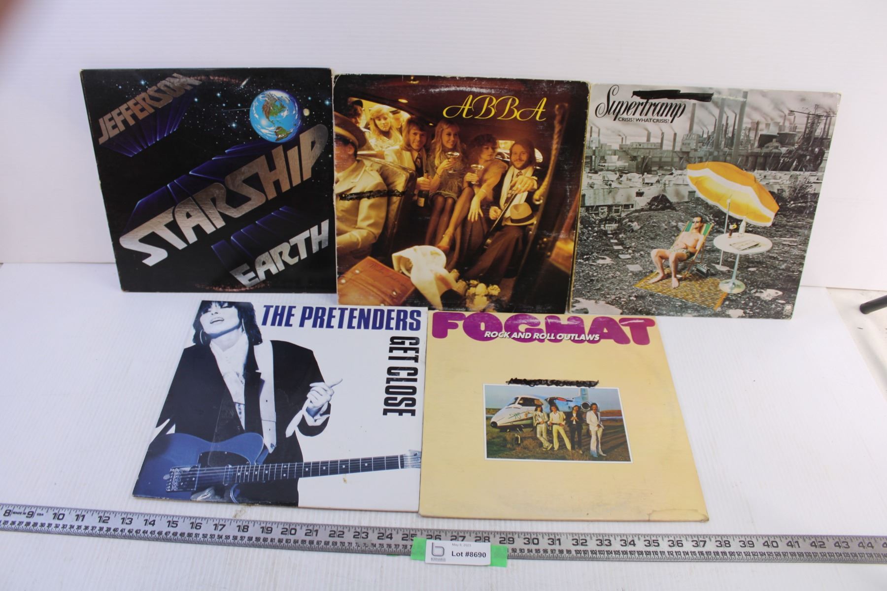 (5) Assorted Vinyl Albums (The Pretenders, Fogahat, Supertramp, ABBA, Jefferson starship earth)