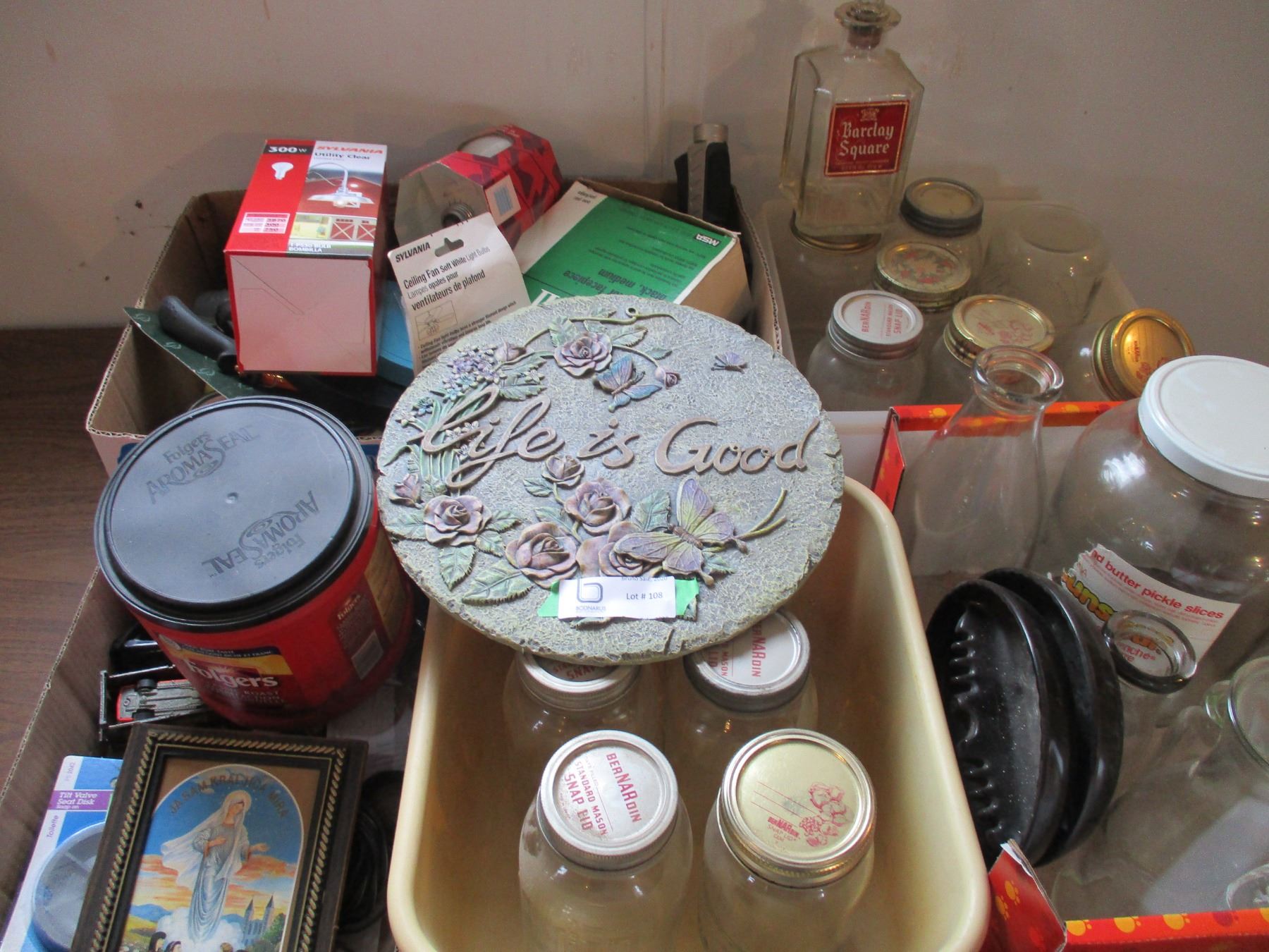 5 Boxes of Assorted Bottles, Jars, and Misc Hardware