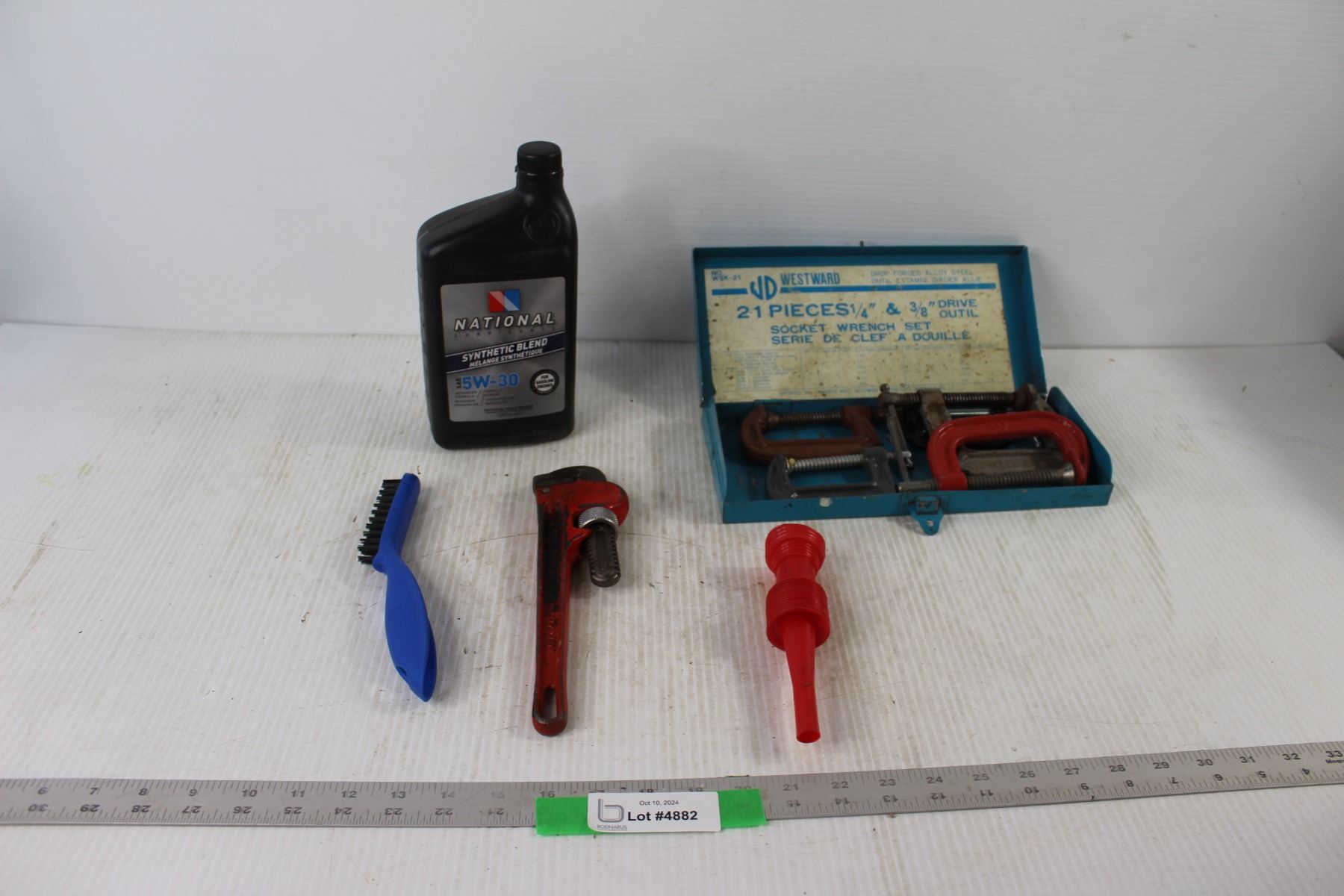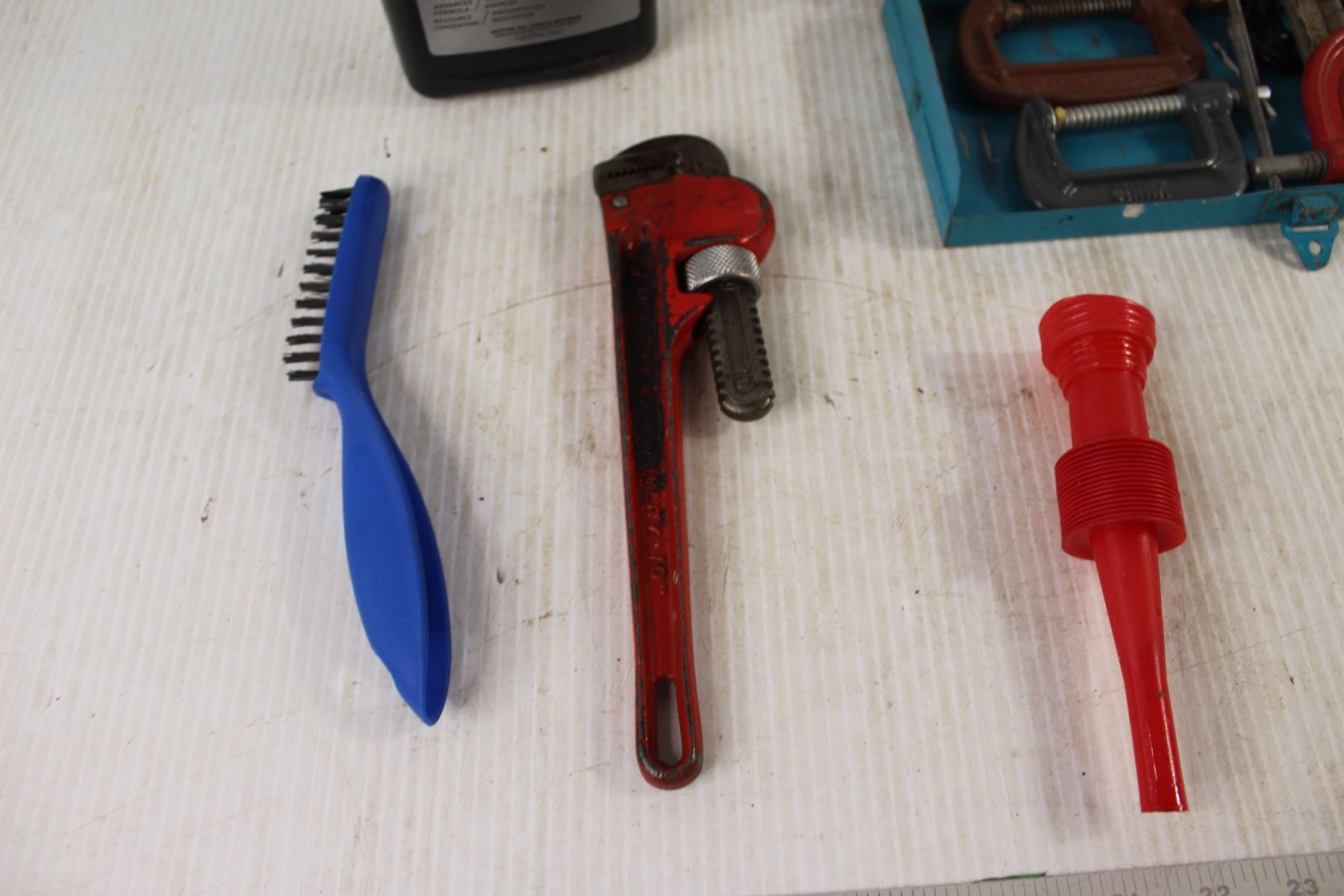 (5) C Clamps, Wrench, 5W 30 Oil, Brush