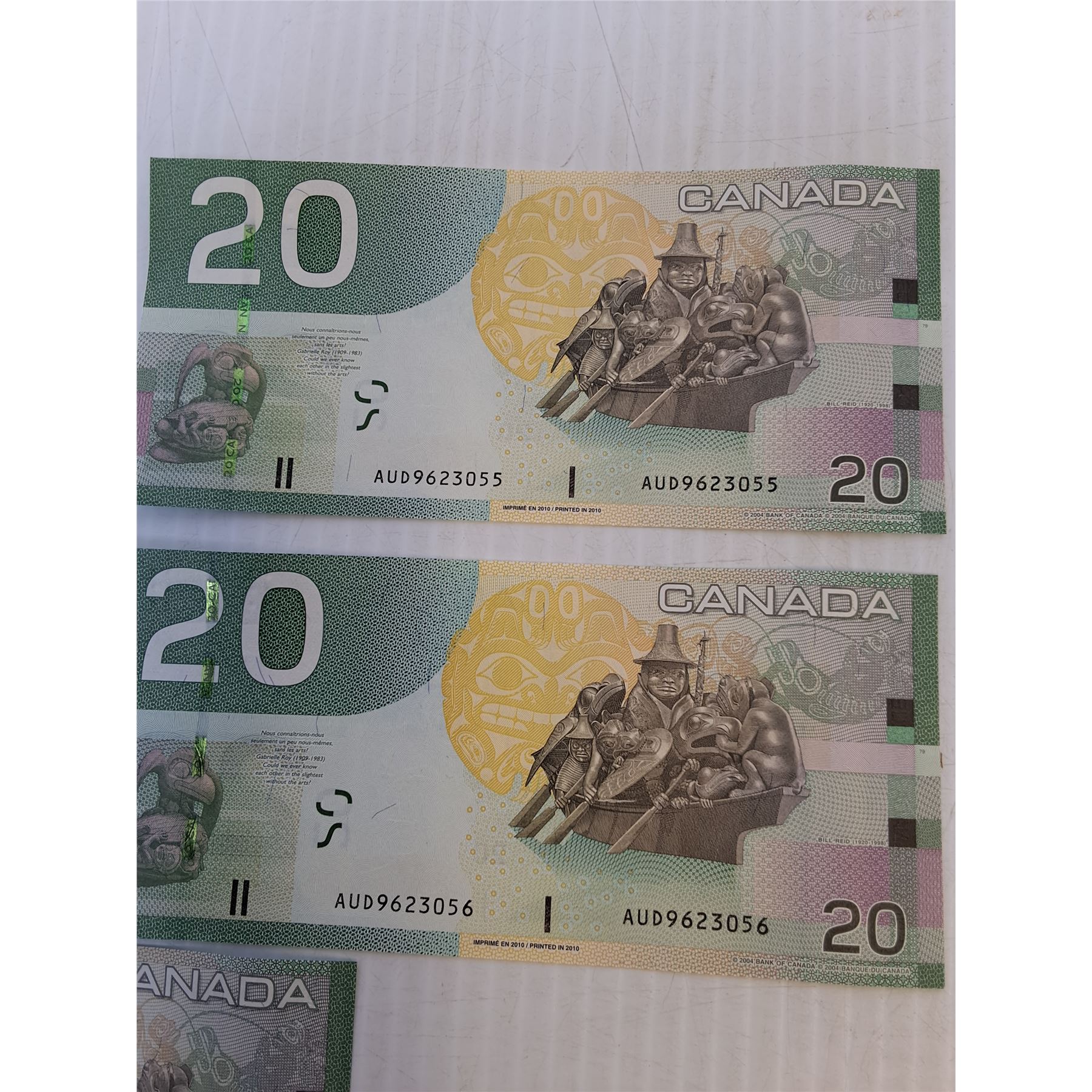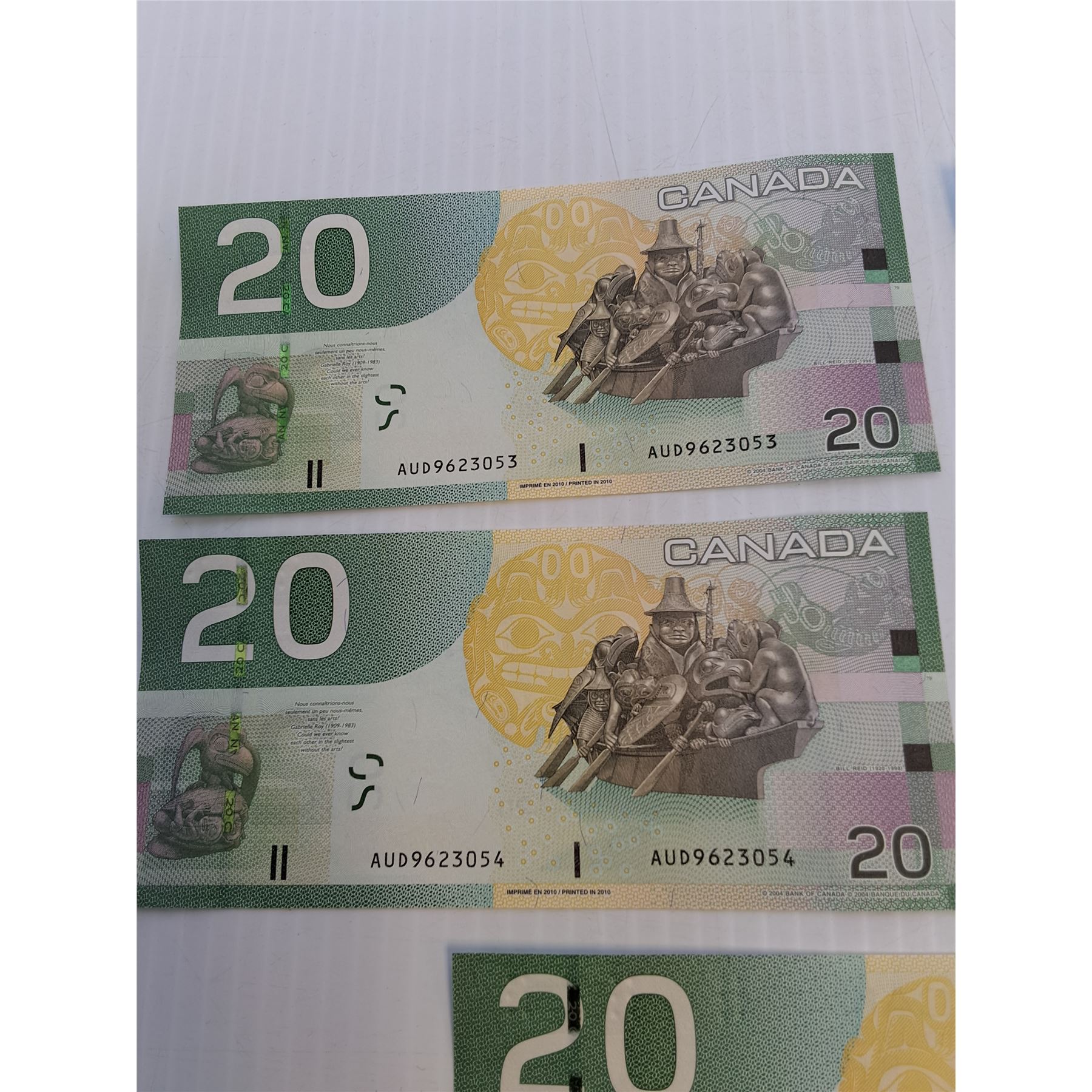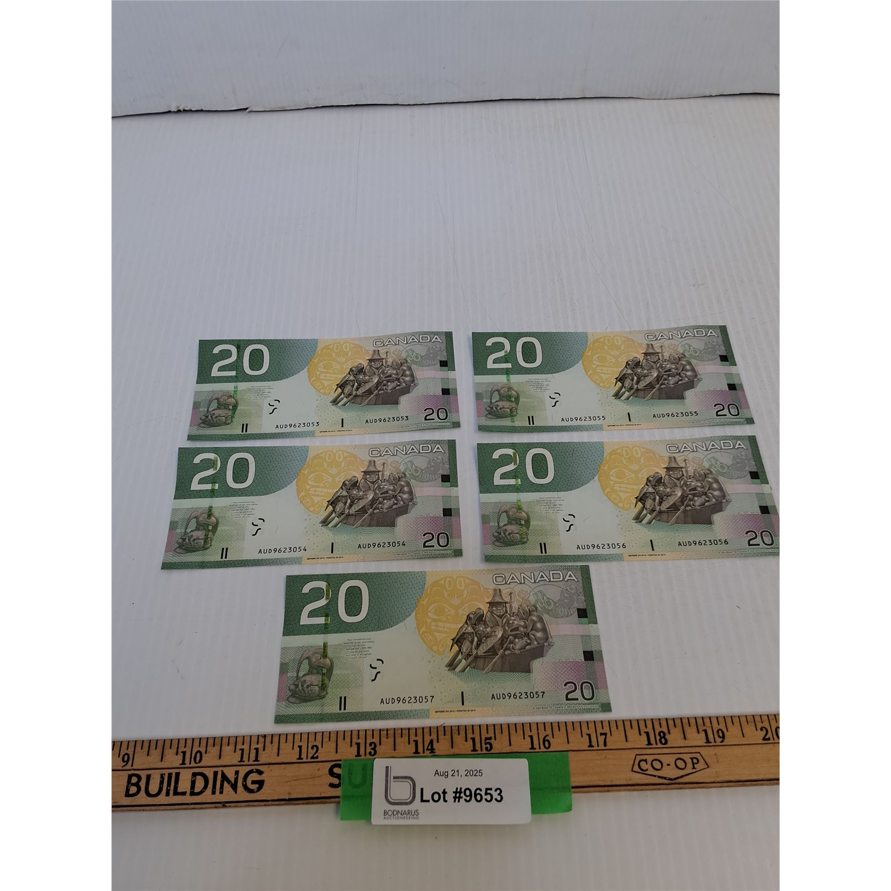 ^(5) Canadian Twenty Dollar Bills (Sequential Order) - Issued 2004, Printed 2010 - Uncirculated