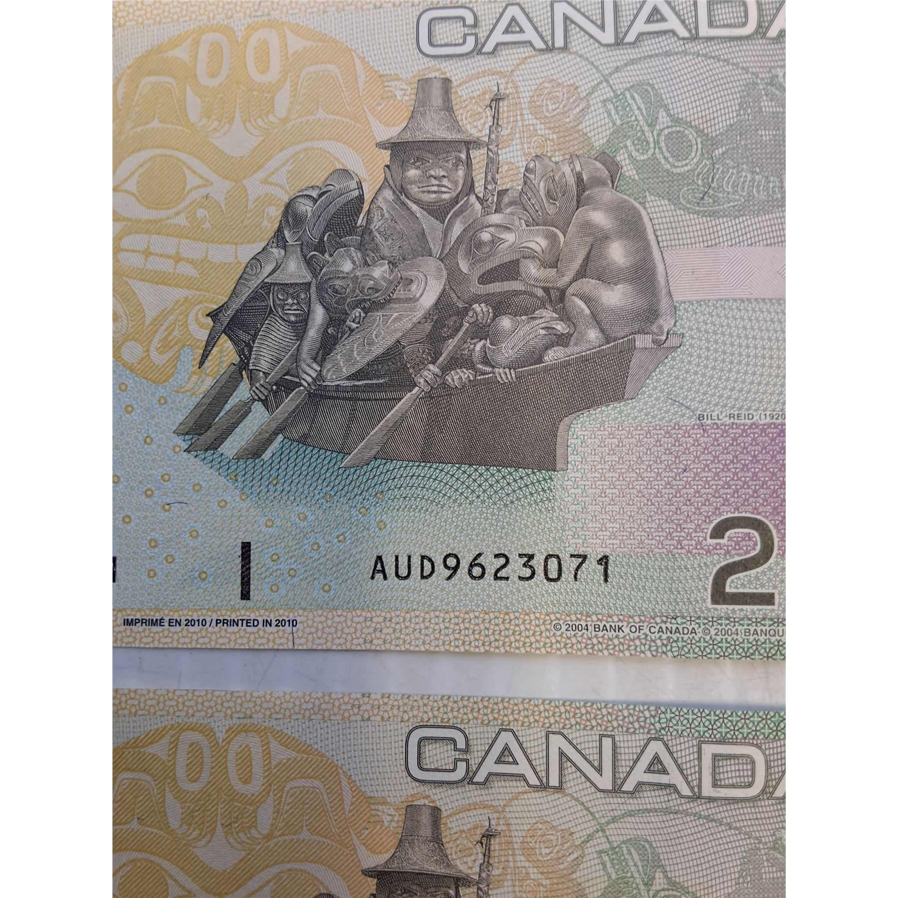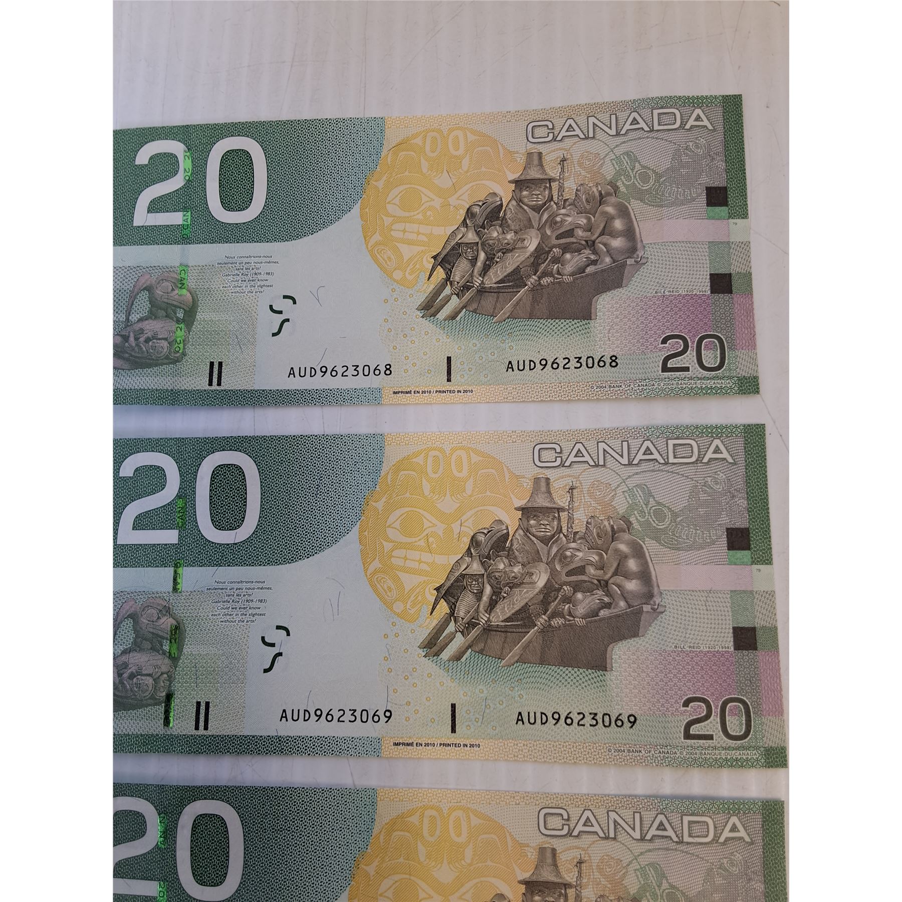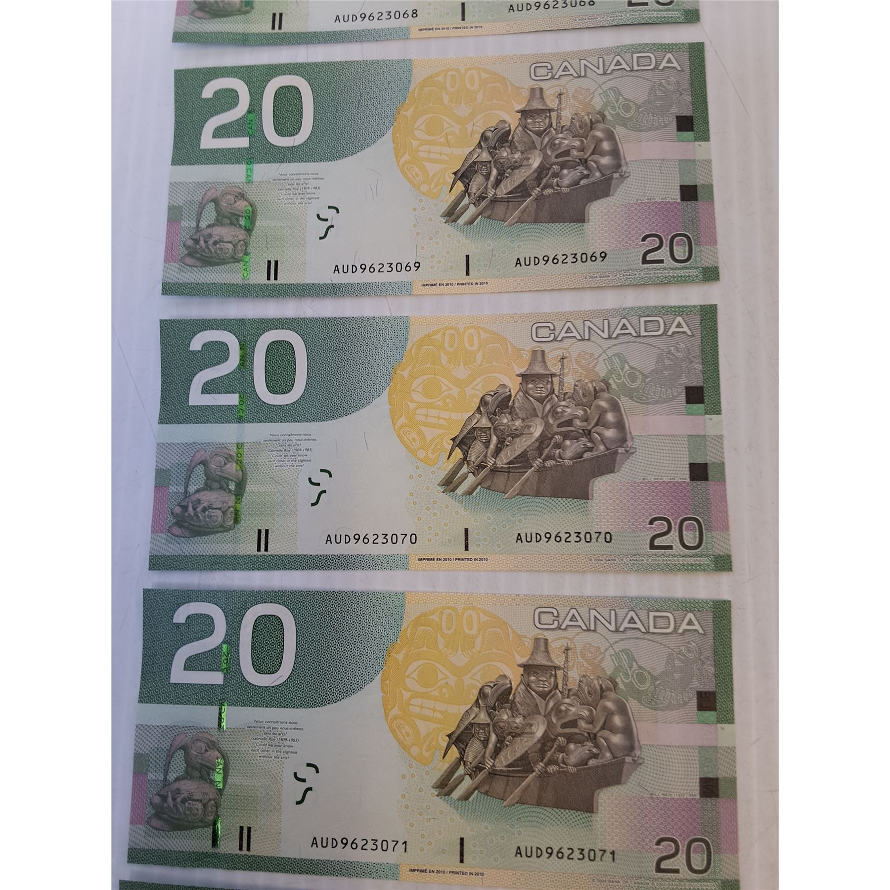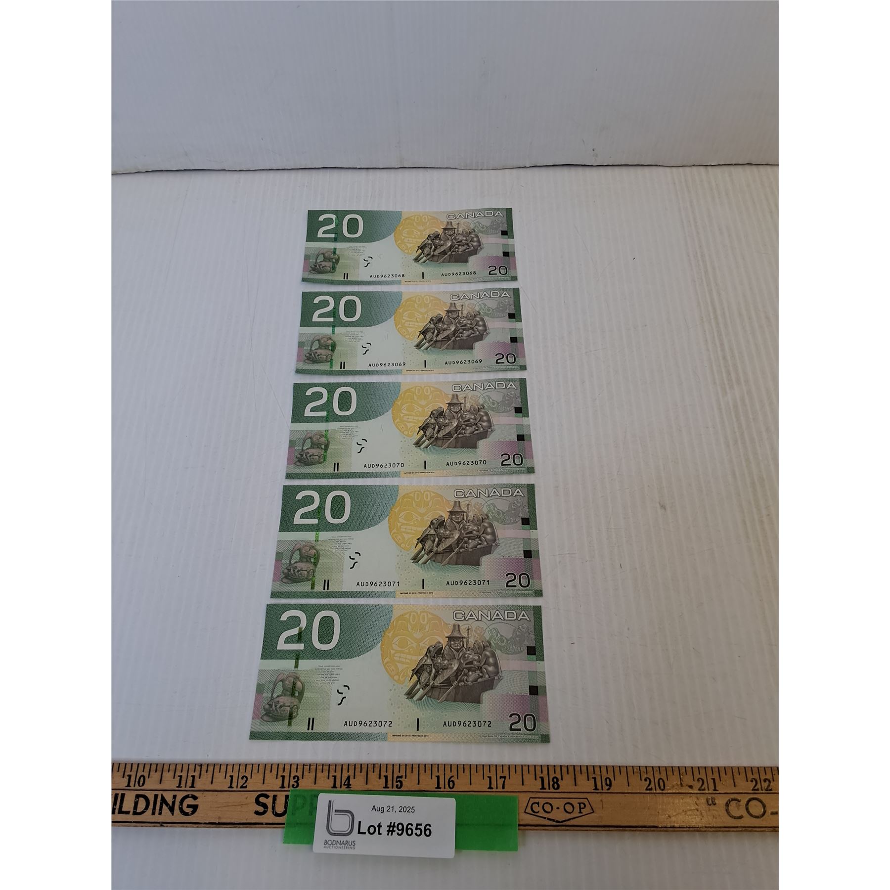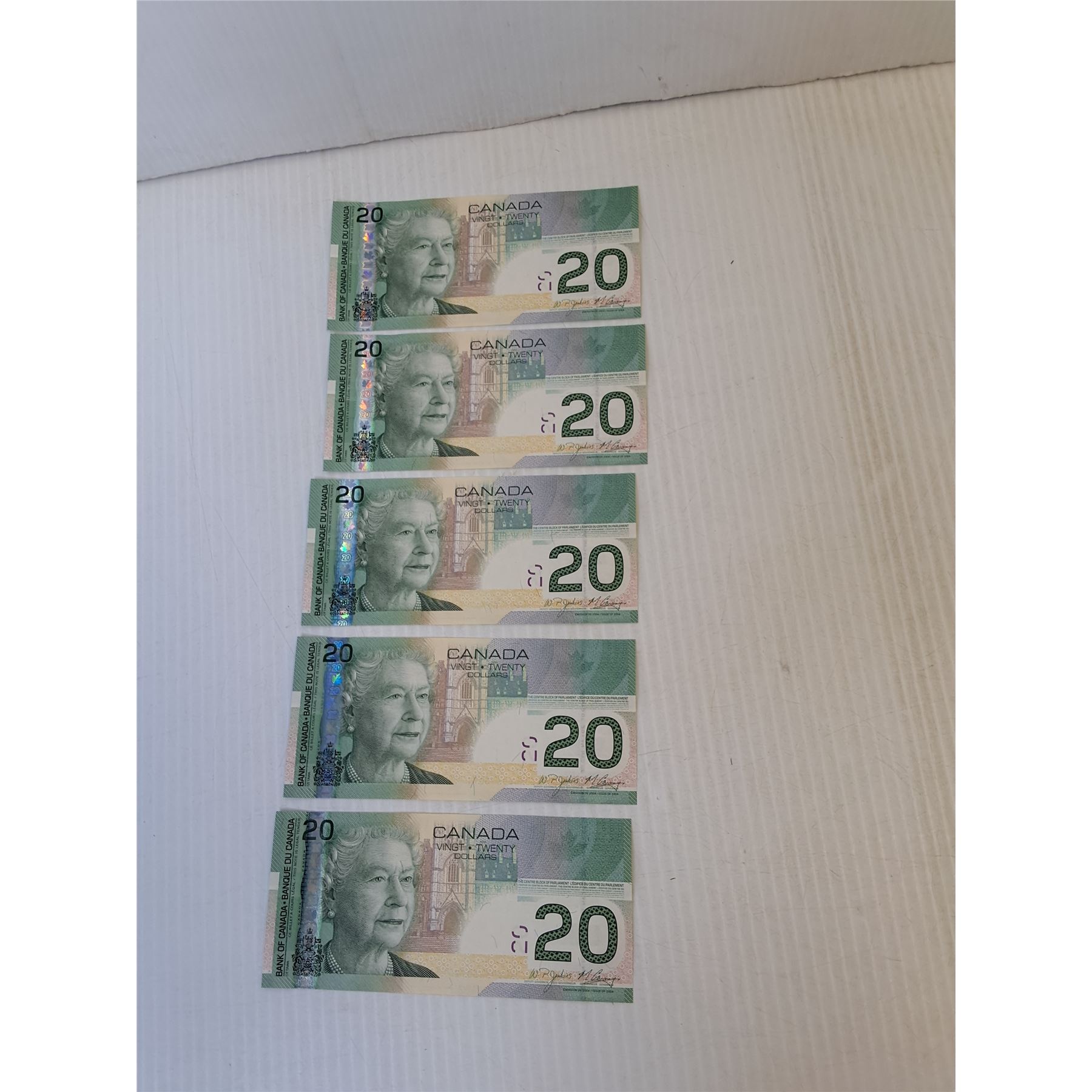 ^(5) Canadian Twenty Dollar Bills (Sequential Order) - Issued 2004, Printed 2010 - Uncirculated