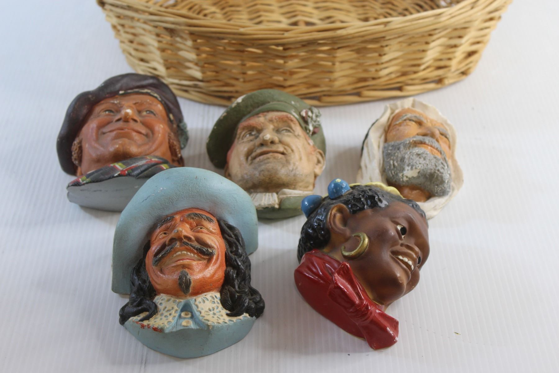 (5) Chalkware Wall Hanging Decorations - Chipped and Wicker Fruit Basket