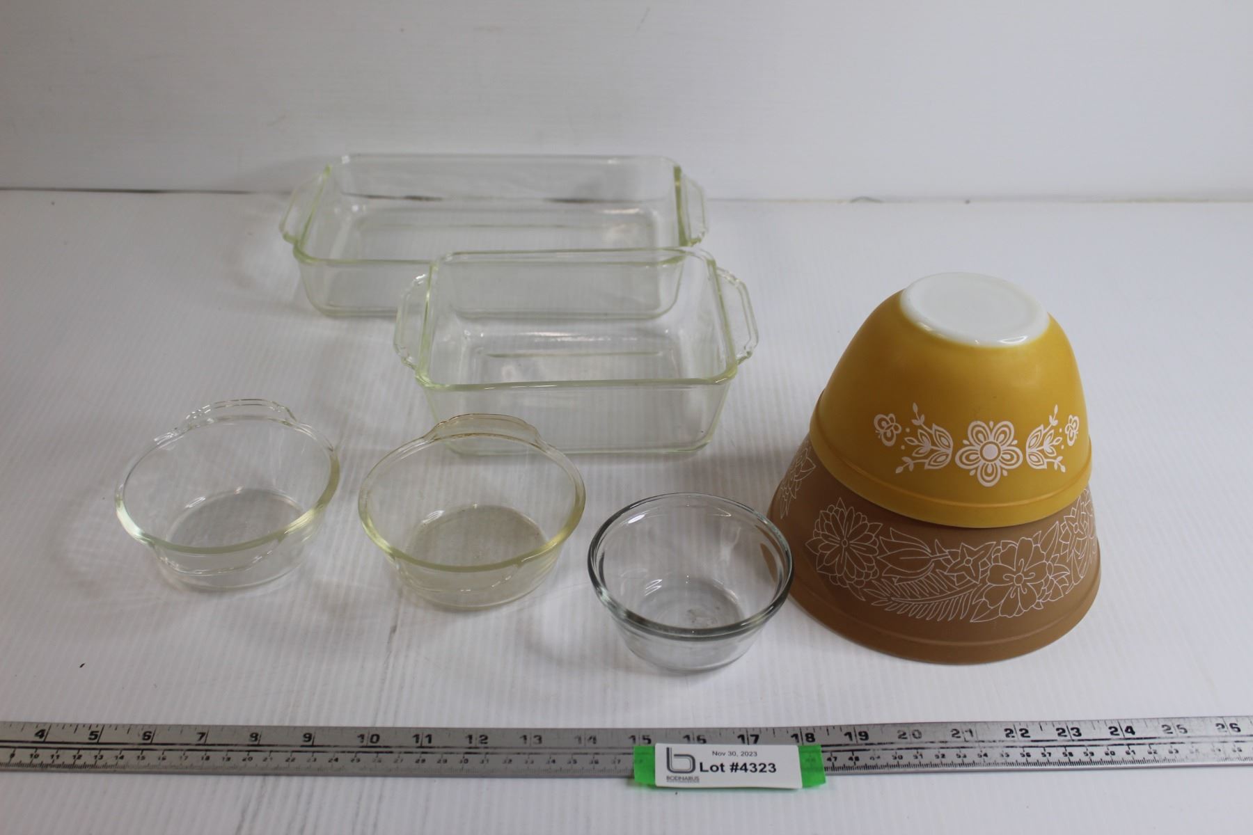 (5) Clear Glass Baking Dishes, (2) Pyrex Bowls