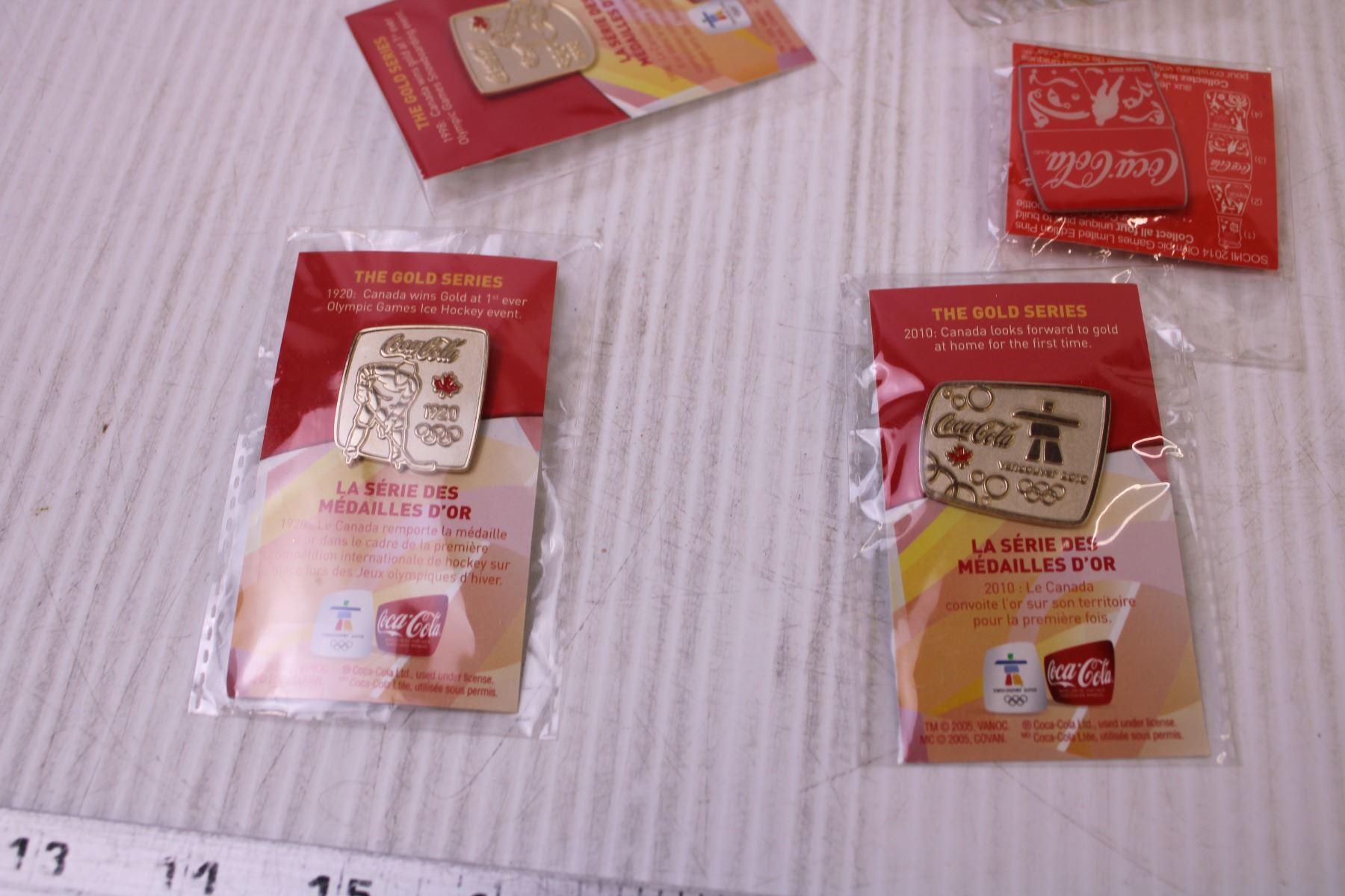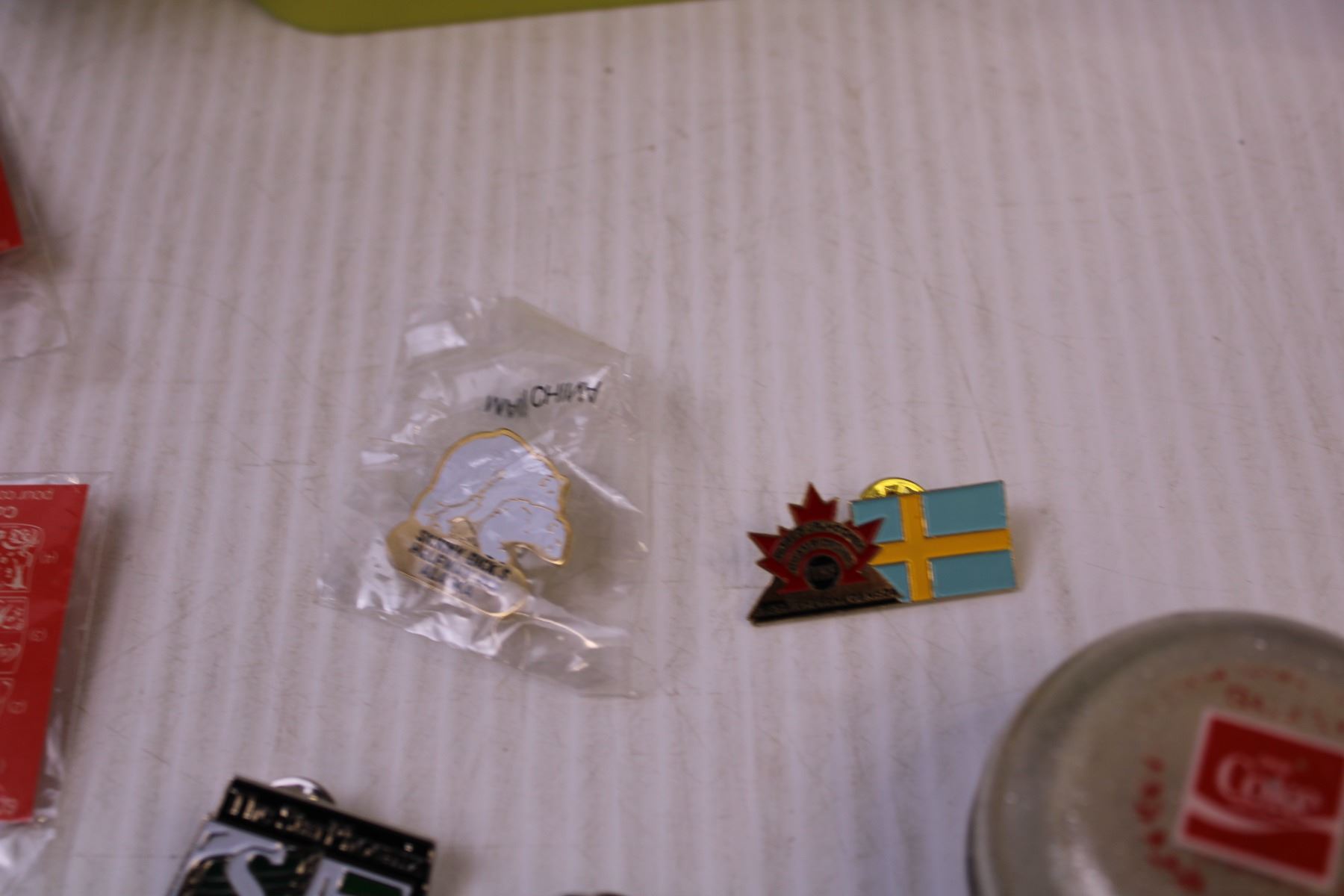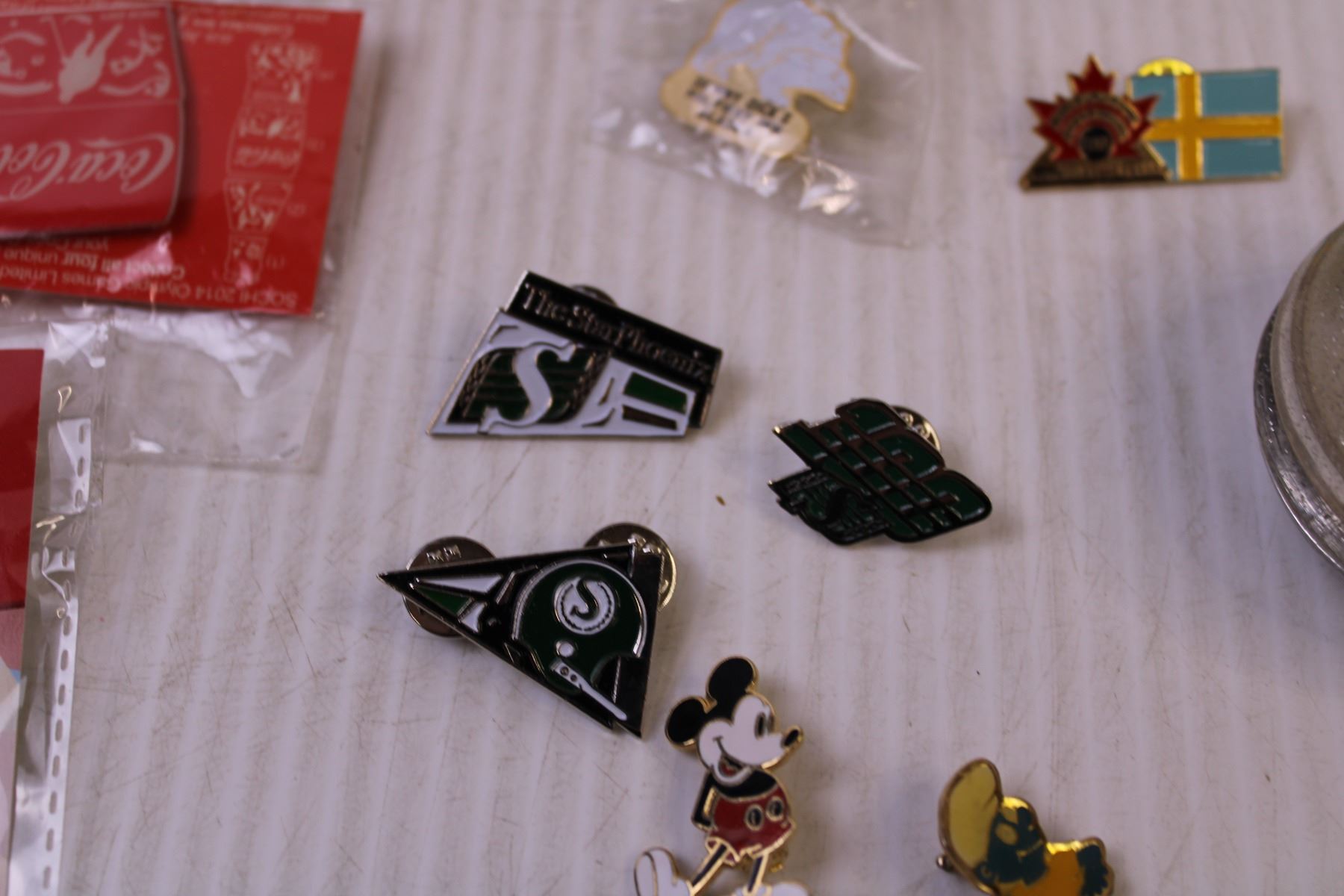 (5) Coca-Cola Pins, (4) Saskatchewan Roughriders Pins +Misc