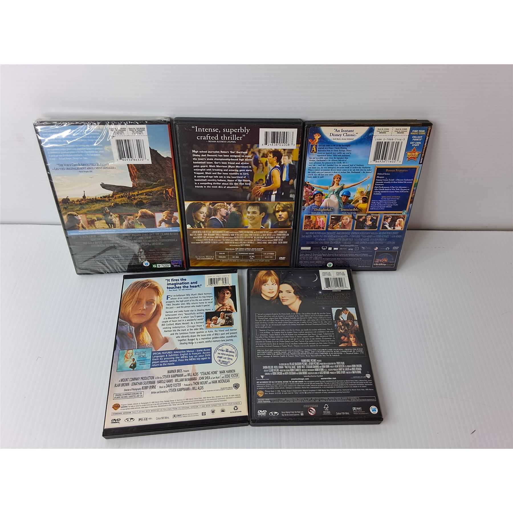 (5) DVDs- Enchanted, Stealing Home, The Lion King, Misc.