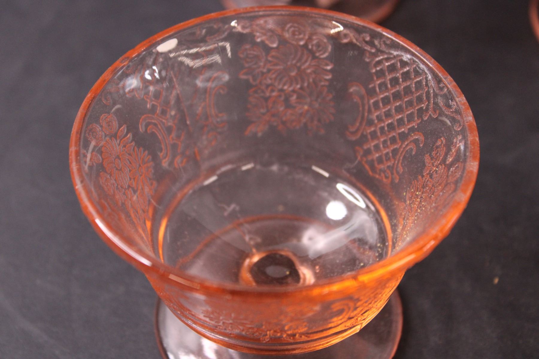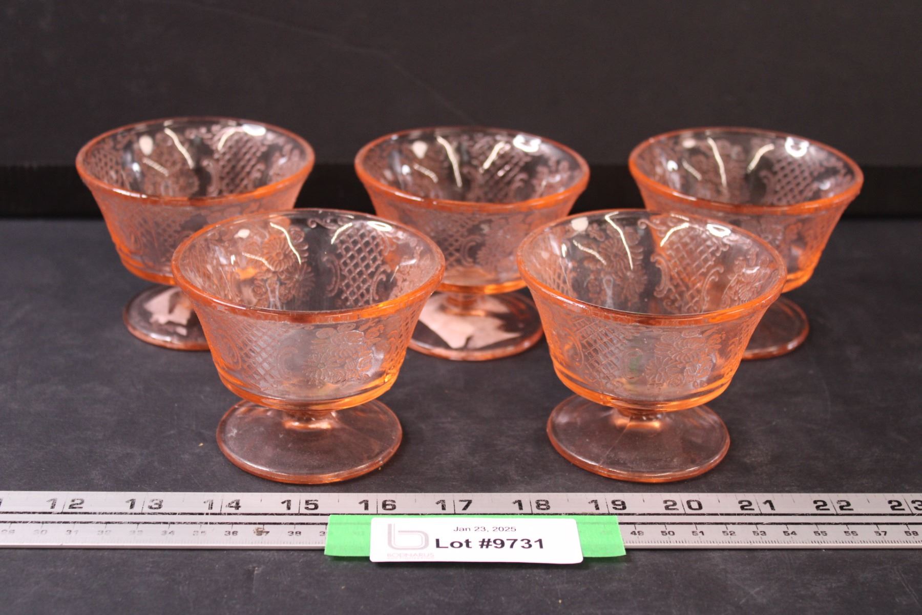(5) Federal Glass Normandie Pink Glass Sherbet/Ice Cream Dishes - 3.5" x 2.65"