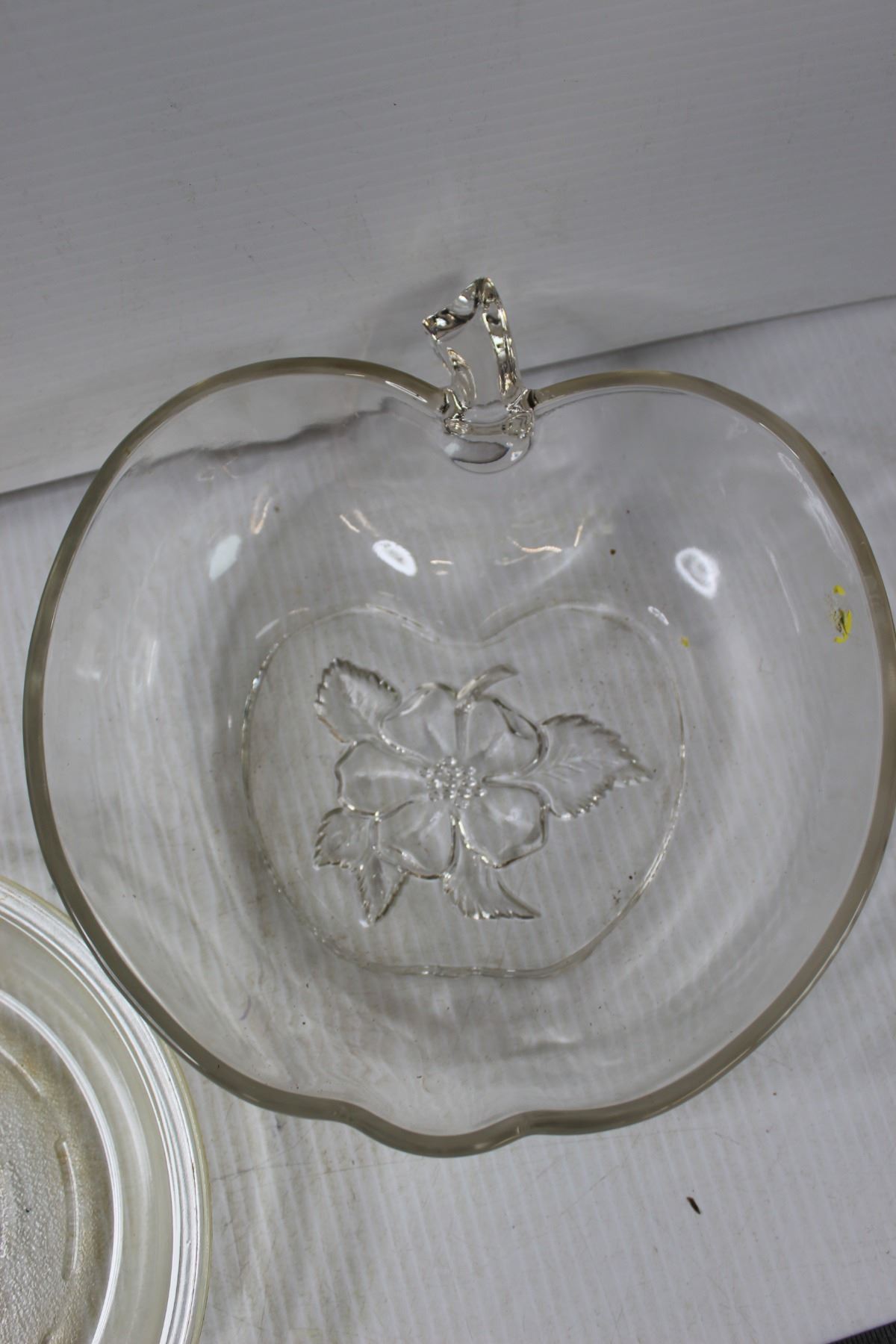 (5) Glass Dishes- Stand, Apple Bowl, Plates