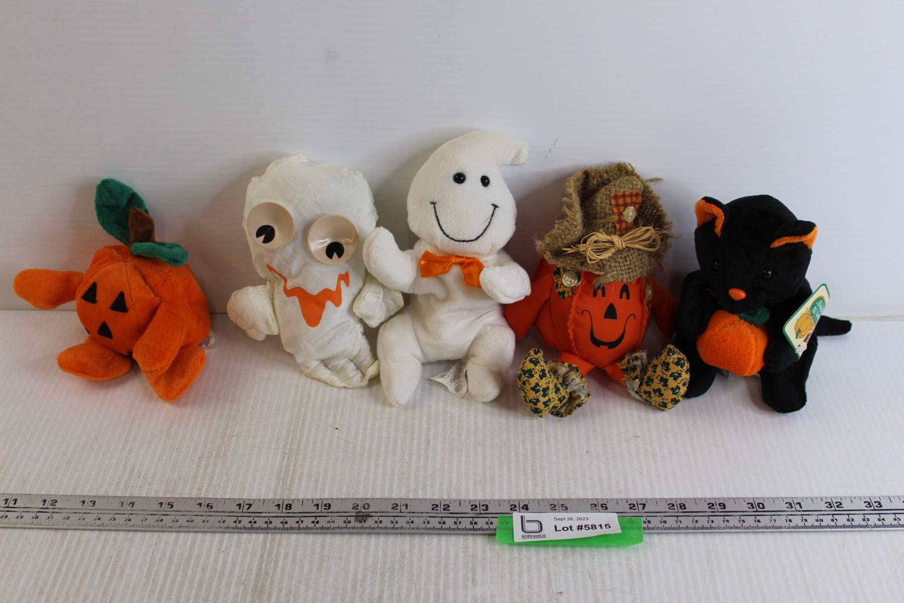 (5) Halloween-Themed Stuffed Animals - Pumpkins, Ghosts, Black Cat