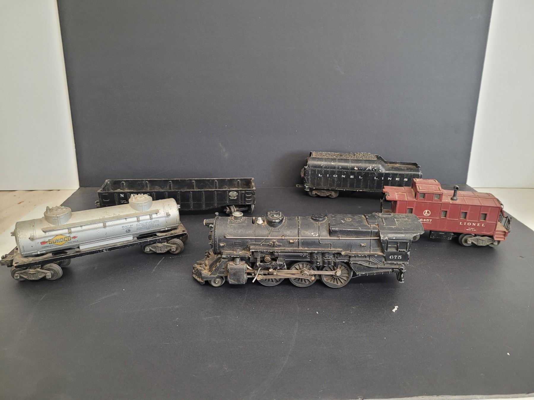 (5) Lionel Train Cars - includes Lionel Locomotive 675 K-4, Lionel Lines Coal Car, Lionel 6457 Caboose, Etc.