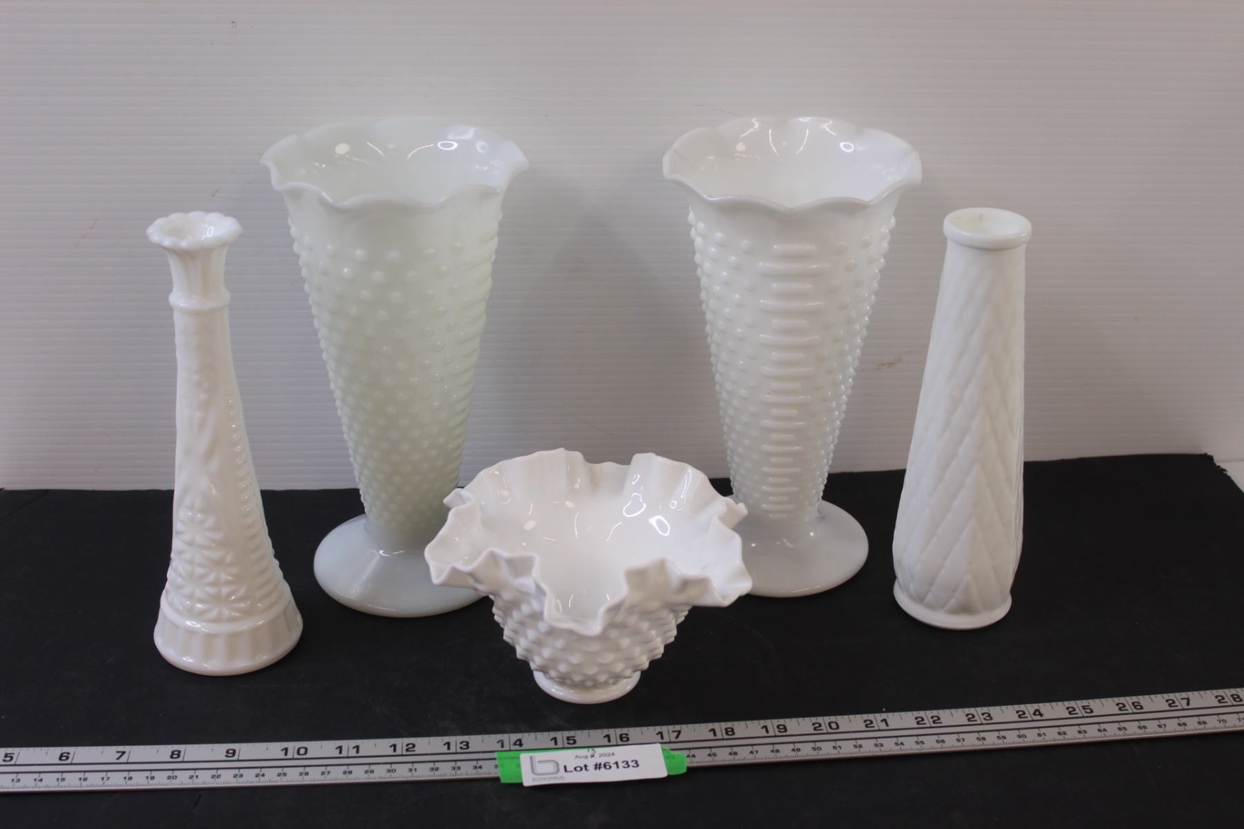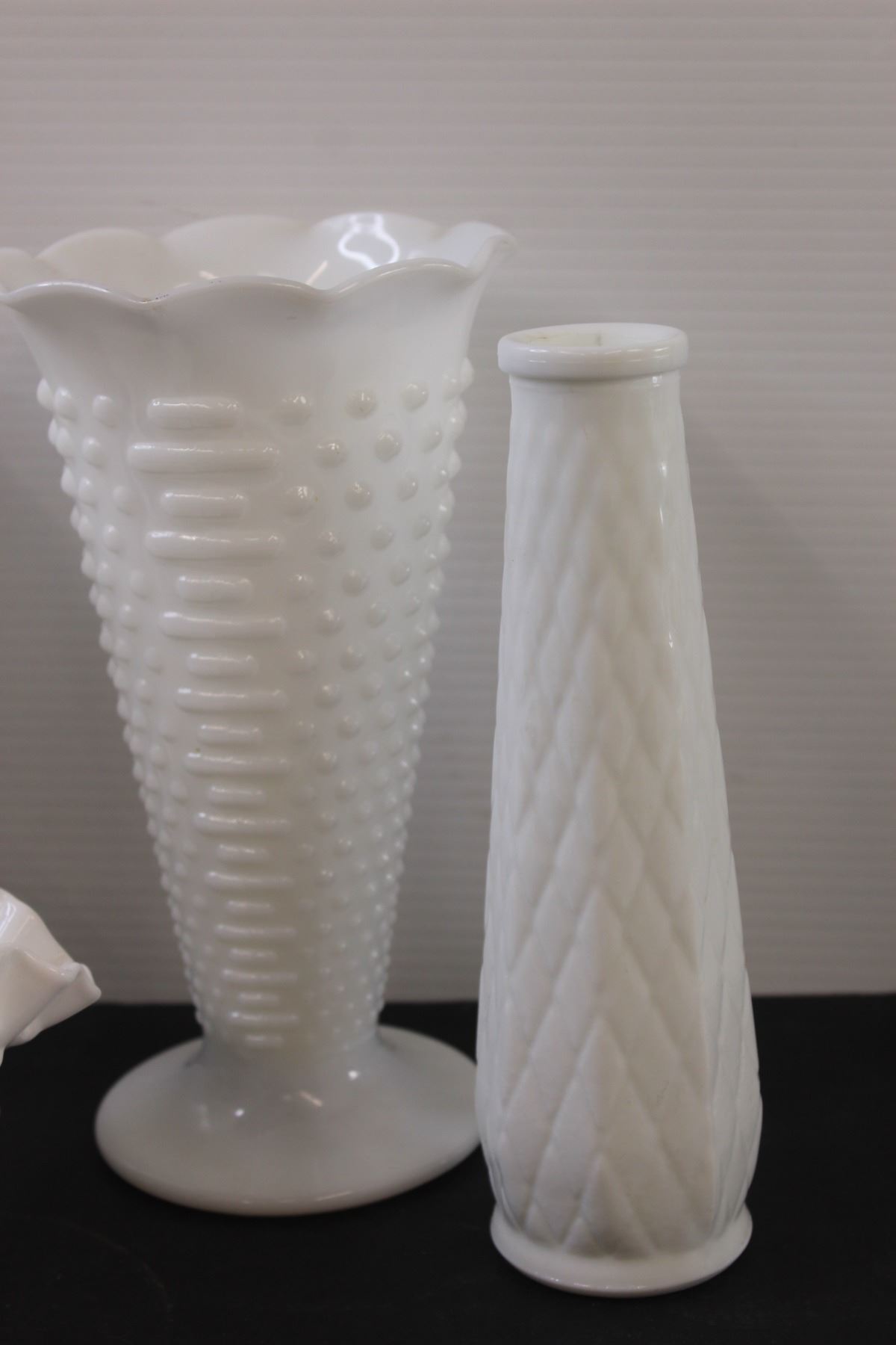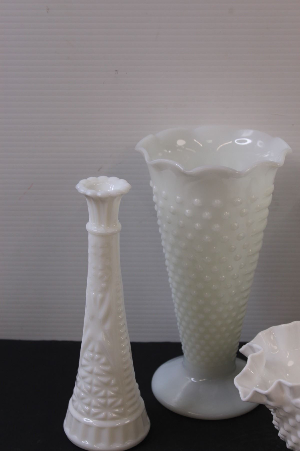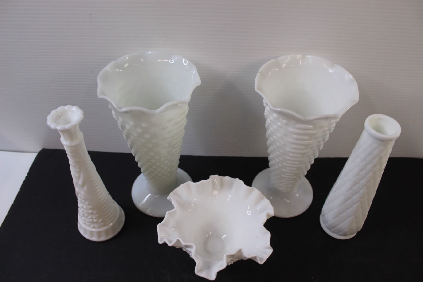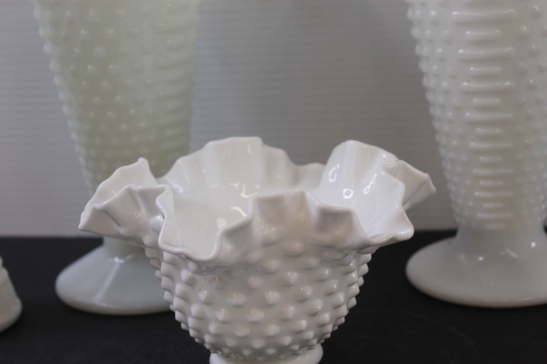 (5) Milk Glass Hobnail Vases