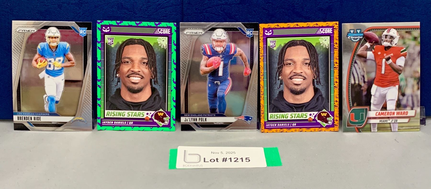 (5) NFL Football Rookie Cards: Jayden Daniels; Polk; Ward; Rice - HOT LOT!