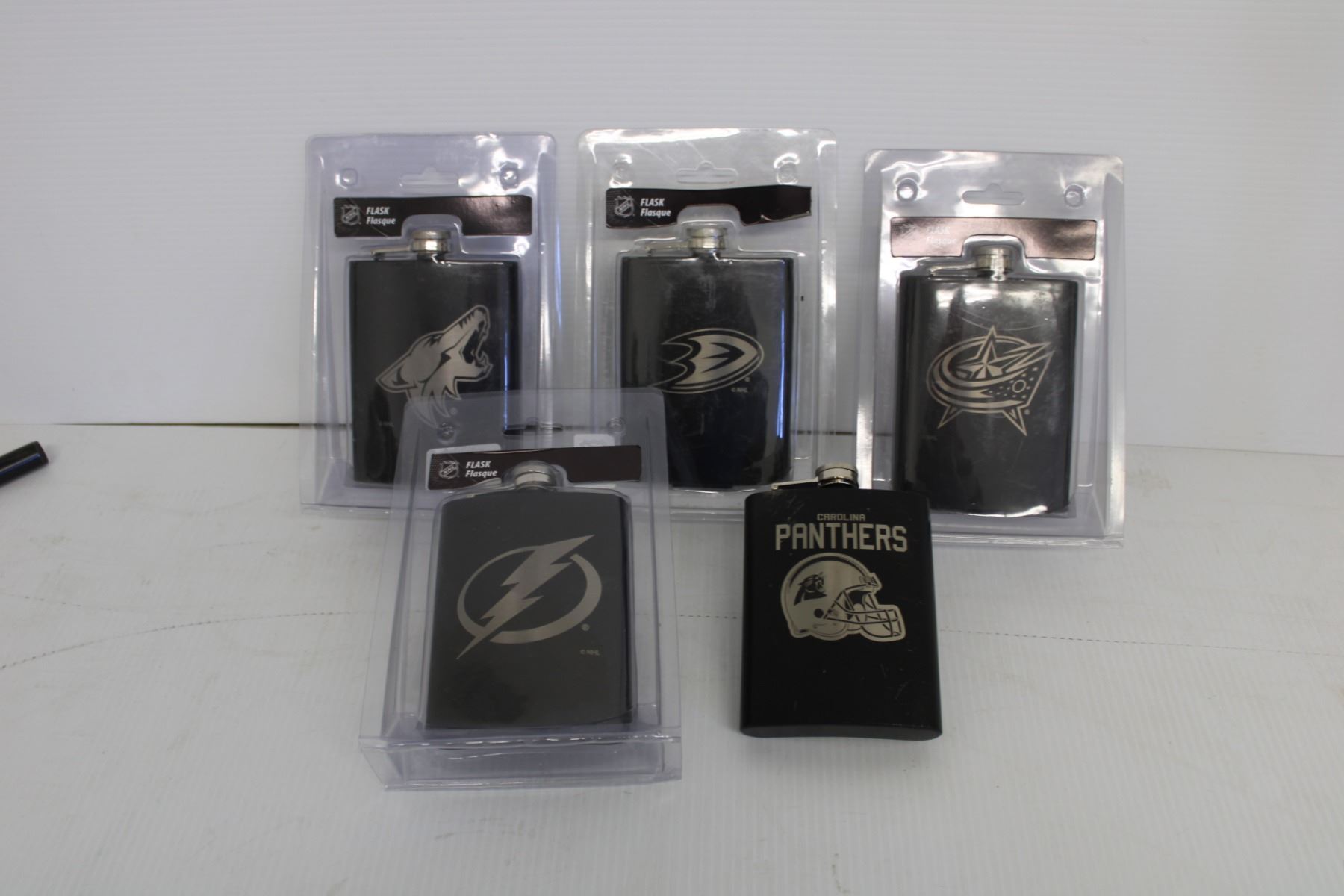 (5) NHL & NFL Flasks - Dallas Stars, Carolina Panthers