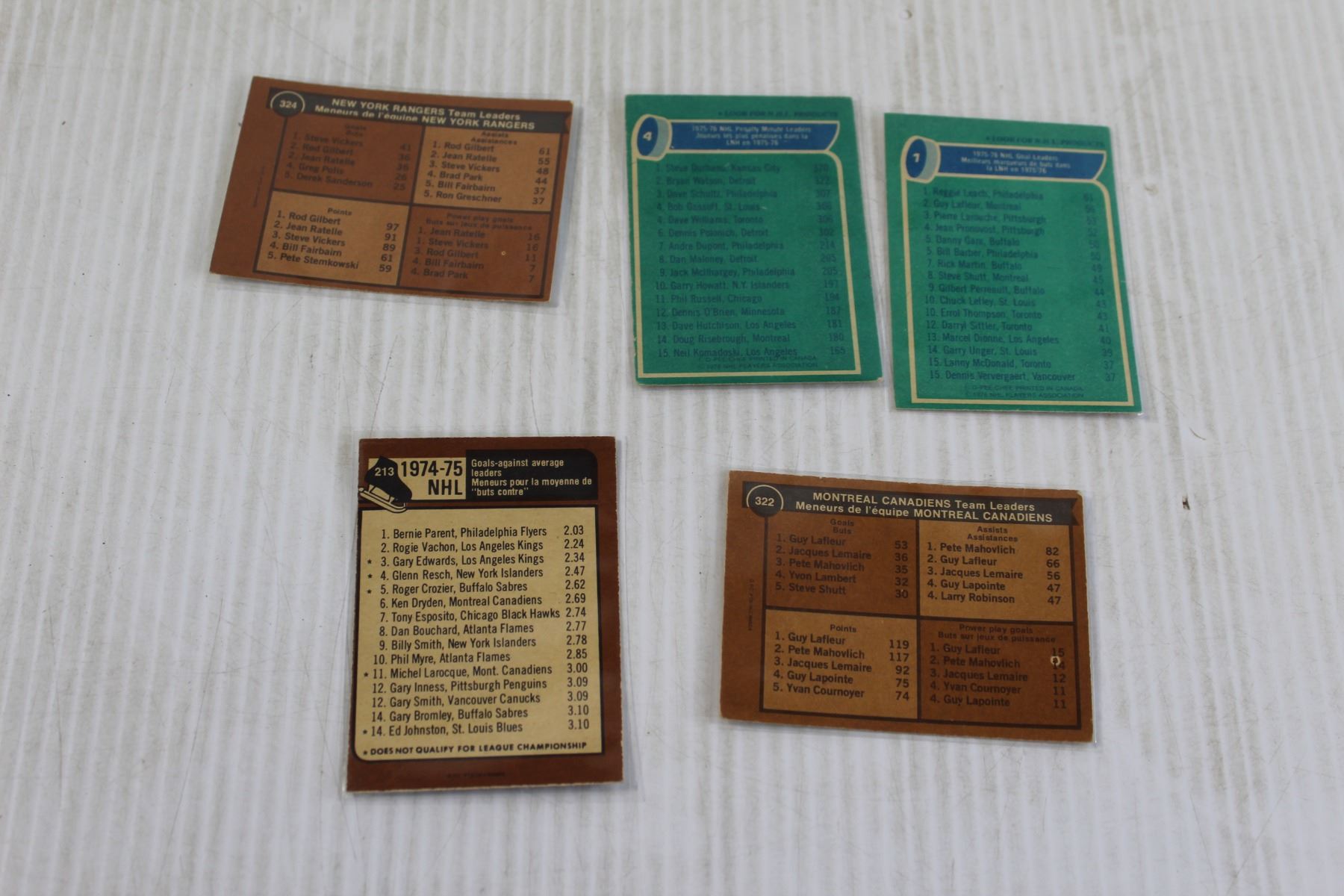 (5) NHL Team Leaders Hockey Cards