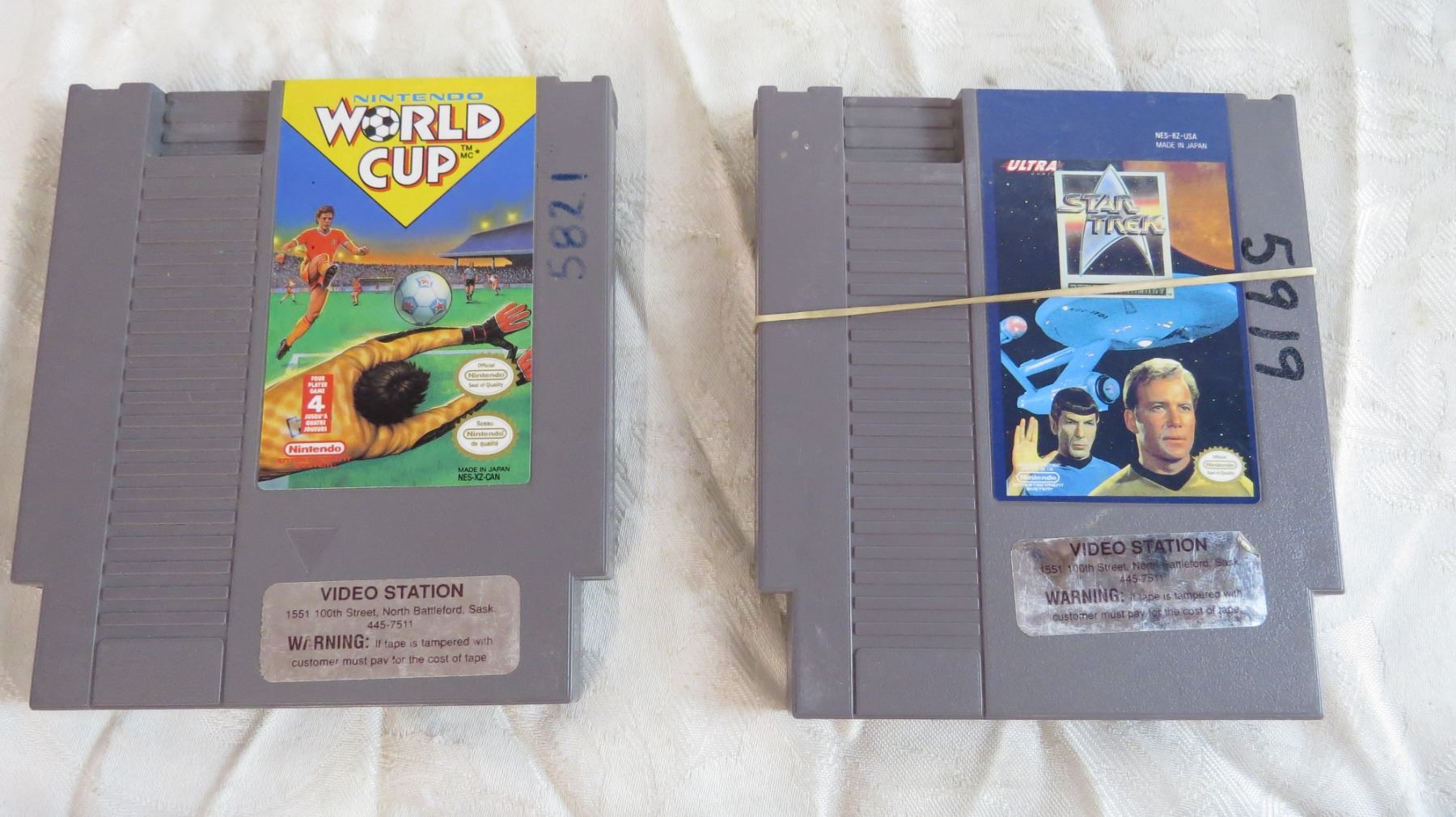 (5) Nintendo Games - World cup, Star trek, Exodus Ultima , Super Mario Bros