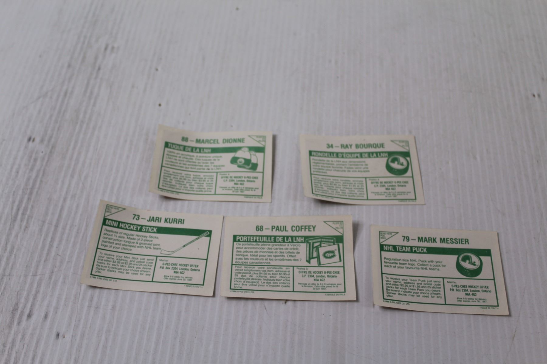 (5) OPC 1986 Hockey Stickers: Messier, Kuri, Coffey, Bourque, Dionne