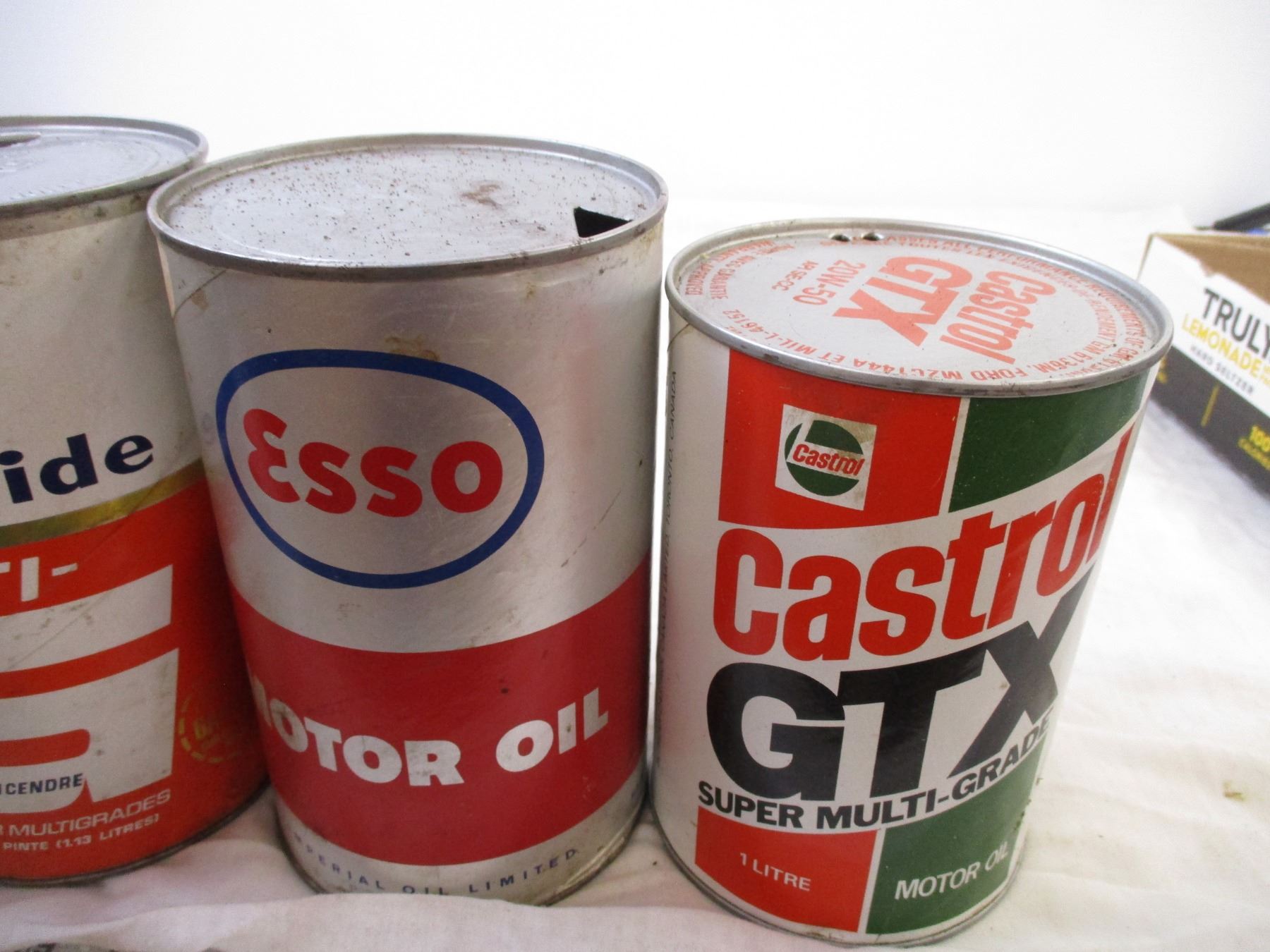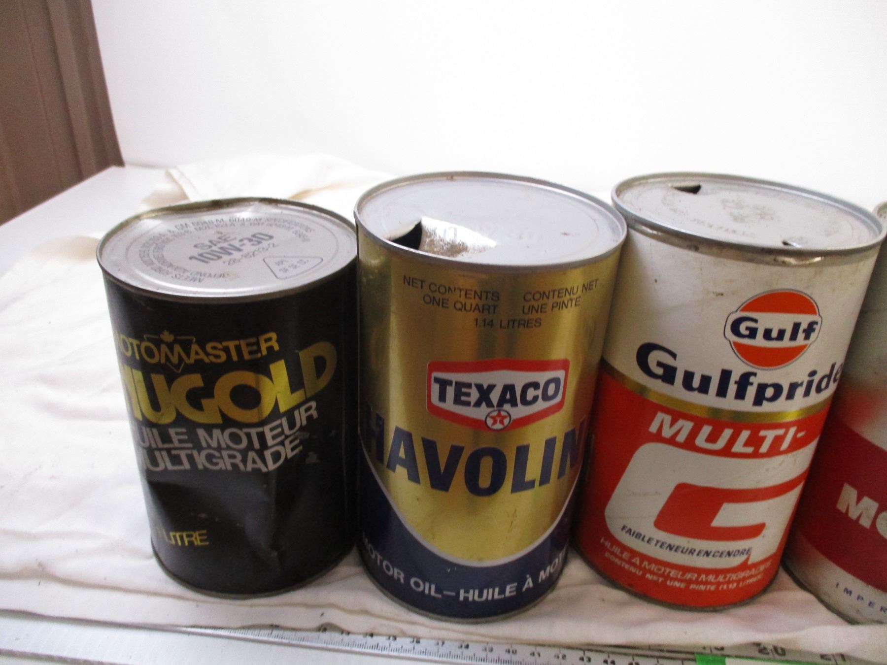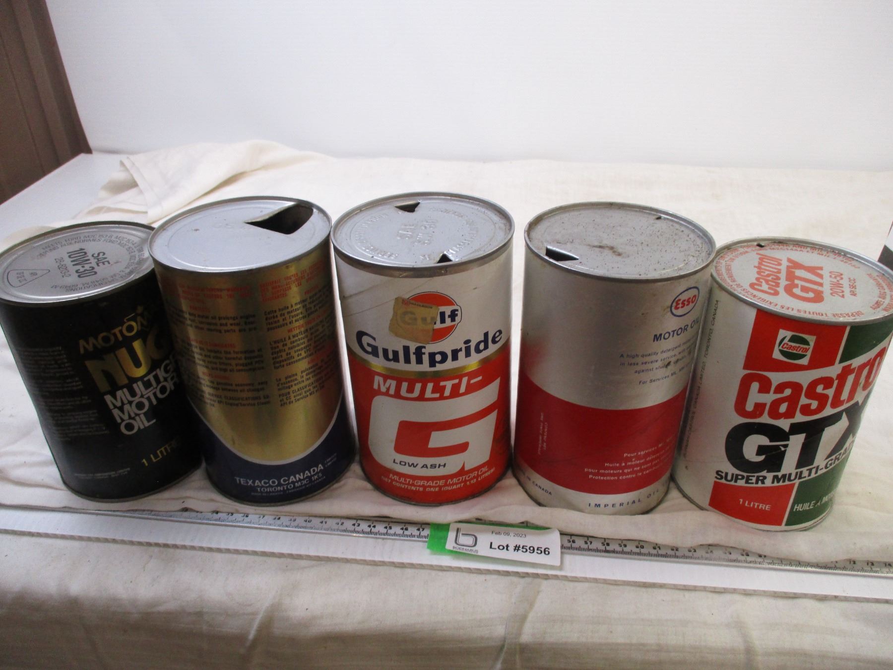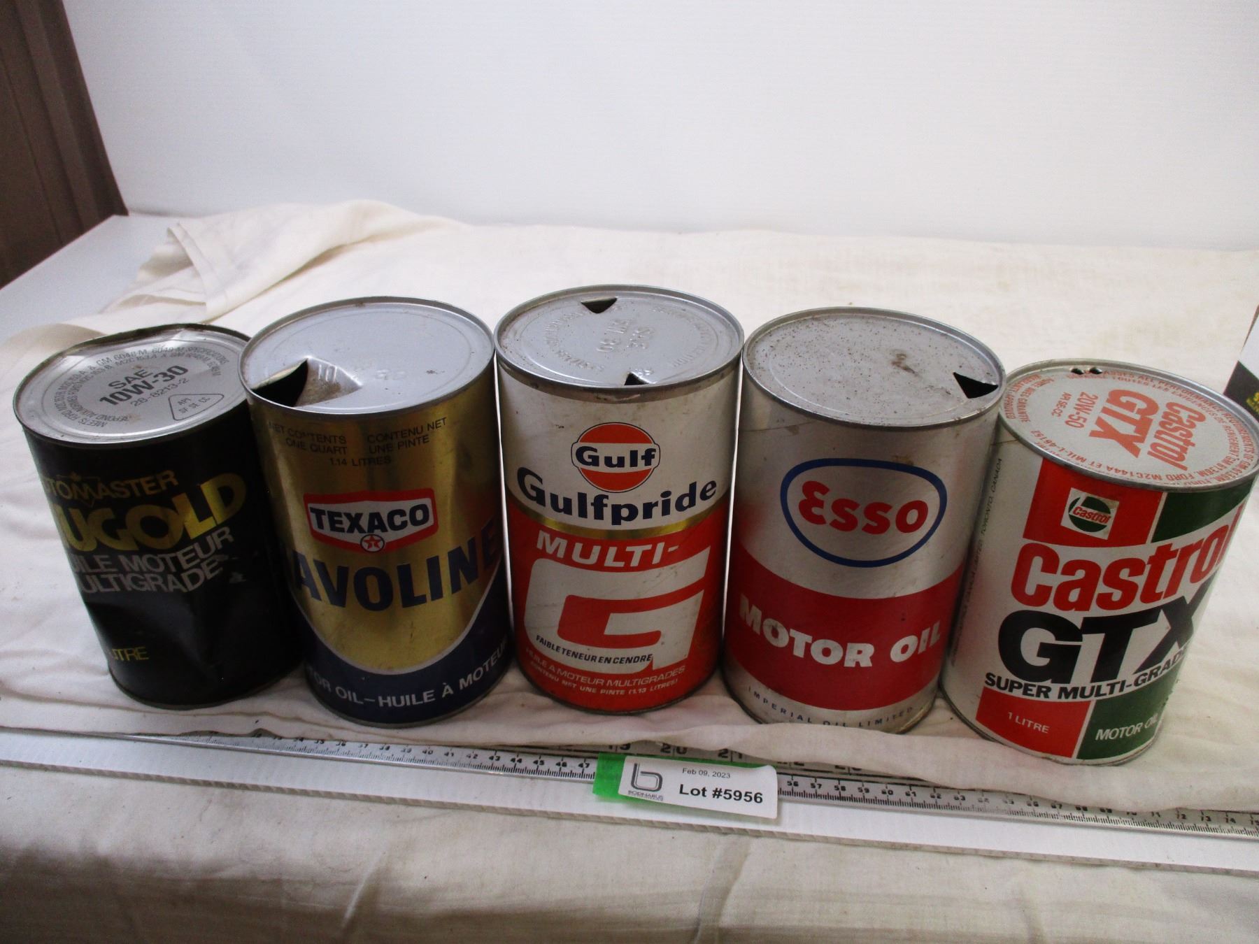 (5) Oil Tins (Gulf, Esso, Castrol, Texaco)