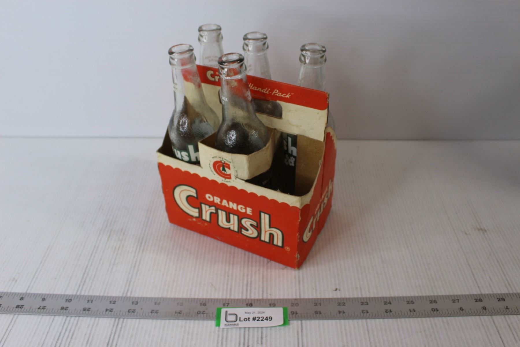 (5) Orange Crush Bottles in Orange Crush Cardboard Carrying Case