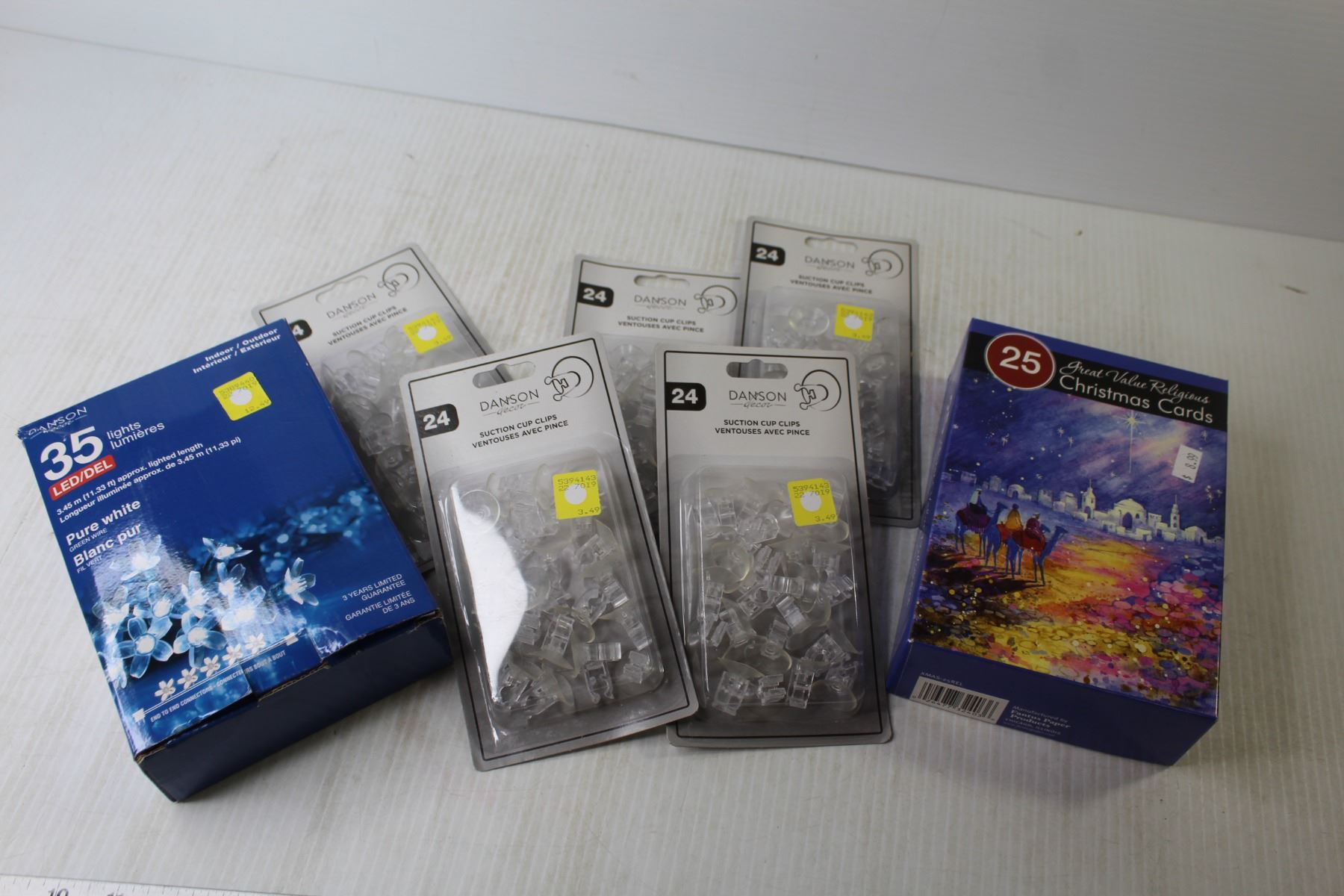 (5) Packs of Suction Cup Clips - 35 Led White Lights - Christmas Cards