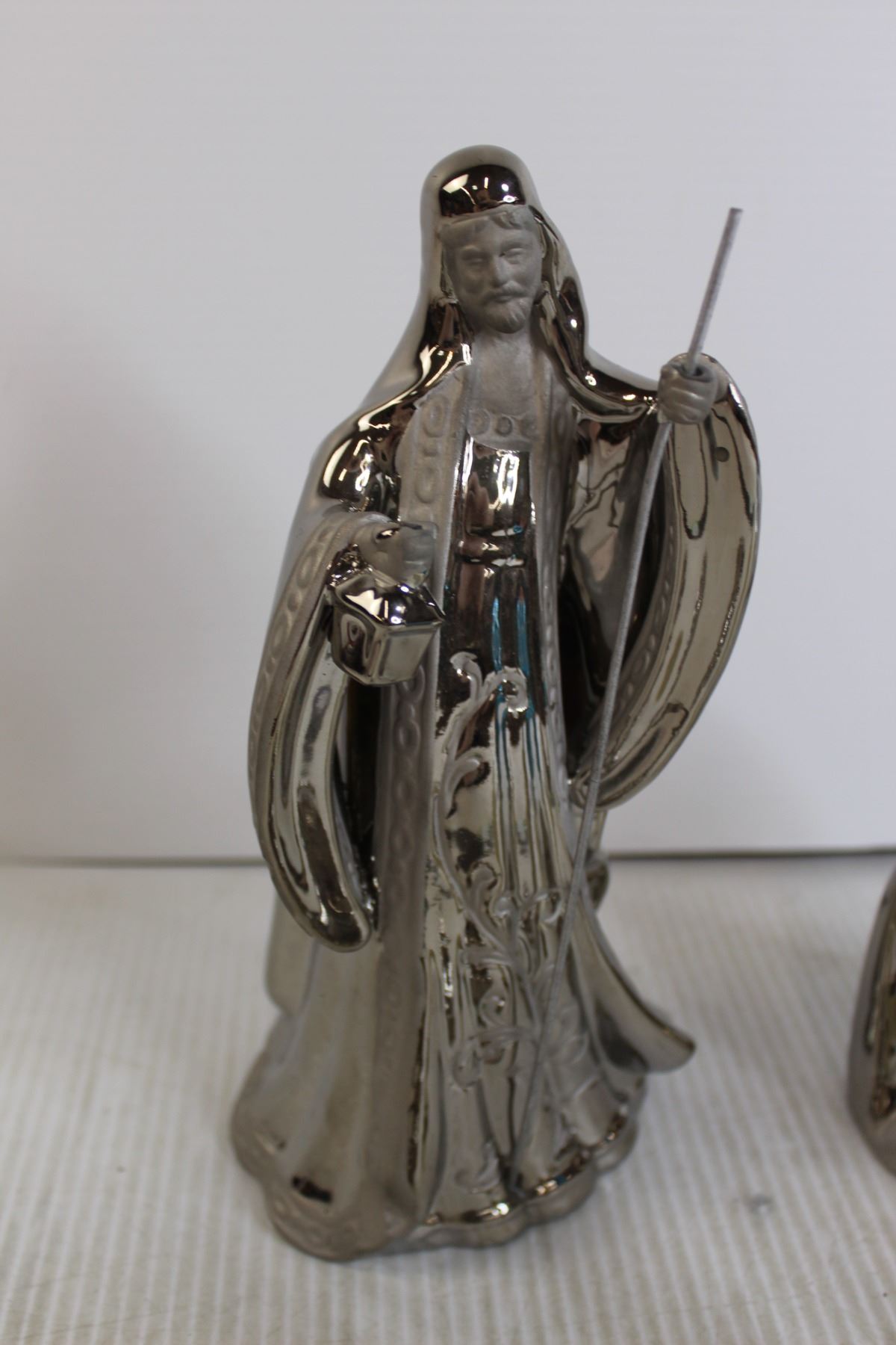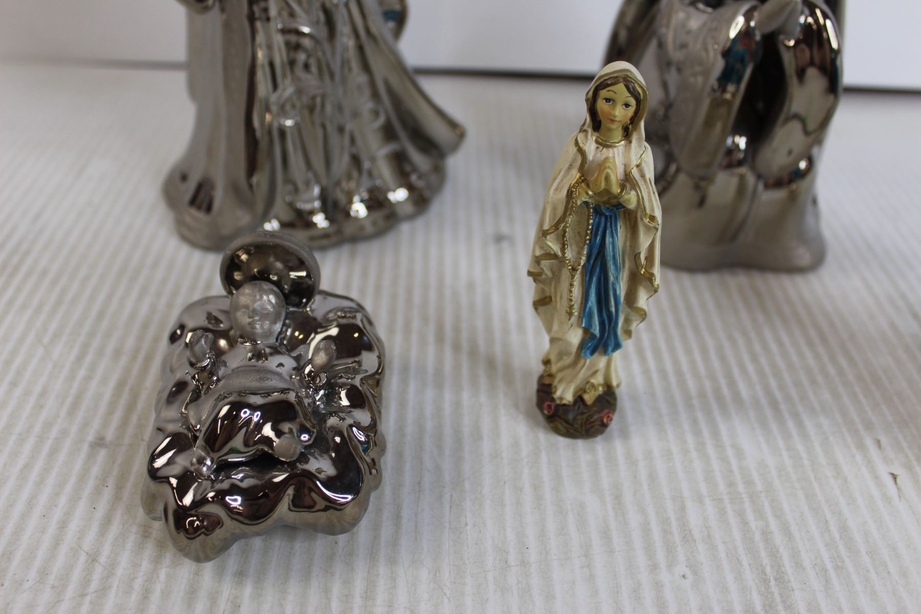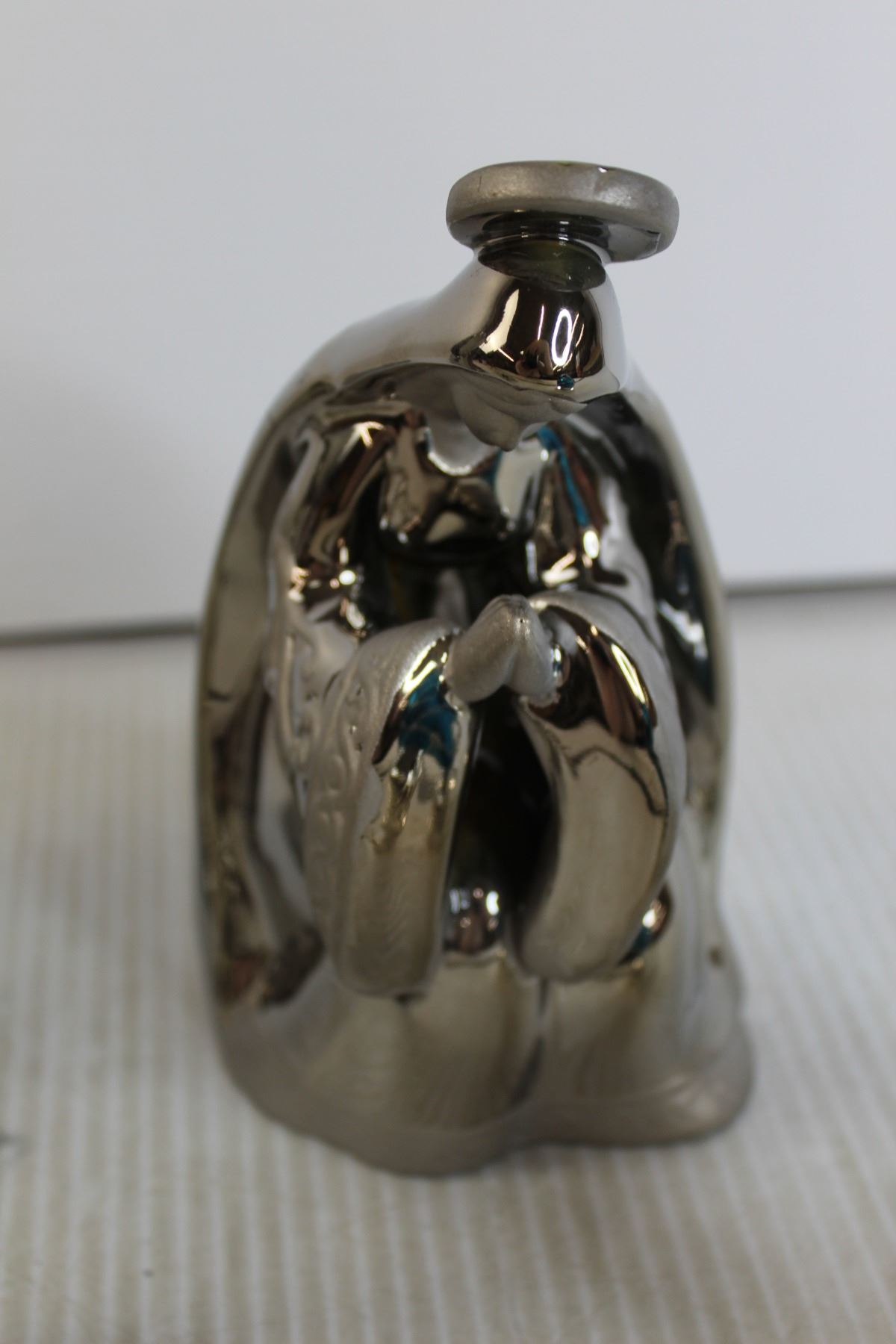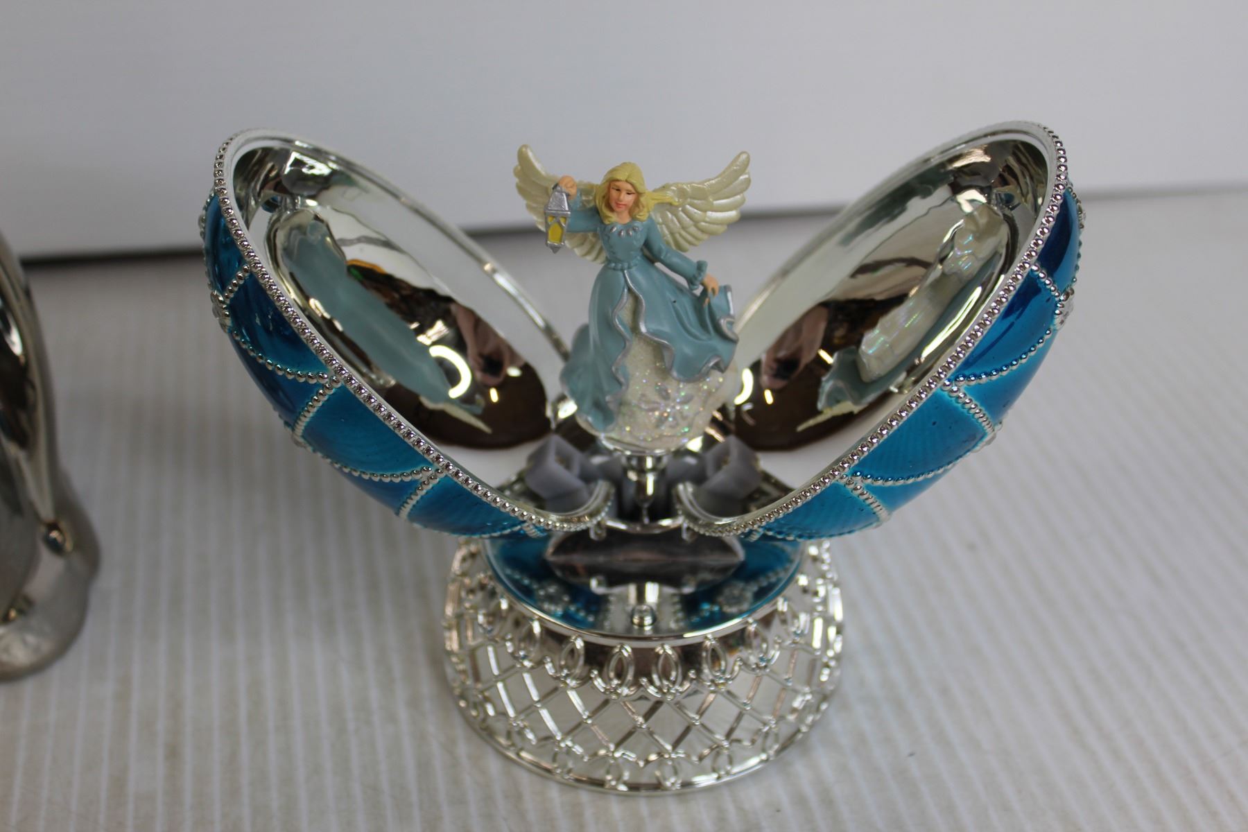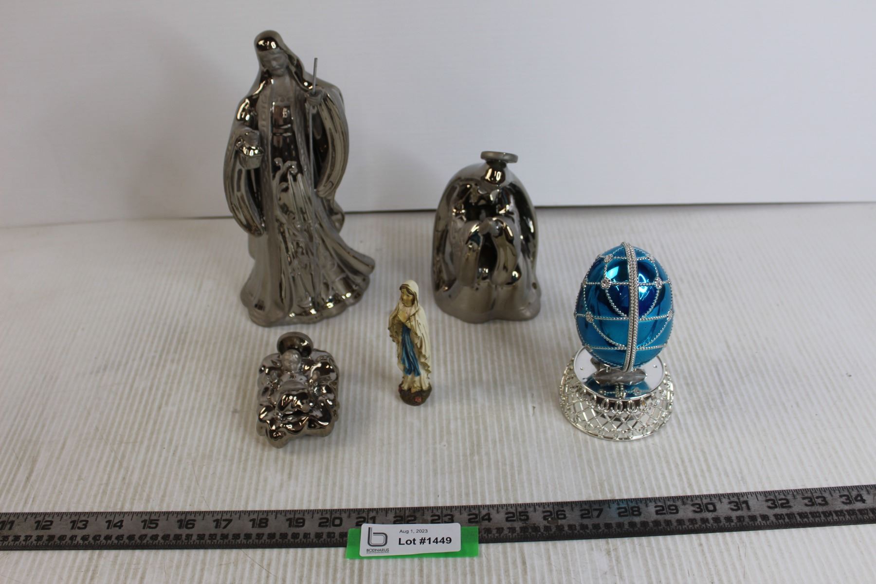 (5 Pieces) Christmas Decor (Small Figurine, Musical Egg [Works], 3 Silver Gilded Ornaments)