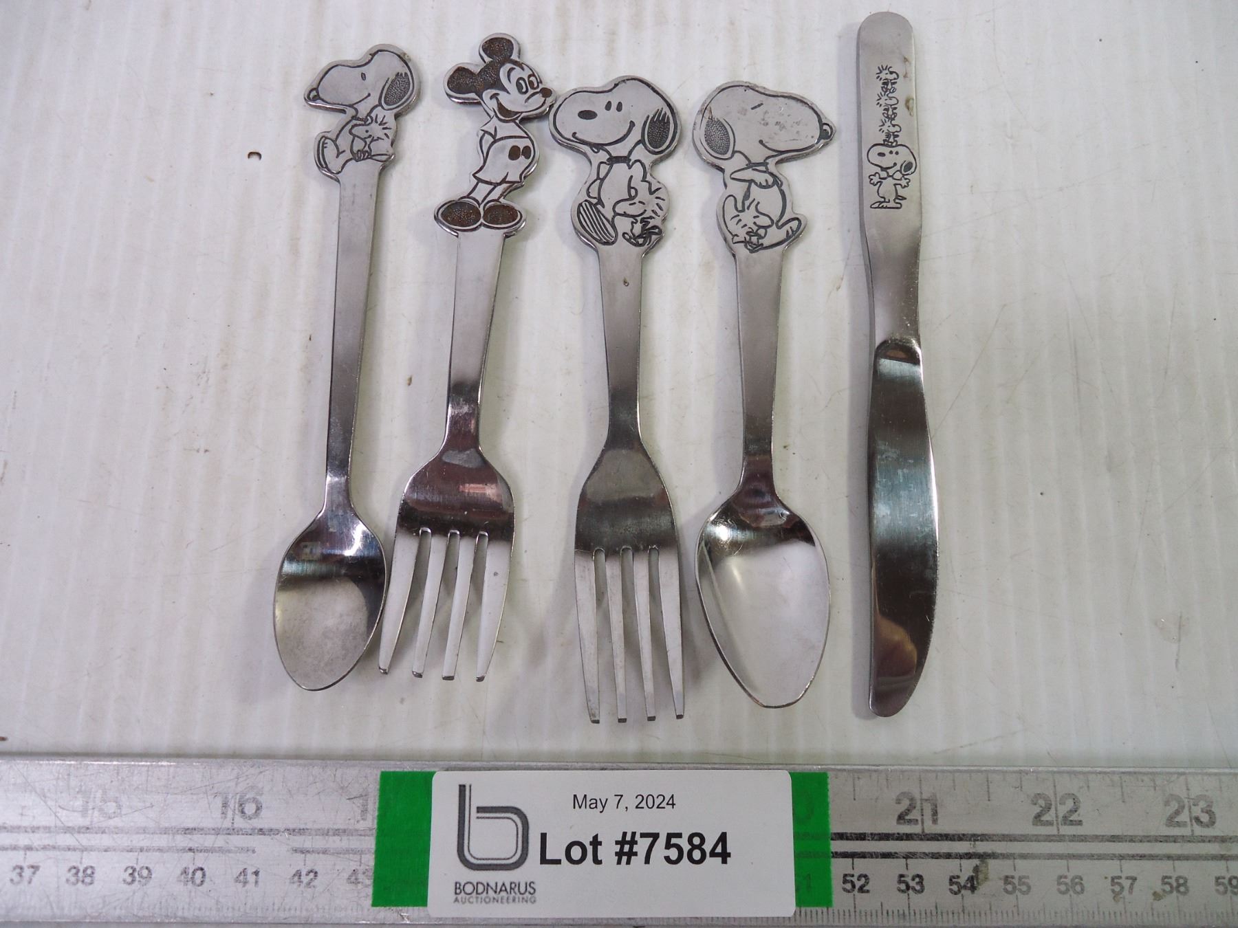 (5) Pieces of Disney and Snoopy Collectible Vintage Baby Utensils