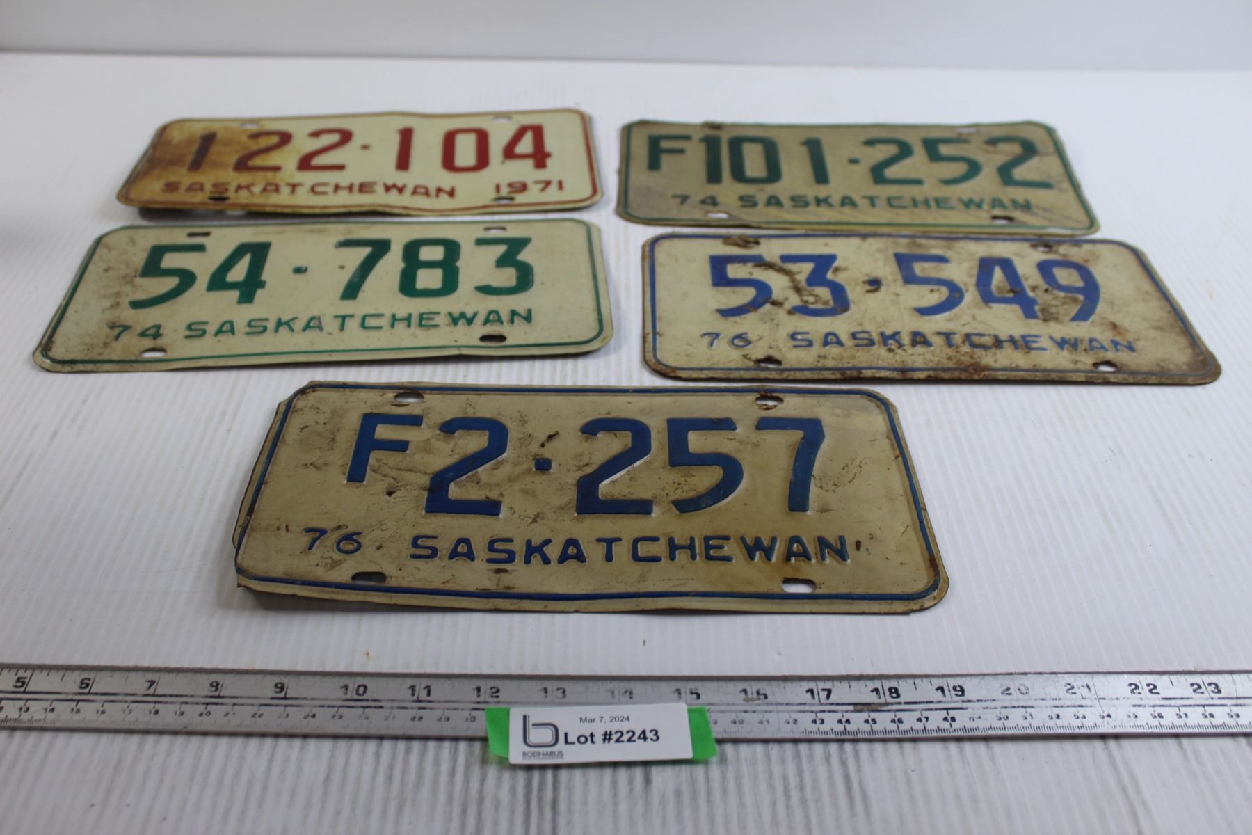 (5) Saskatchewan License Plates - 1971, 1974, 1976