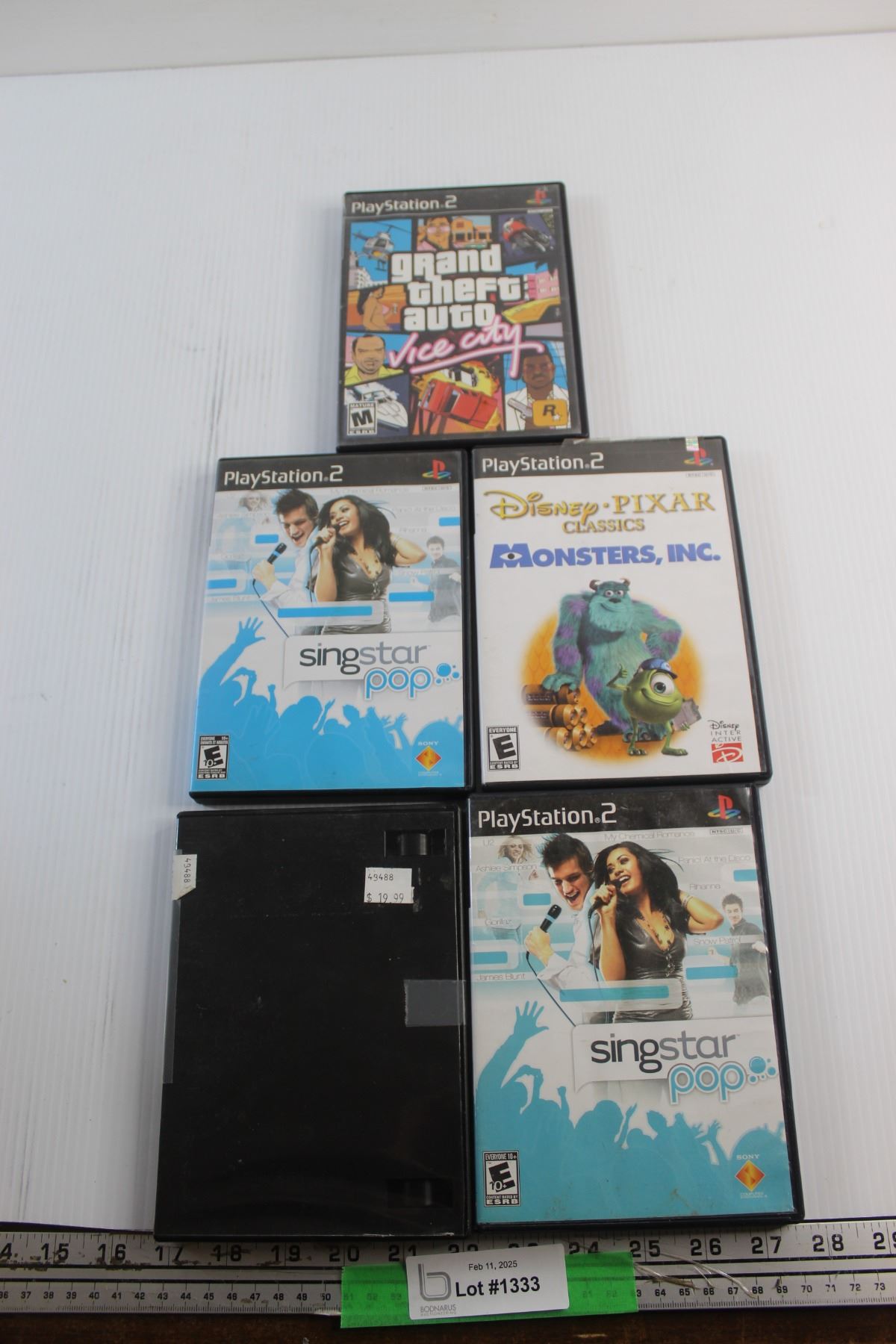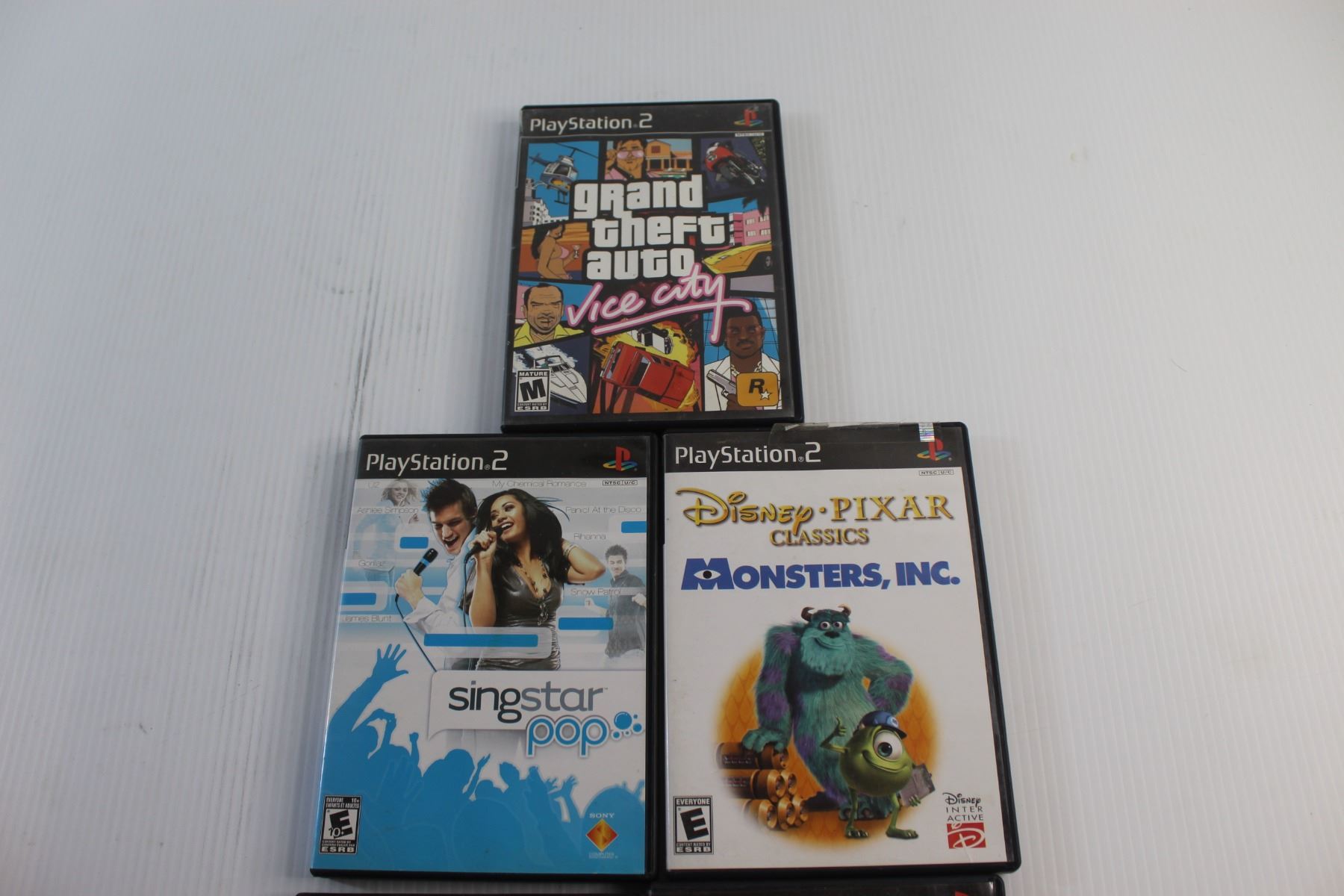 (5) Sony Play Station 2 (PS2) Games - Grand Theft Auto (GTA) Vice City, Monsters Inc and Singstar Pop