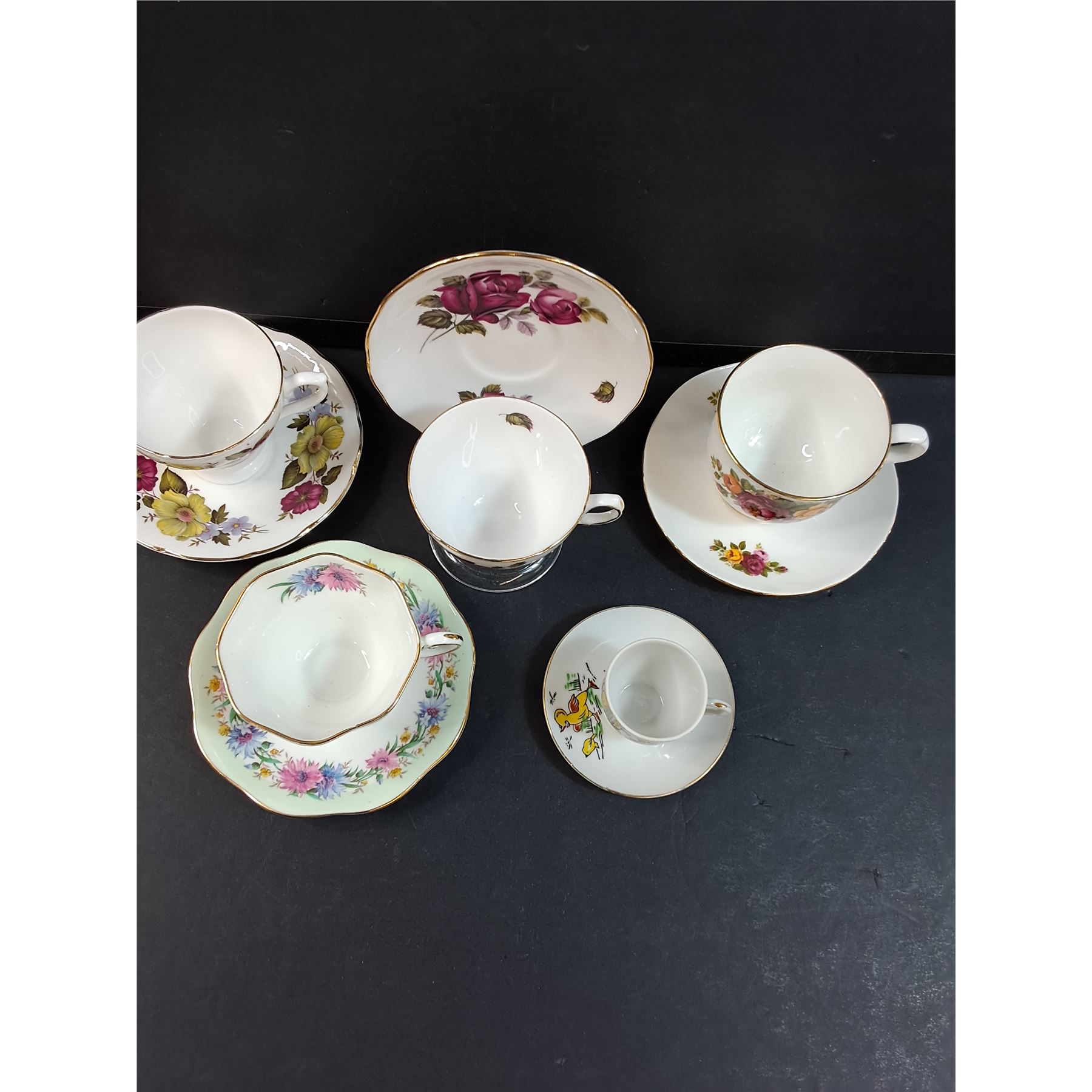 (5) Tea Cup & Saucer Sets: Foley, Delphine, Royal Vale, Misc