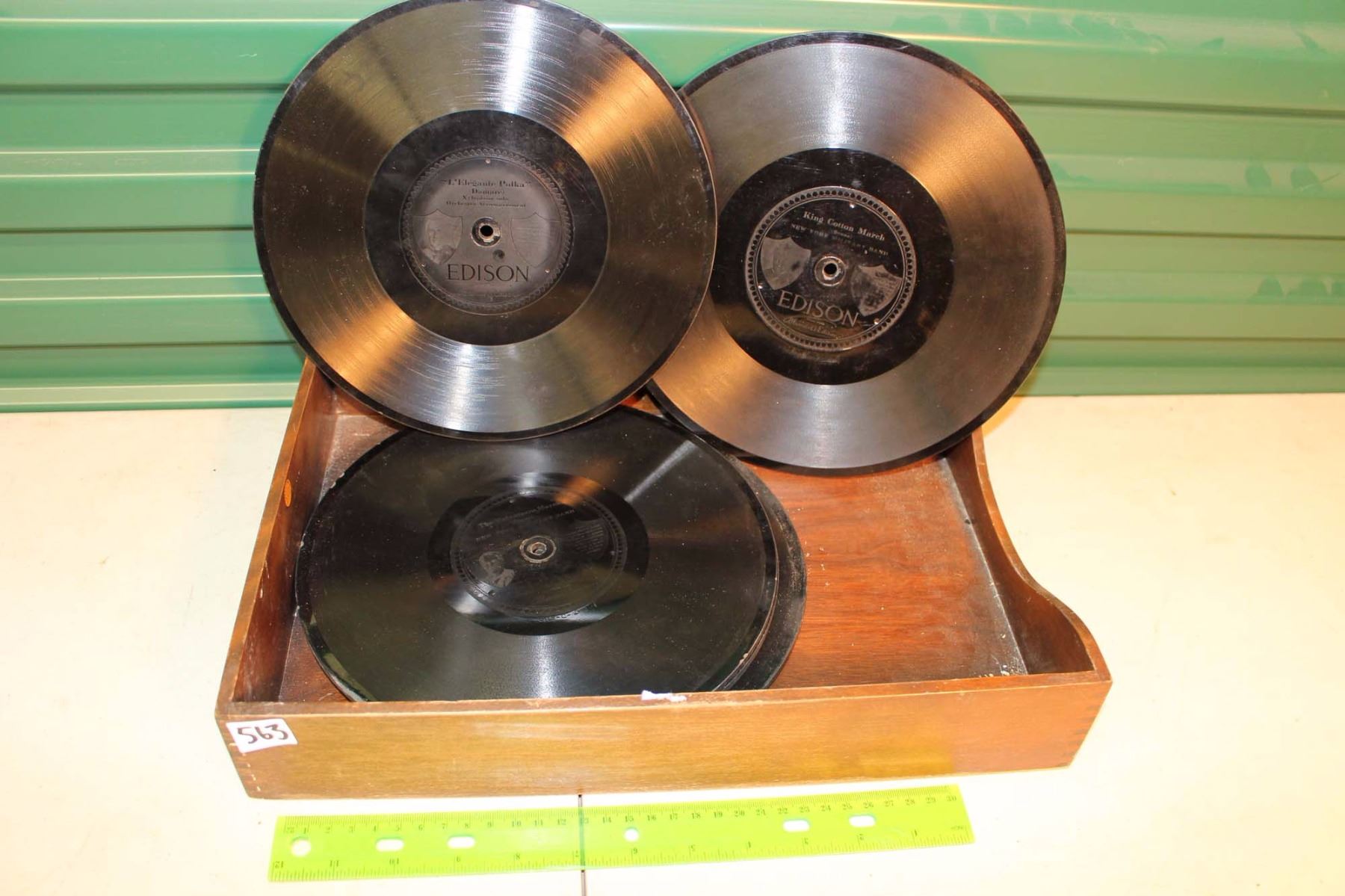 5 Thick Edison Gramophone Records In A Wooden Dovetailed Box