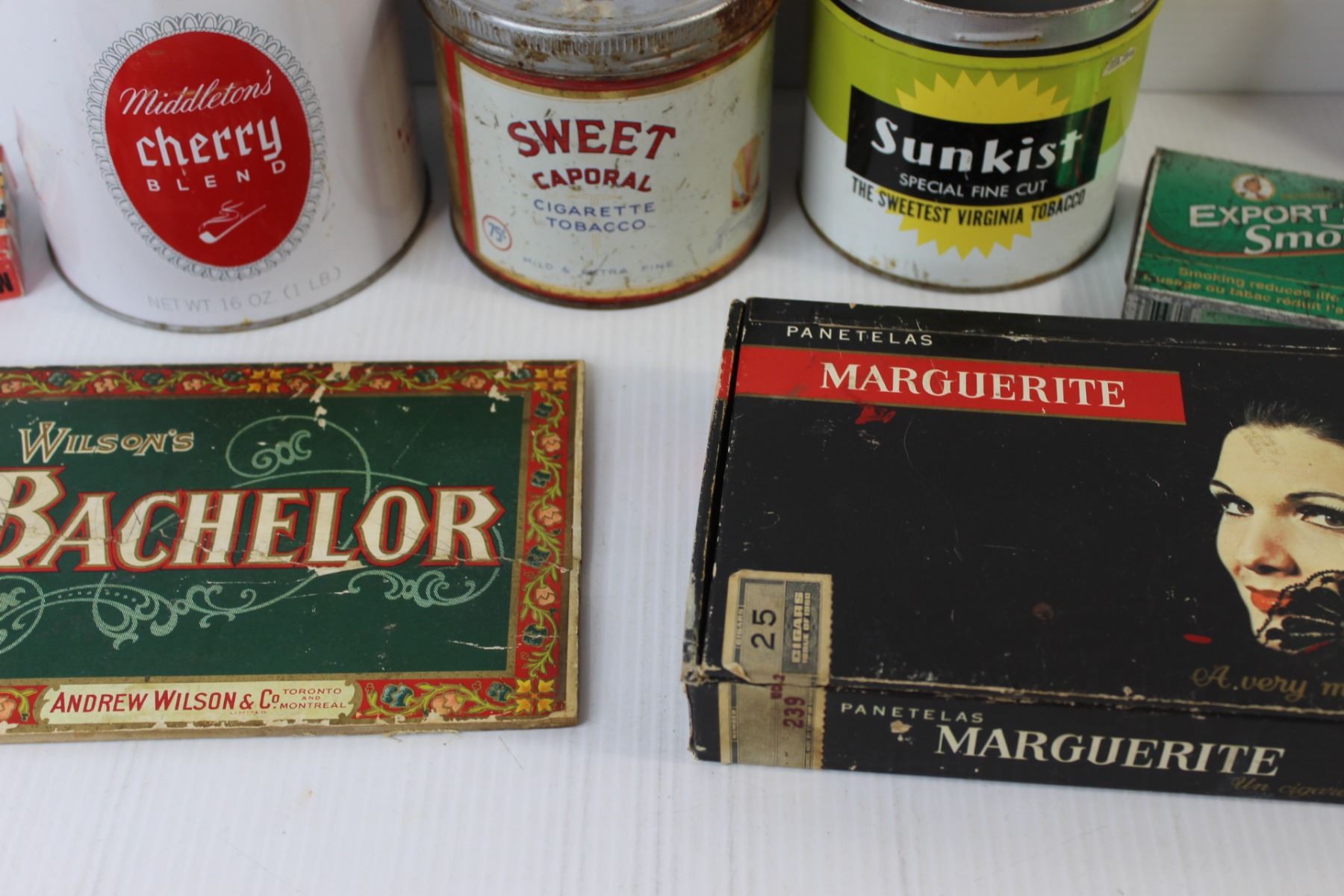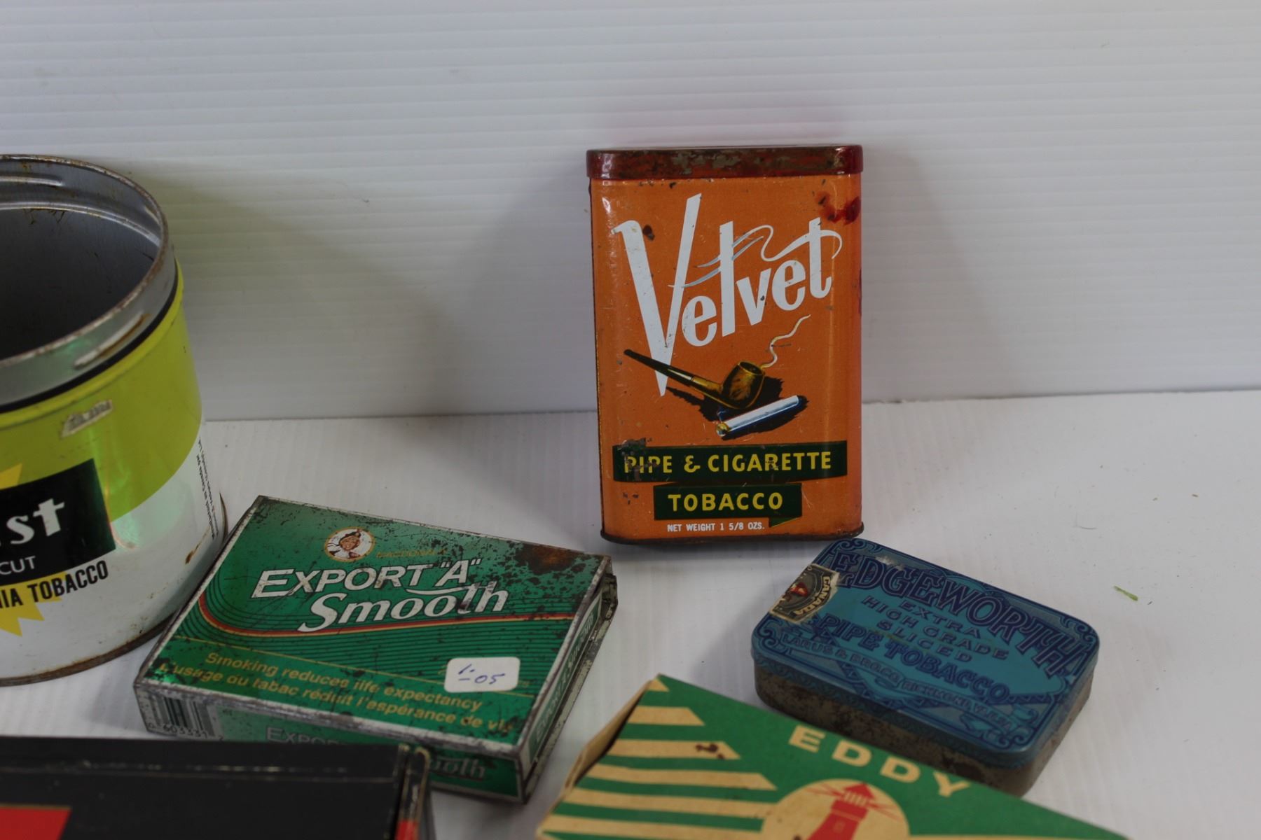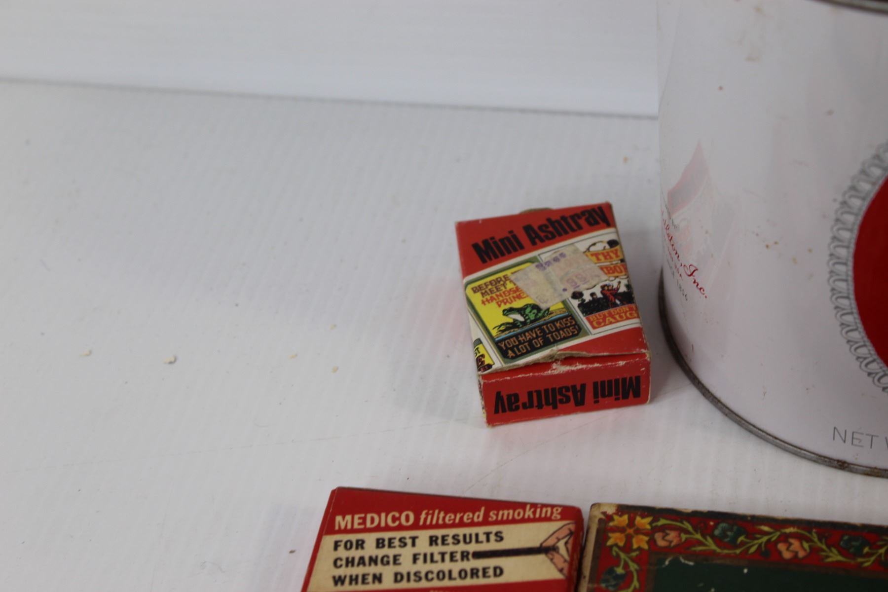 (5) Tobacco Tins, (2) Matches Boxes, Various Tobacco Items