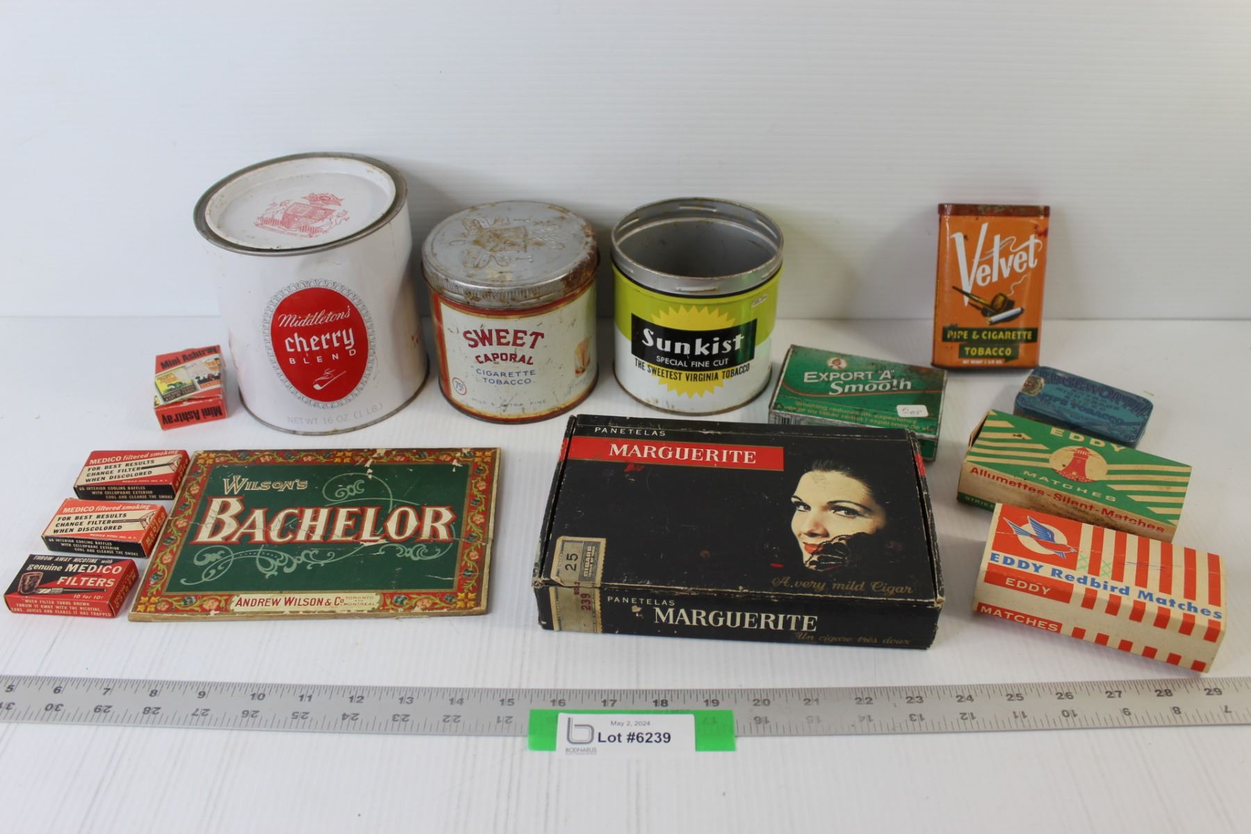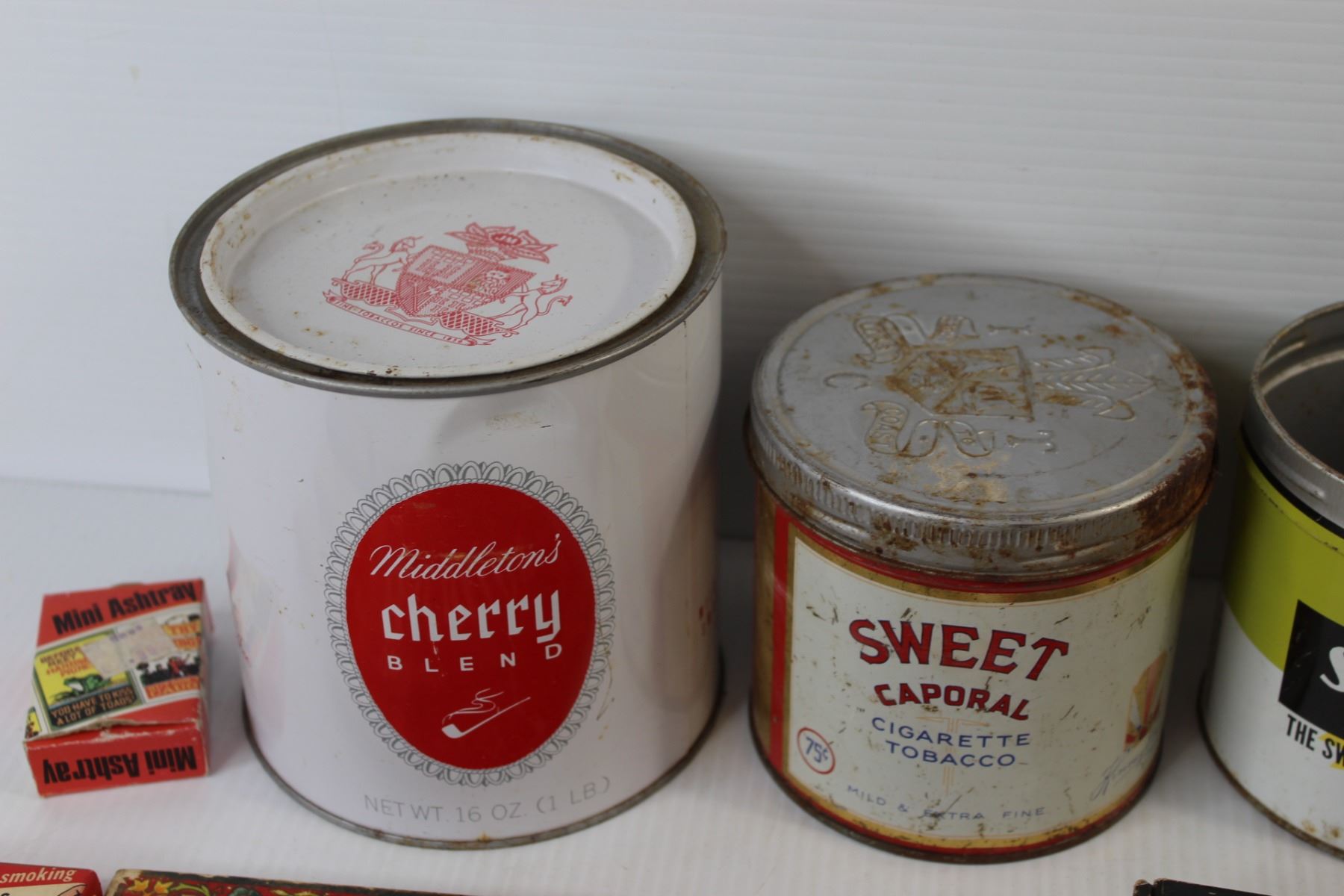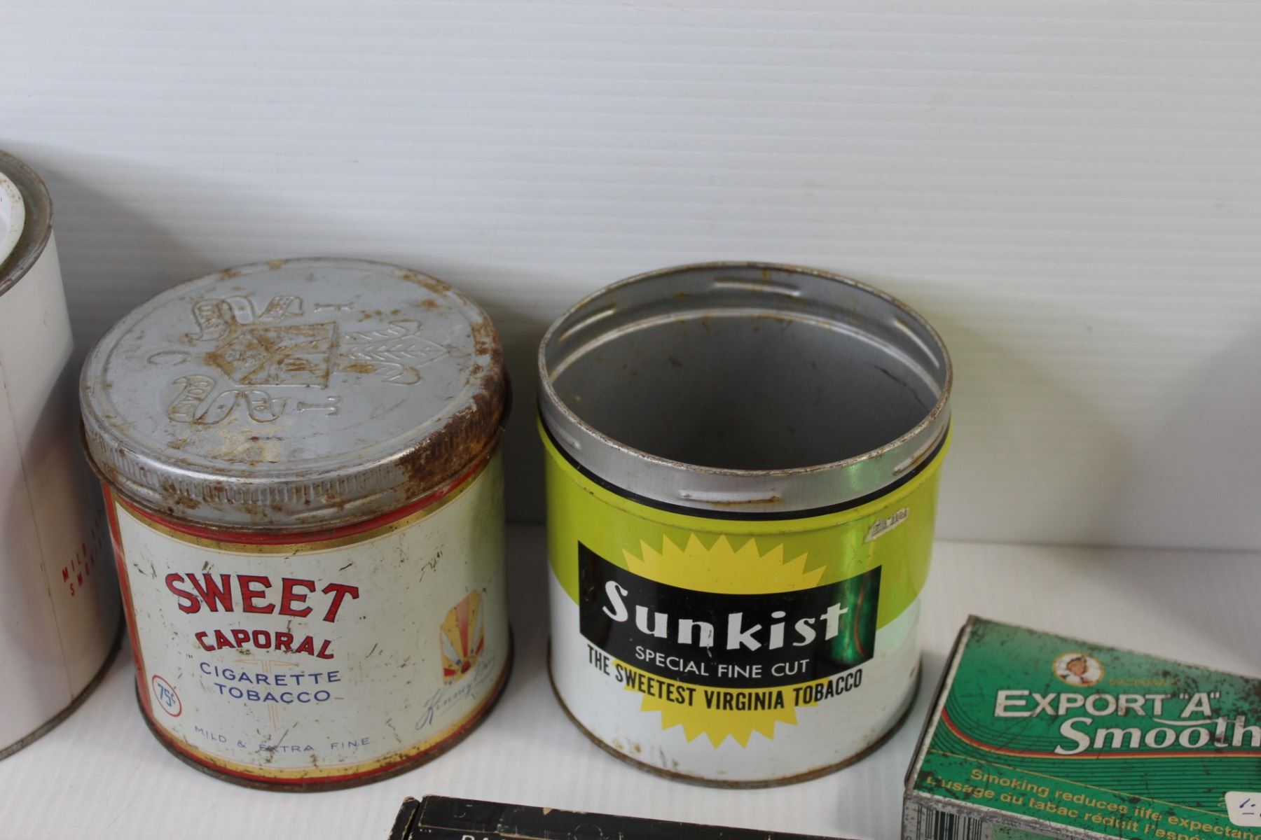 (5) Tobacco Tins, (2) Matches Boxes, Various Tobacco Items