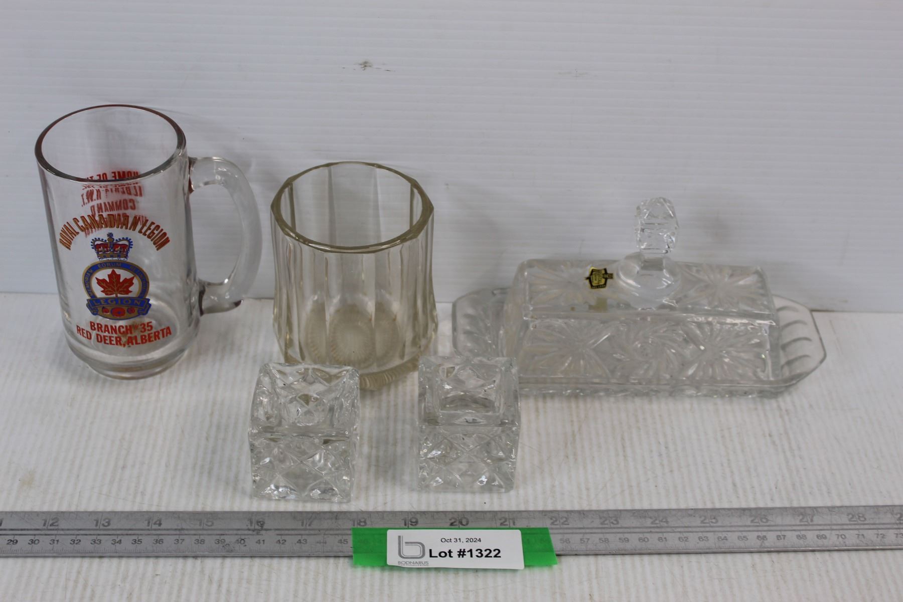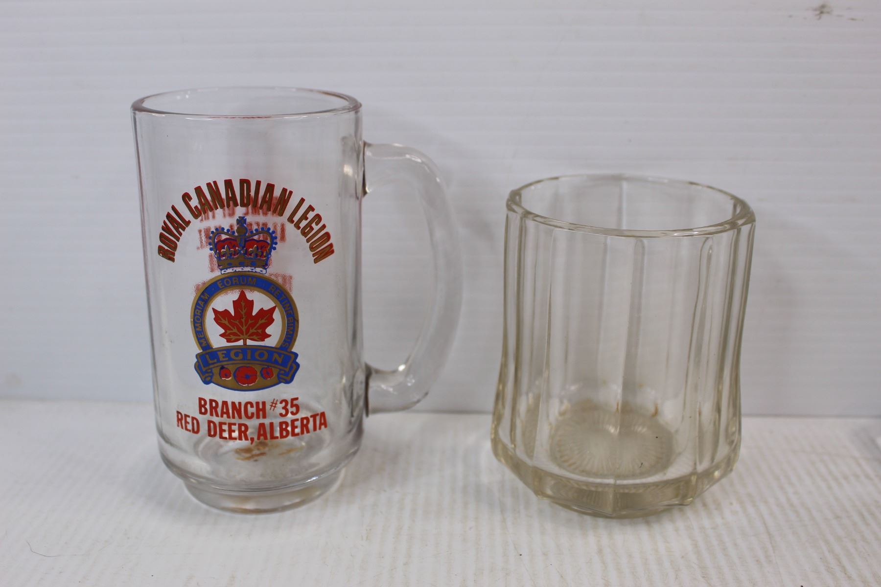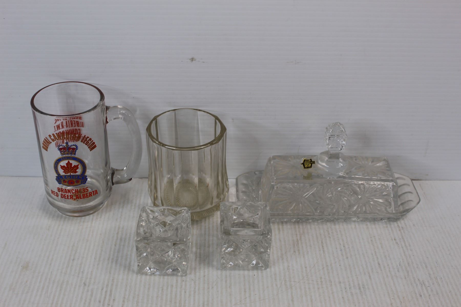 (5) Various Clear Glass Pieces/ Drinking Glasses, Royal Canadian Legion Cup, Kristal Butter Dish, Misc.