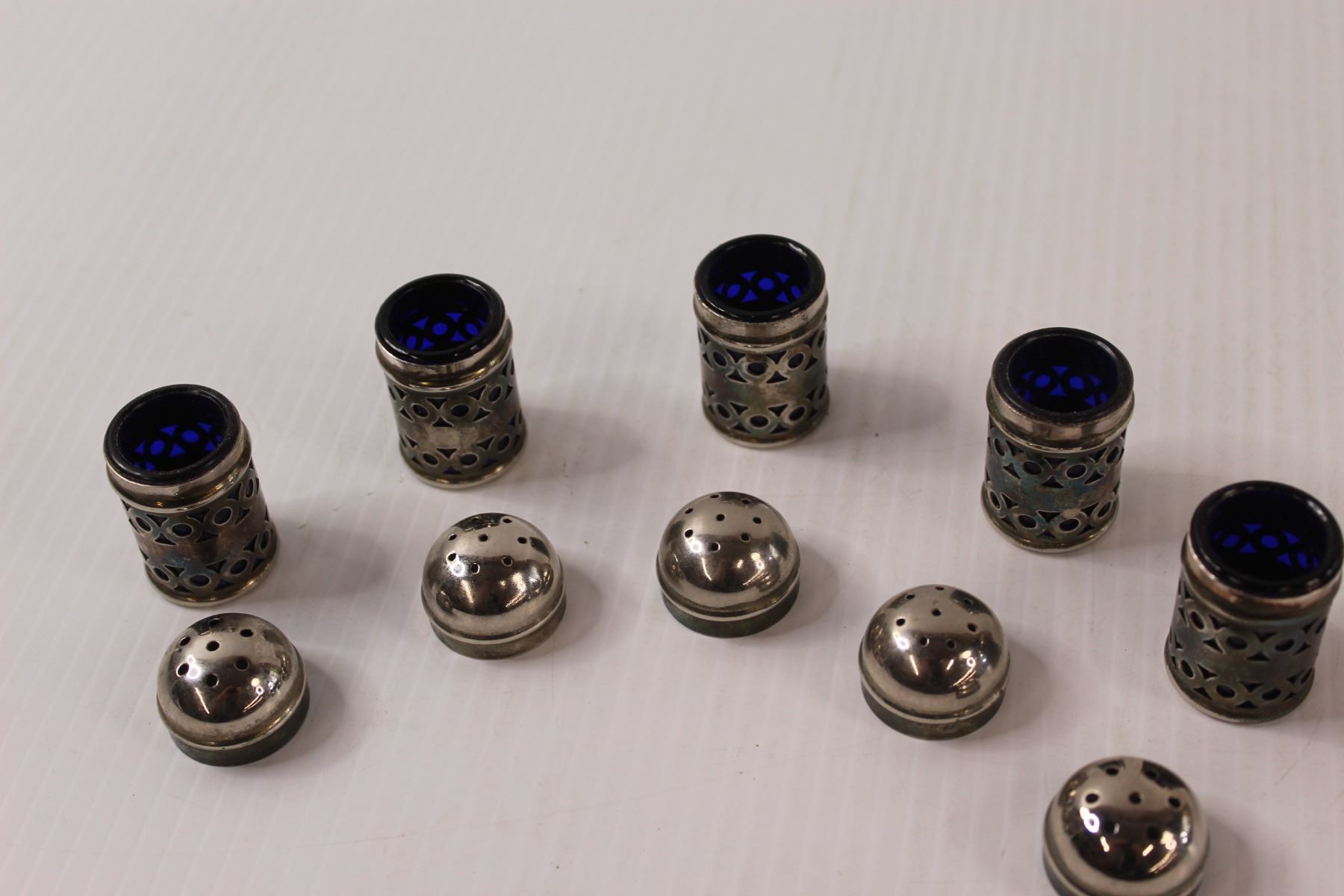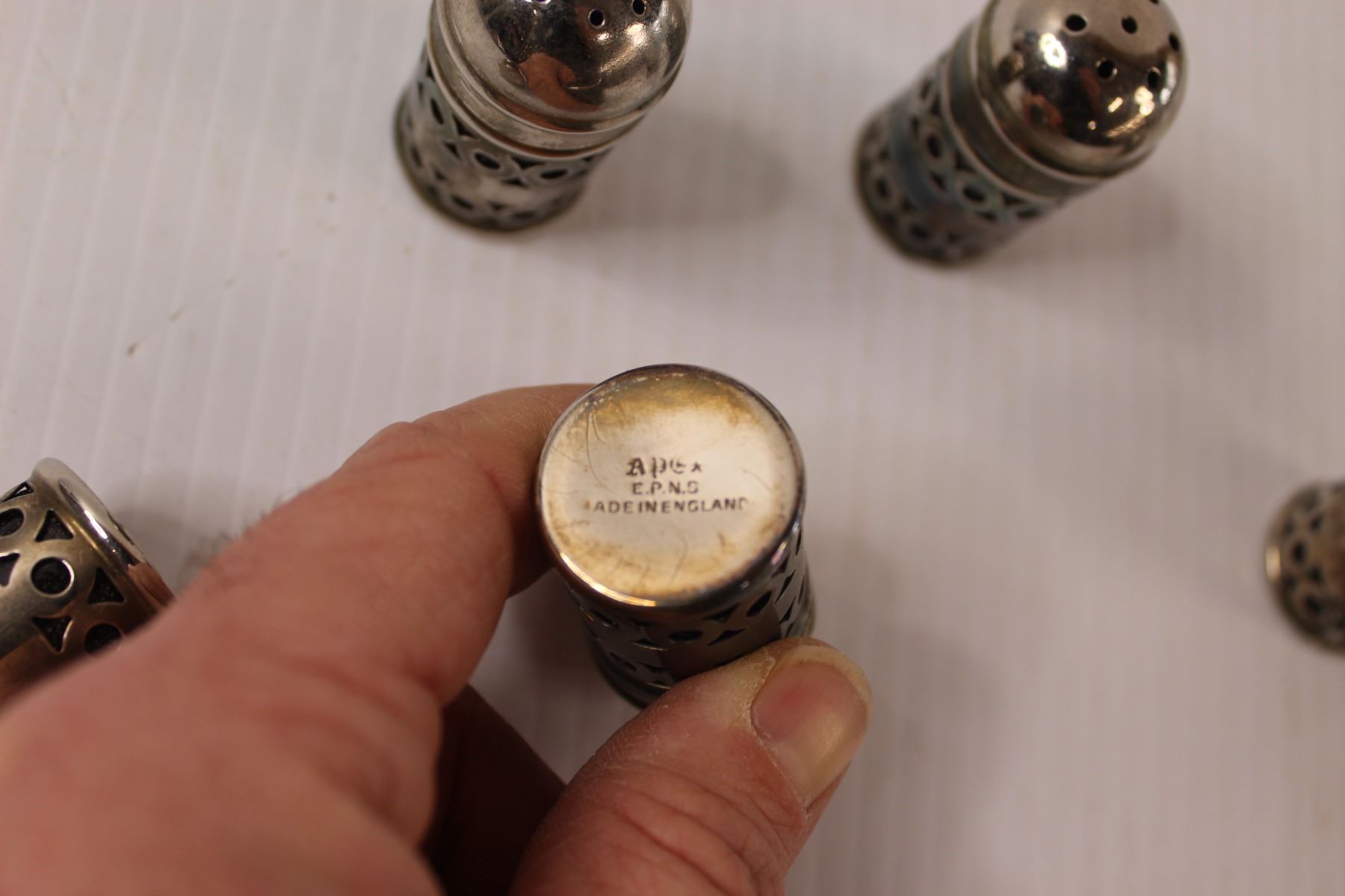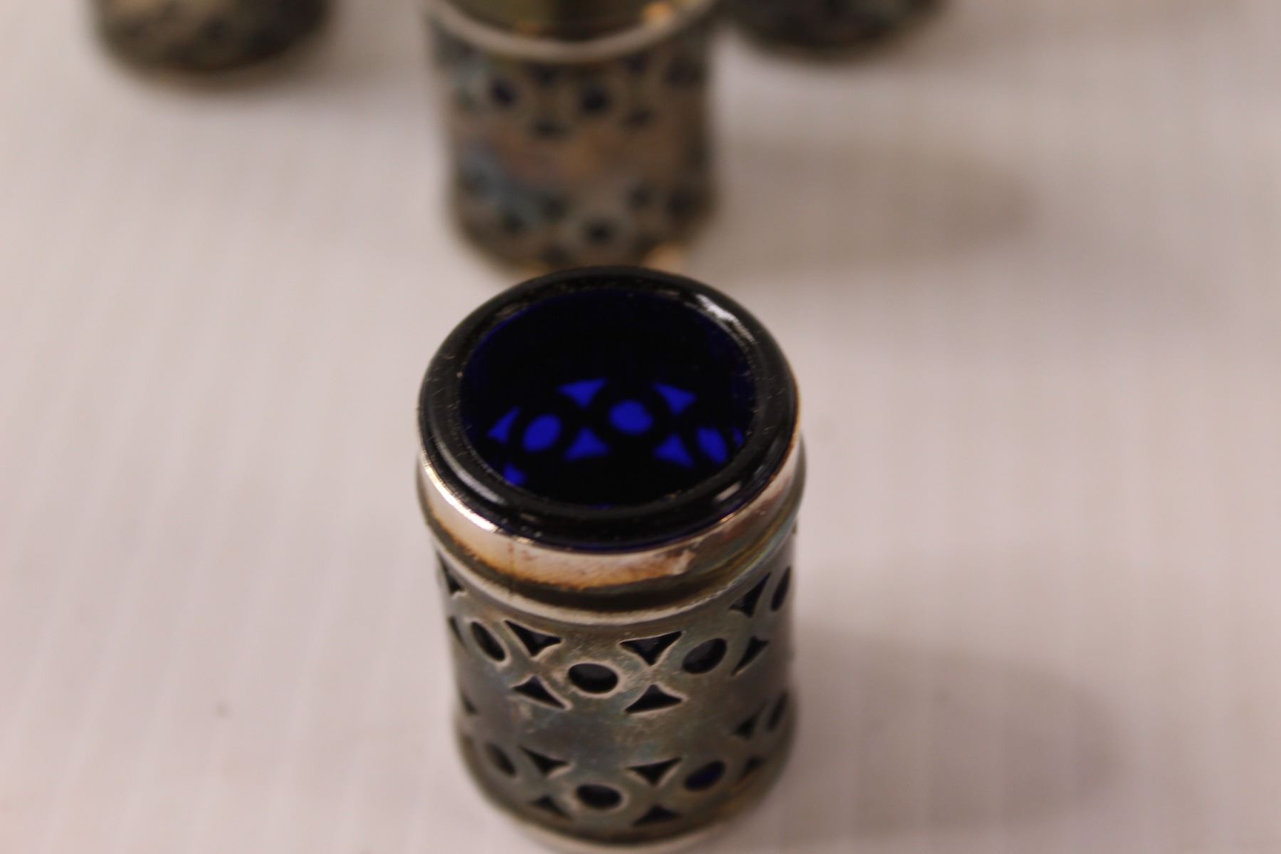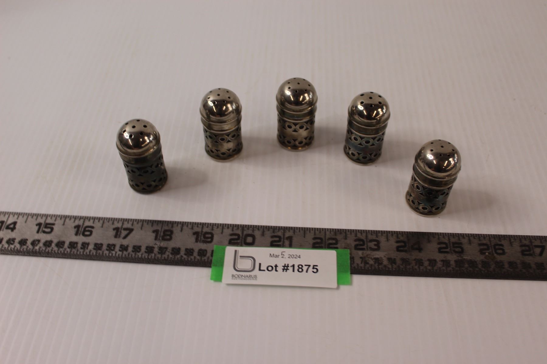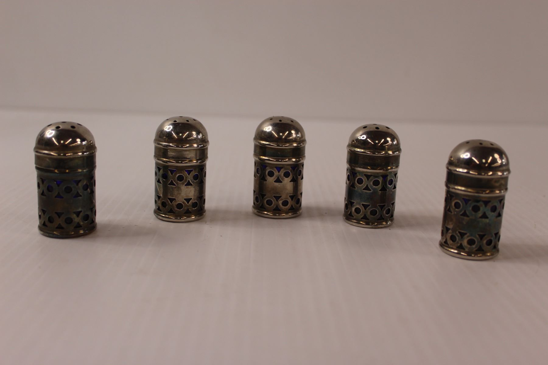 (5) Vintage APEX Cobalt Blue Glass & Silver Plated Salt and Pepper Shakers 2" England EPNS