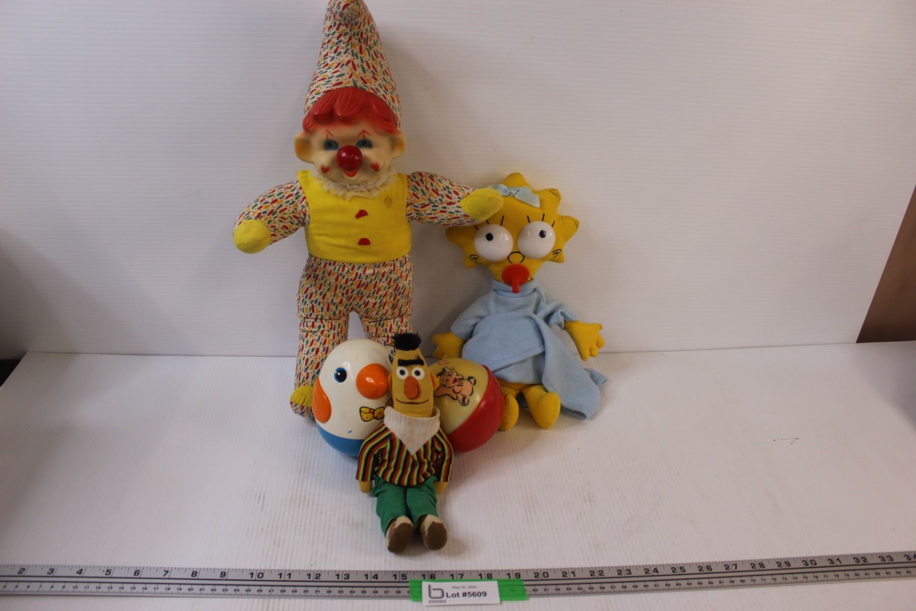 (5) Vintage Clown Plush; Simpsons Maggie Stuffie; Sesame Street Bert Stuffie & 2-Toy Balls