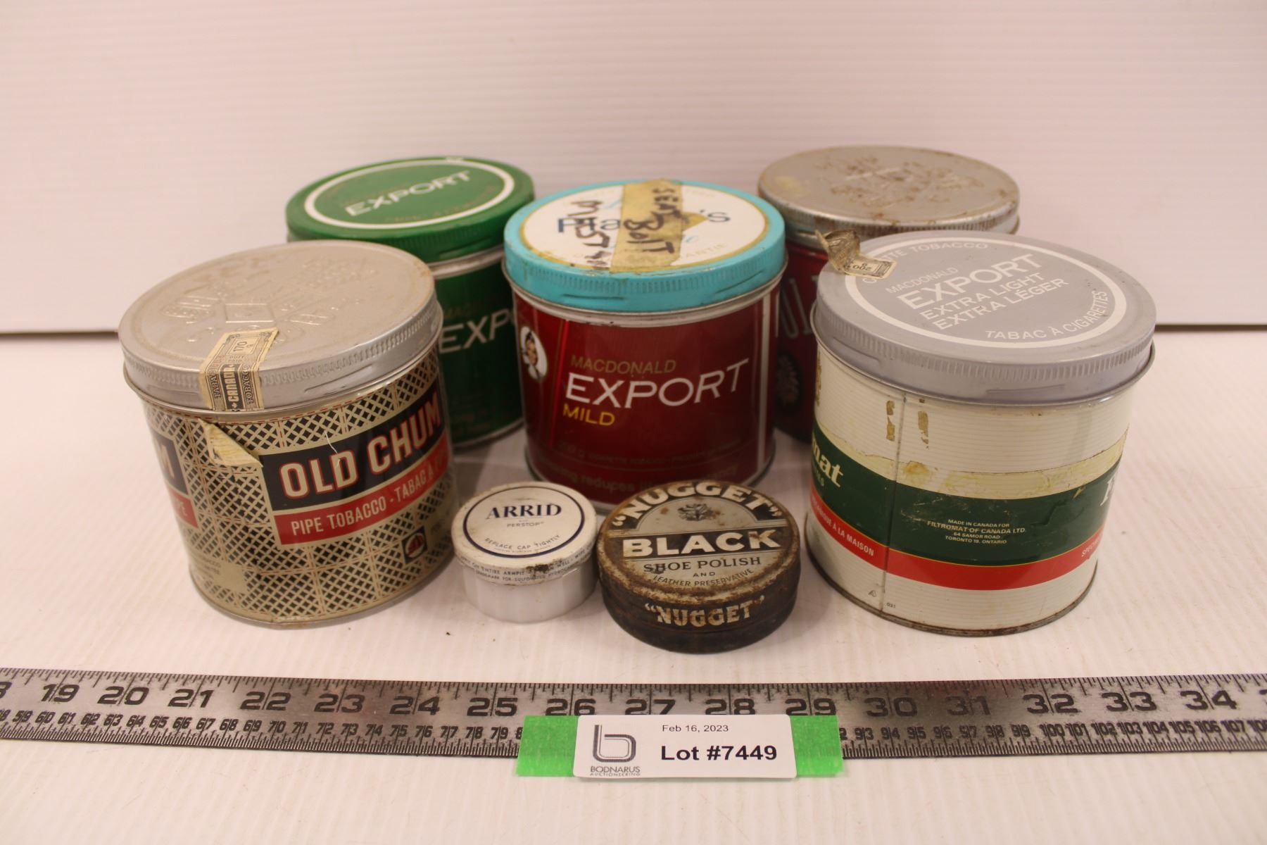 (5) Vintage Tobacco Tins + Vintage Shoe Polish and Deoderant