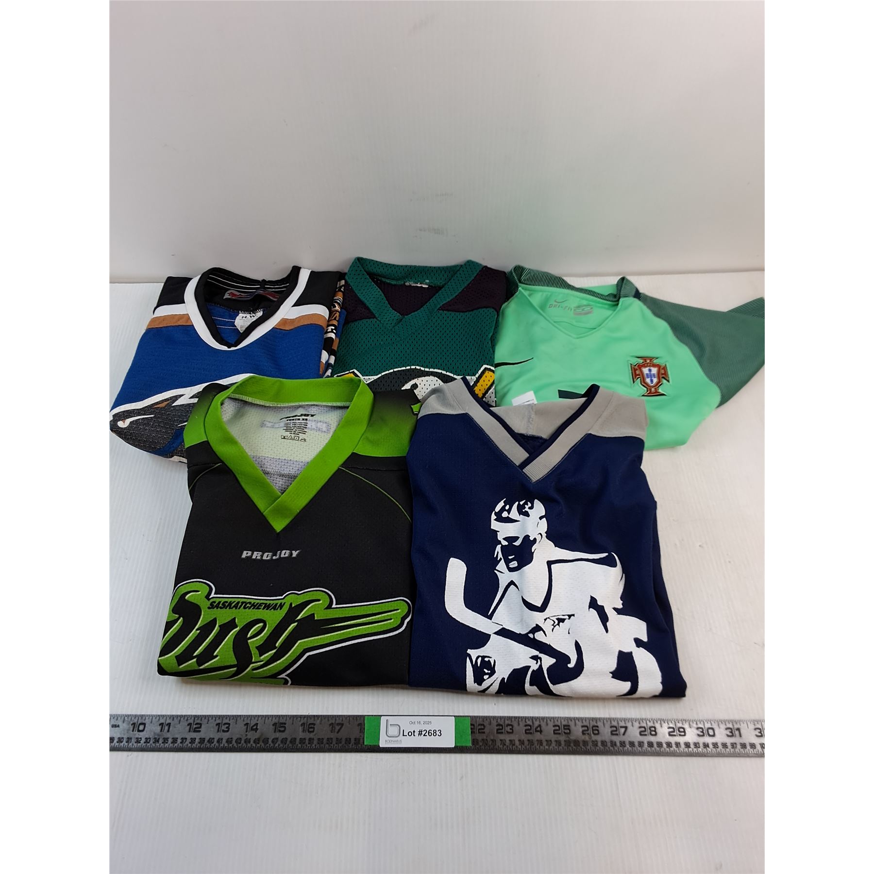 (5) Youth Sport Jerseys (Canucks L, Stampeders S, Ducks/Rush XS, Ronaldo 24)