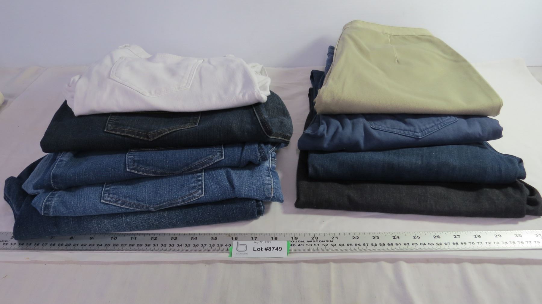 (5) pants/capris-size 16/18, (2) pants-size 25, 28, 8, 10
