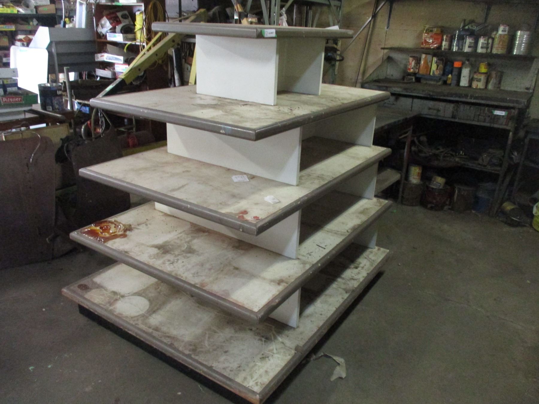 5 tier wooden shelf on castors 48"x35"x53" tall