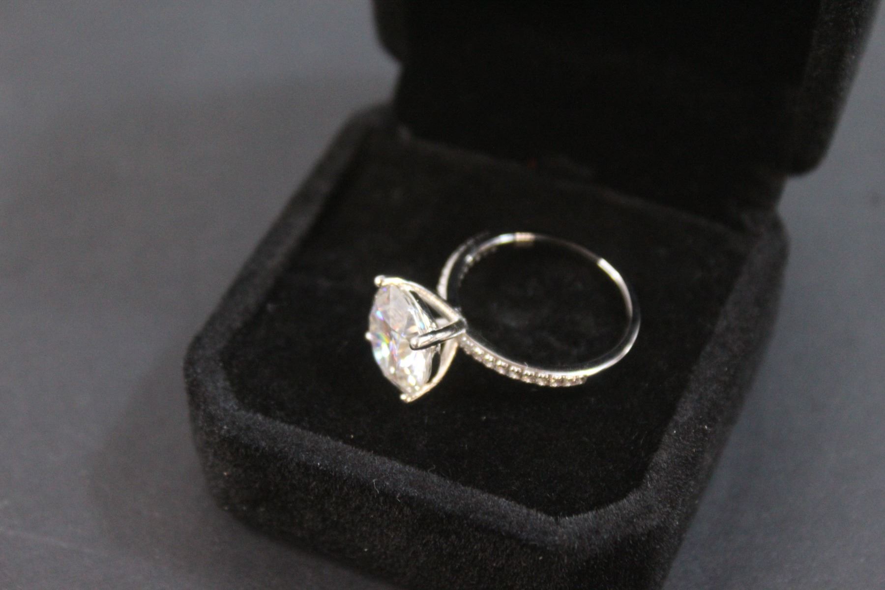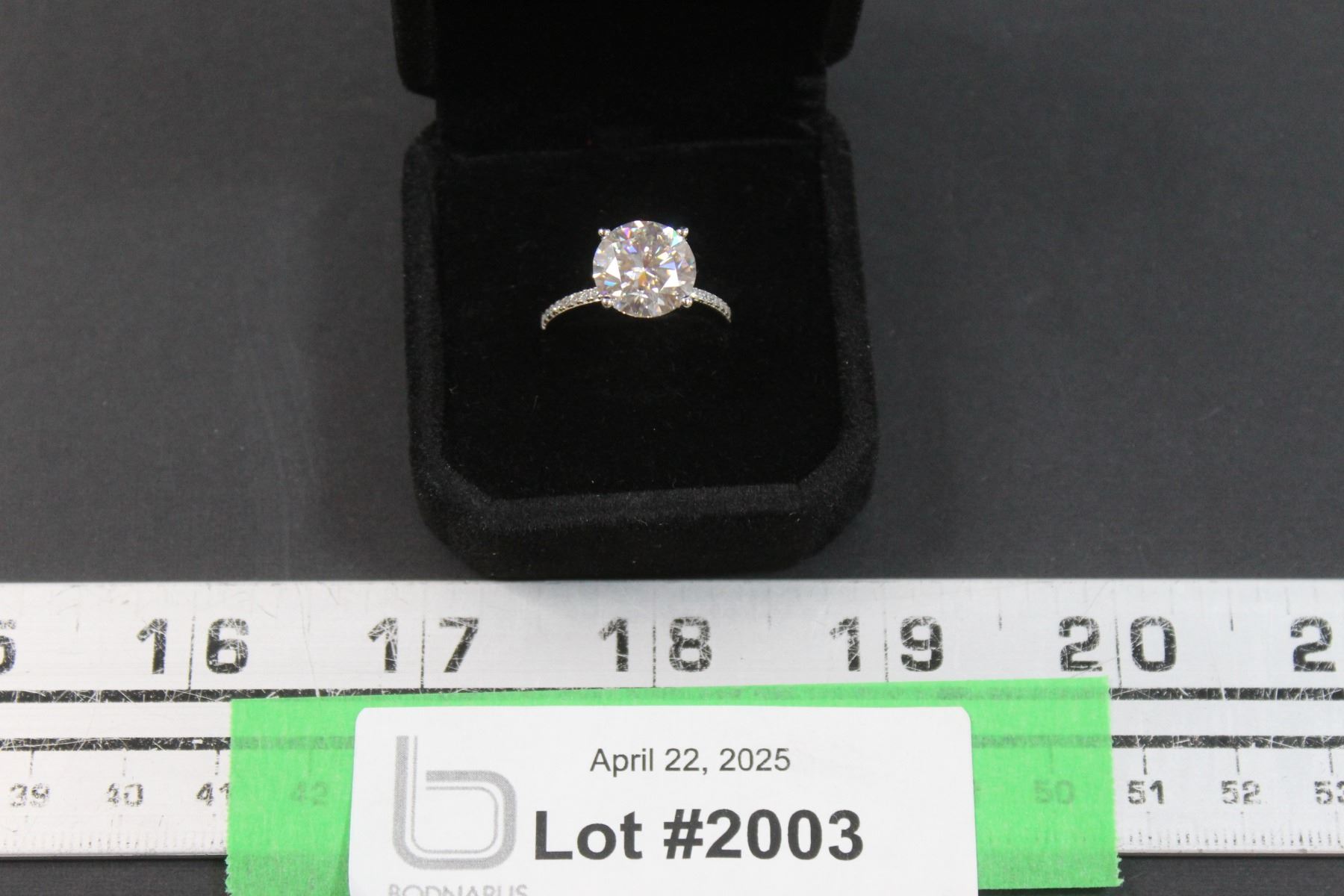 ^ 5ct. GRA Certified Round Brilliant Cut Moissanite Stone VVS D Color Set in Centre w/(14) Round Brilliant Cut Cubic Zirconia Set in Shanks Set in Sterling Silver - Ring Size 7