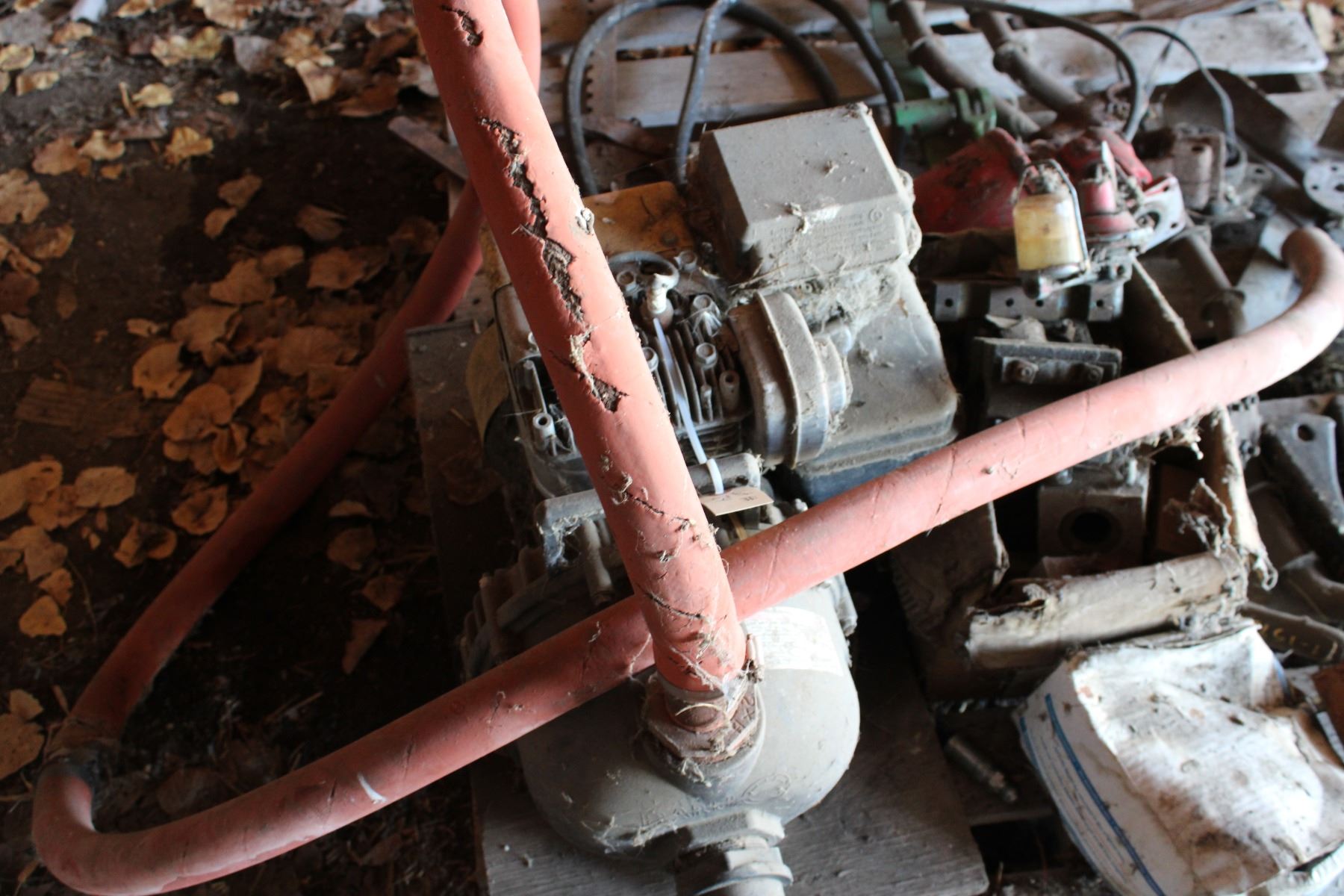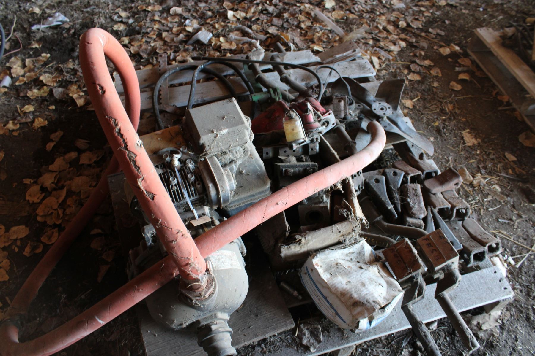 5hp Brigg & Stratton water pump, fence stretcher, bucket teeth etc (everything on pallet)