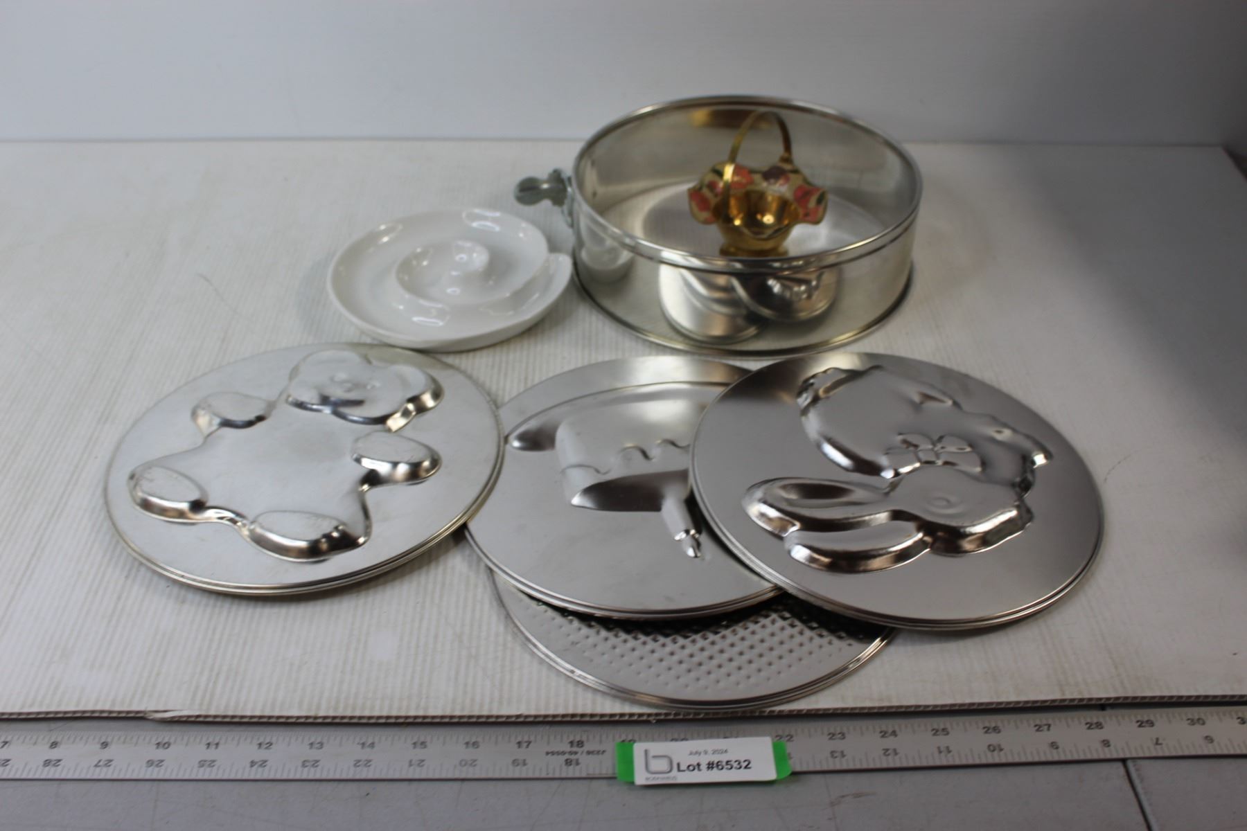5pcs Cake Pan Set, Trinket Bowl, White Spiral Dish