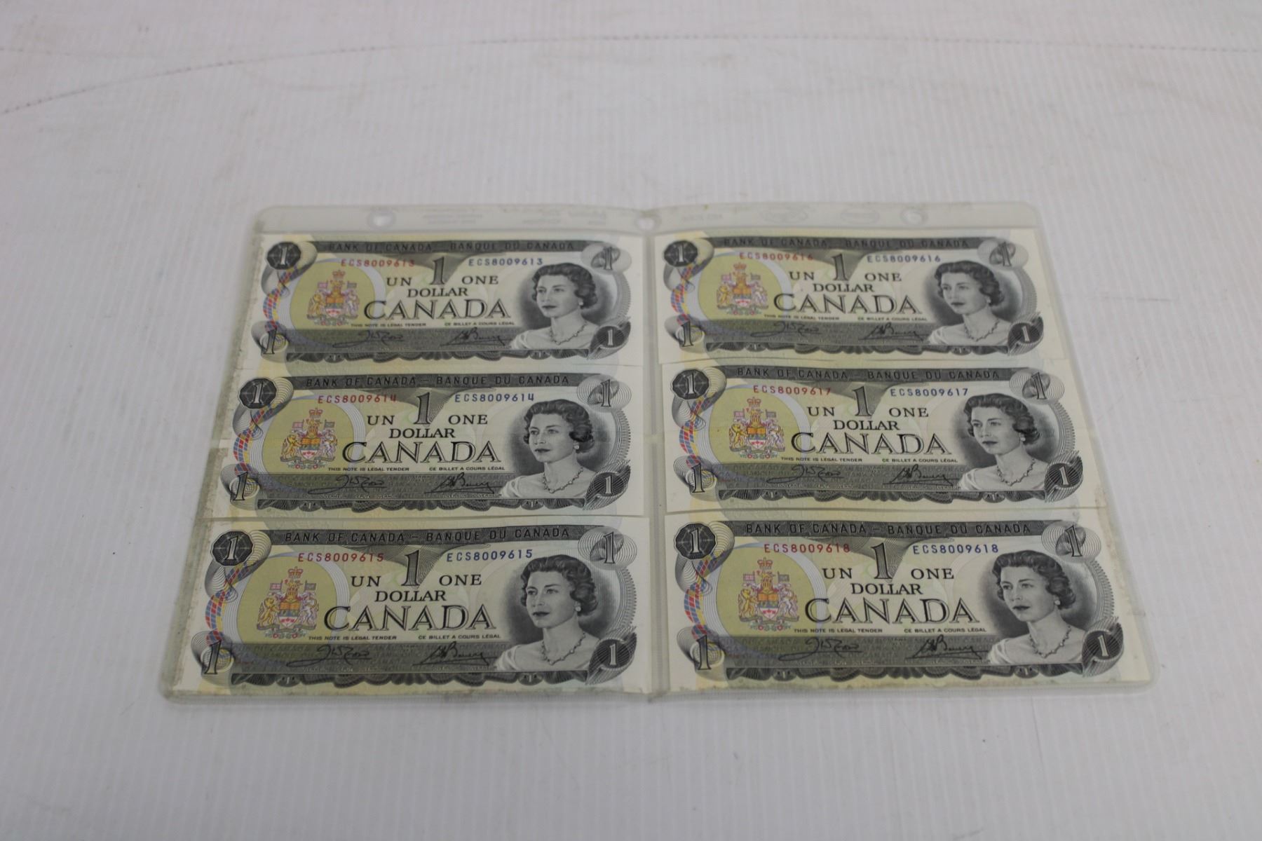 (6) $1.00 Canadian Bills in Sequence 8009613-9618