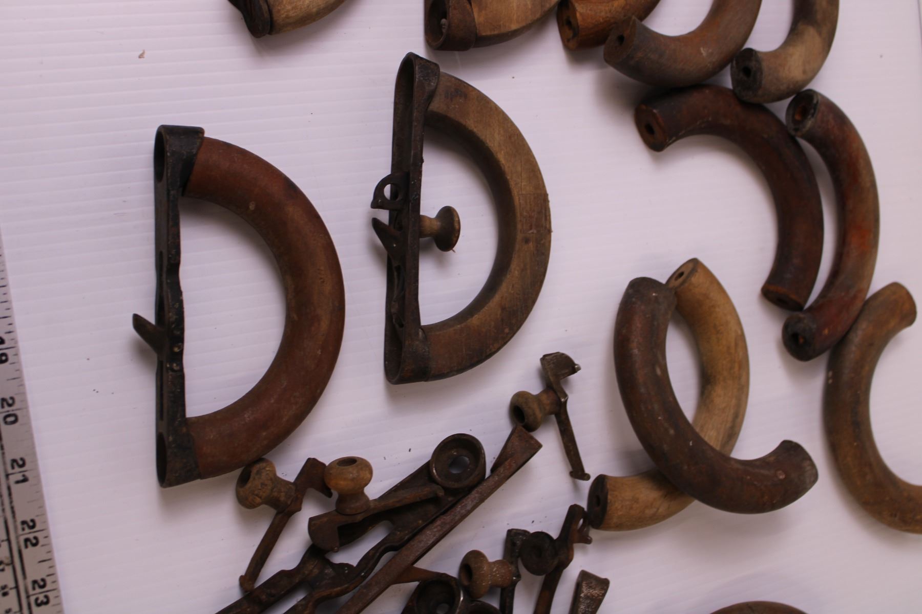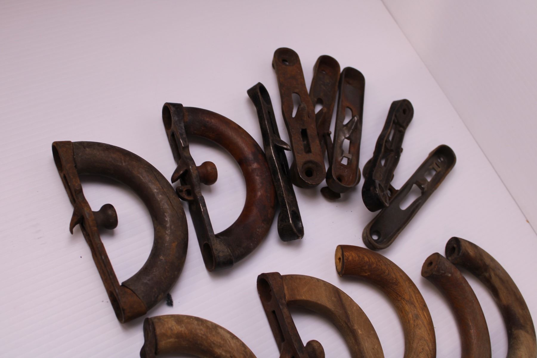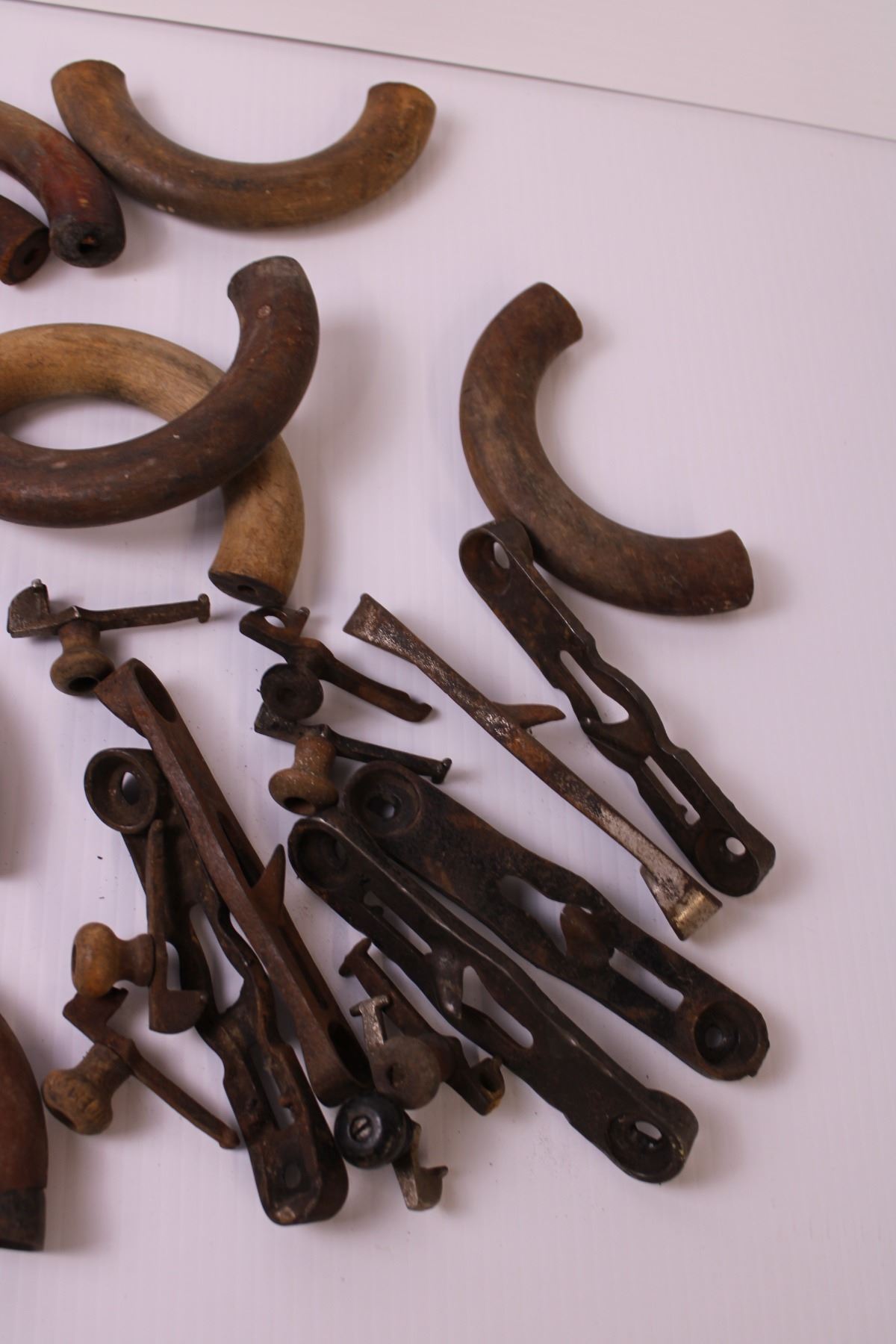 (6) Antique Iron Handles + Misc Iron Handle Parts
