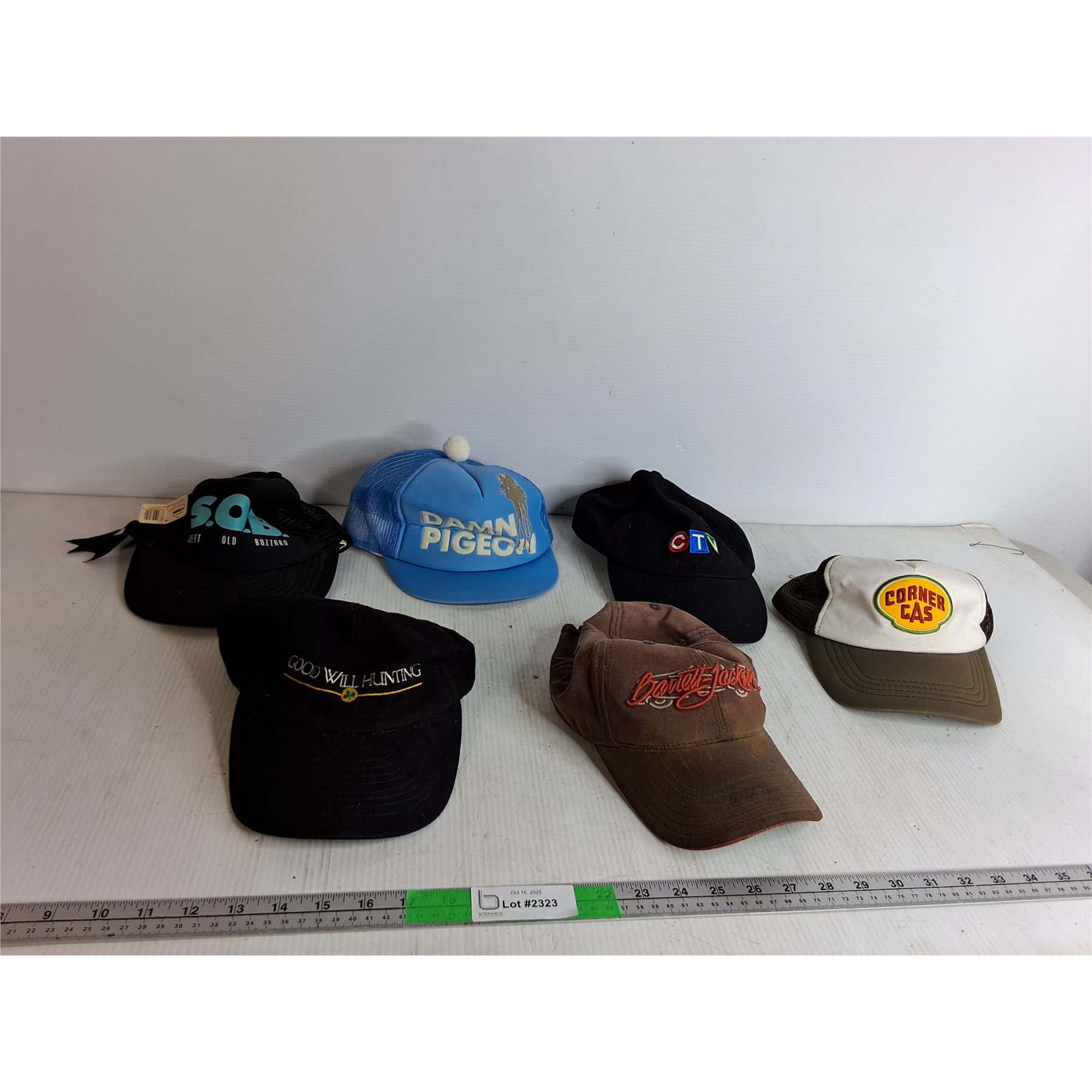 (6) Baseball Hats; S.O.B, Damn Pigeon, CTV, Corner Gas, Good Will Hunting, Misc