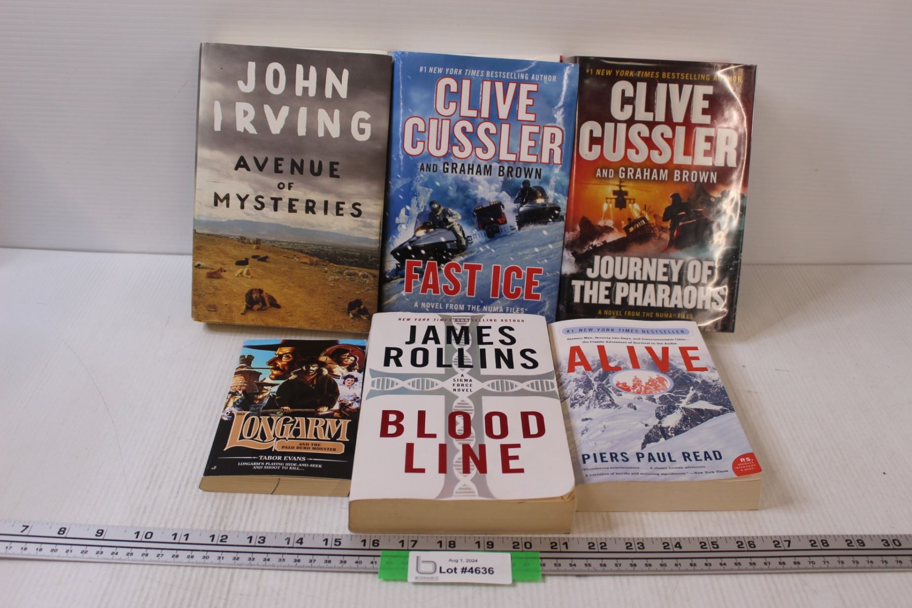 (6) Books: Clive Cussler, John Irving ,James Rollins, Misc.